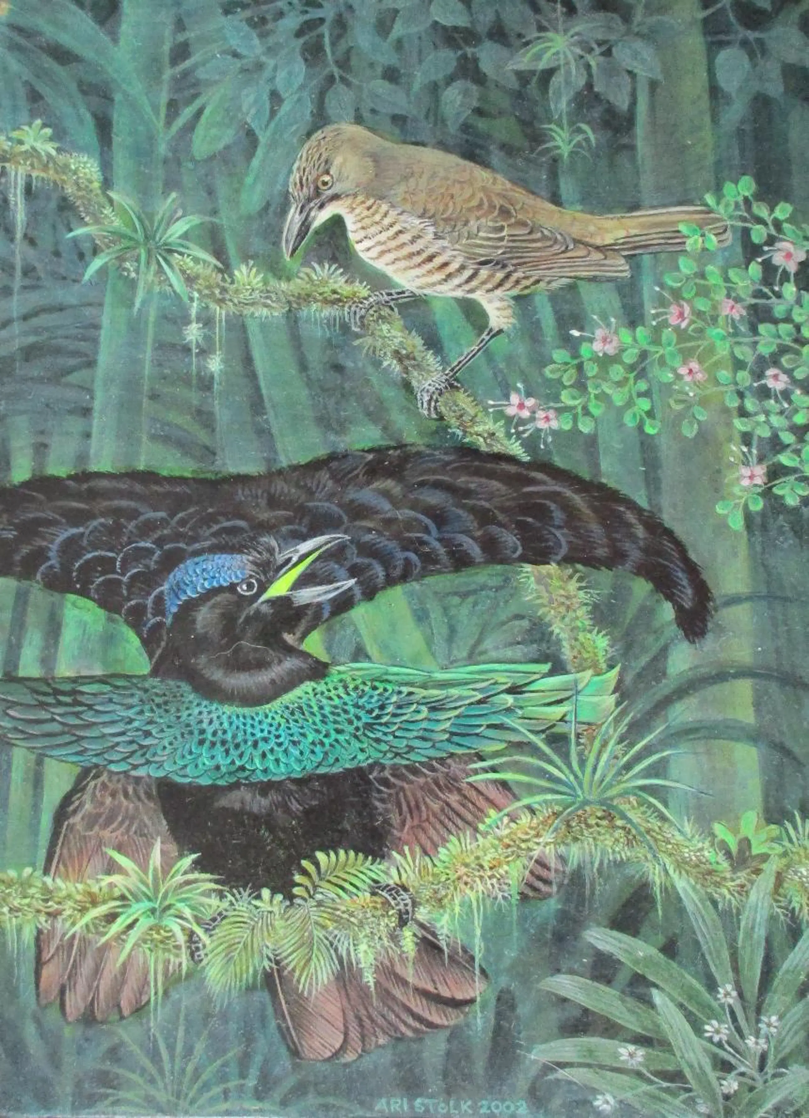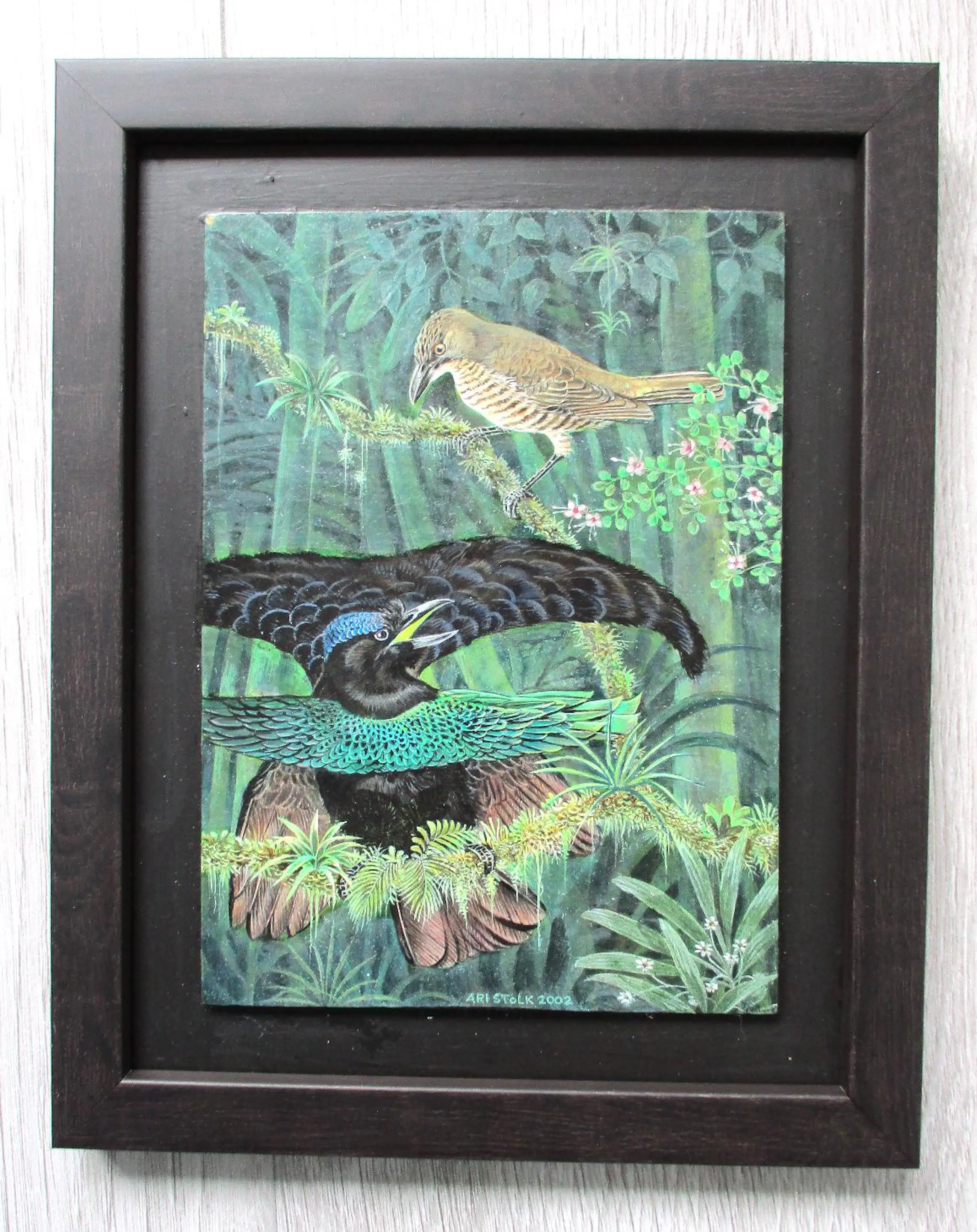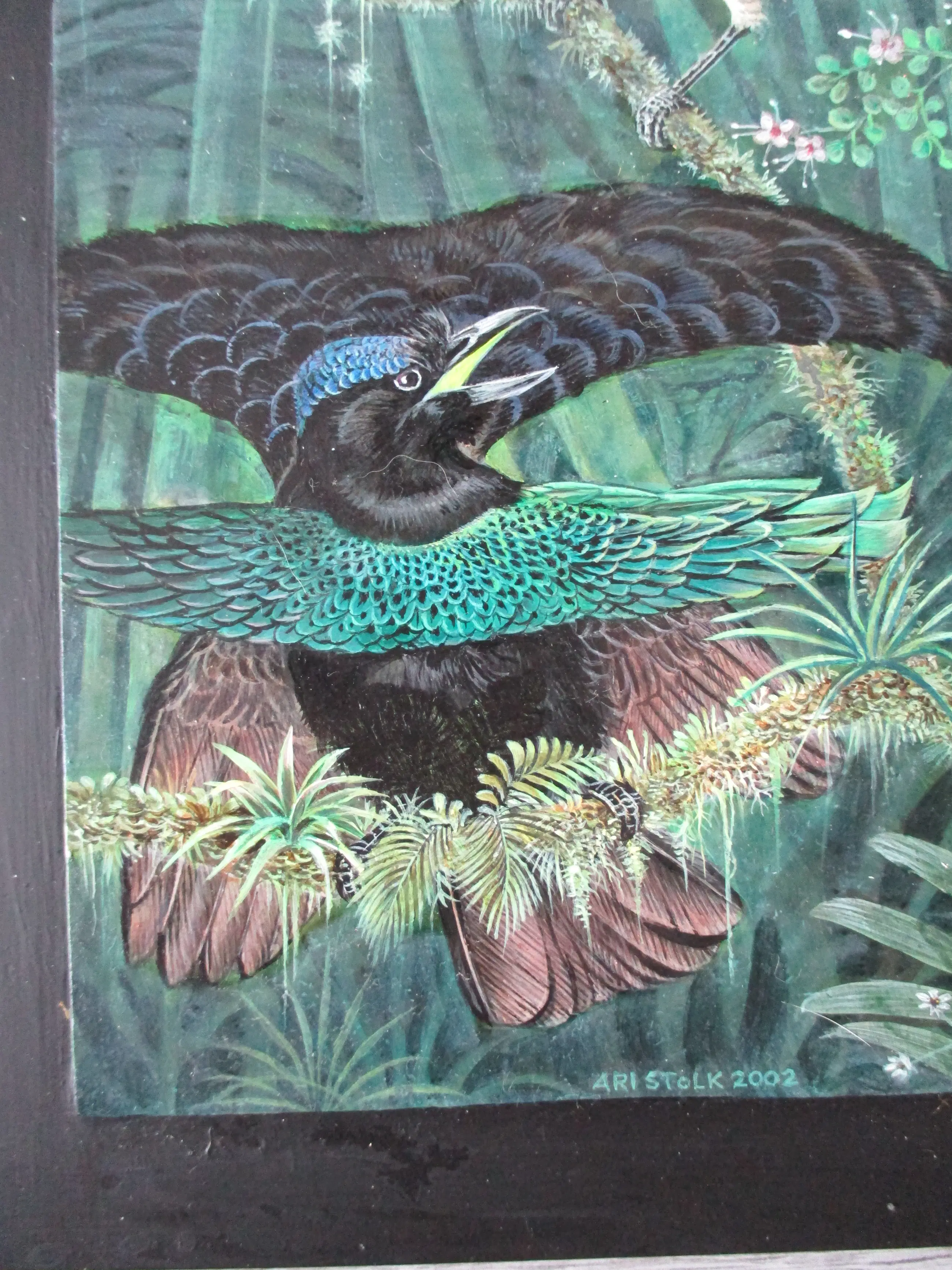 Ari Stolk - Kraagparadijsvogel - Lophornia Superba ♀ + ♂ Uniek acryl werkstuk uit 2002 in nieuw staat.
