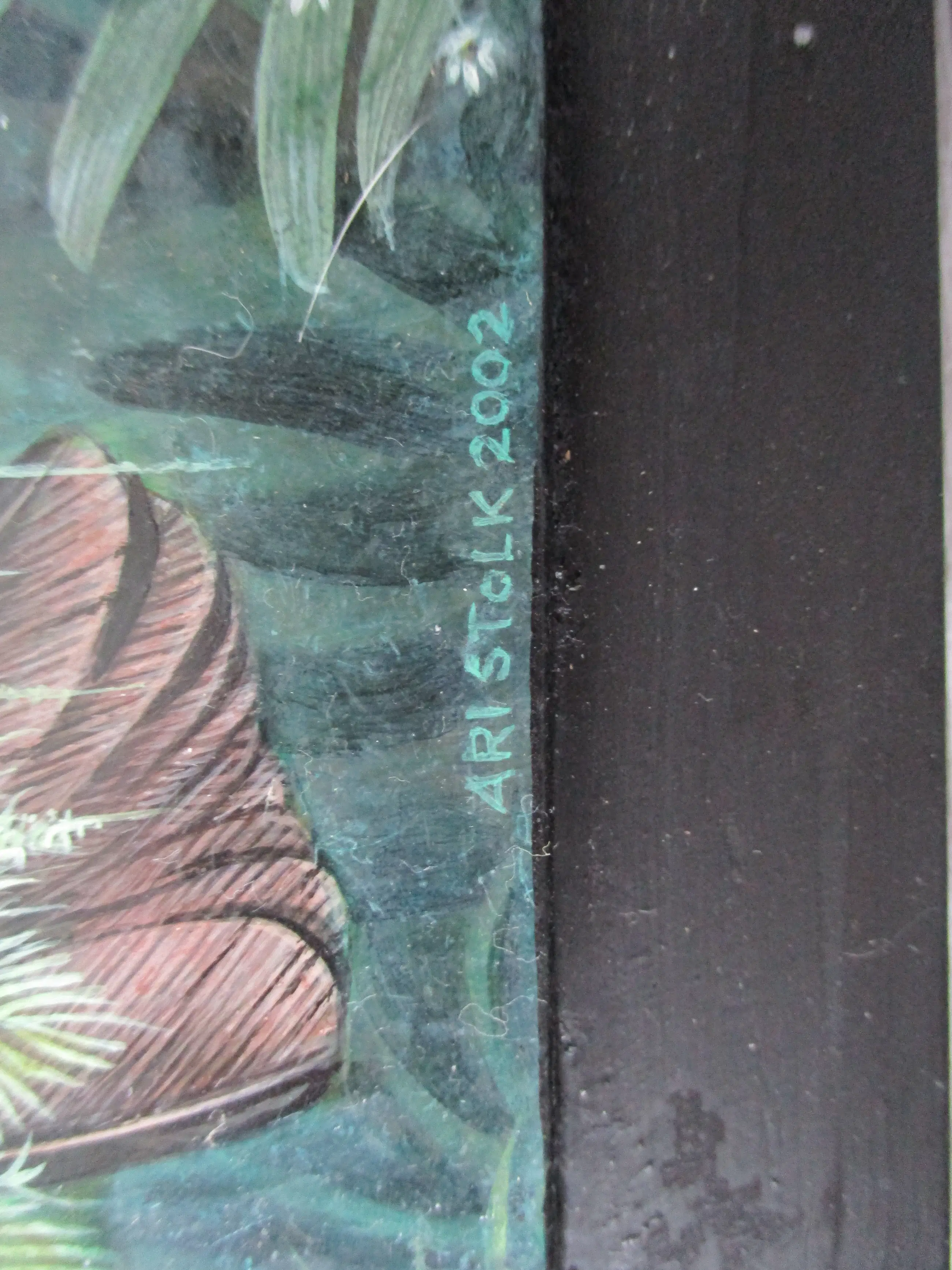 Paneel in nieuwe lijst. Hand gesigneerd.