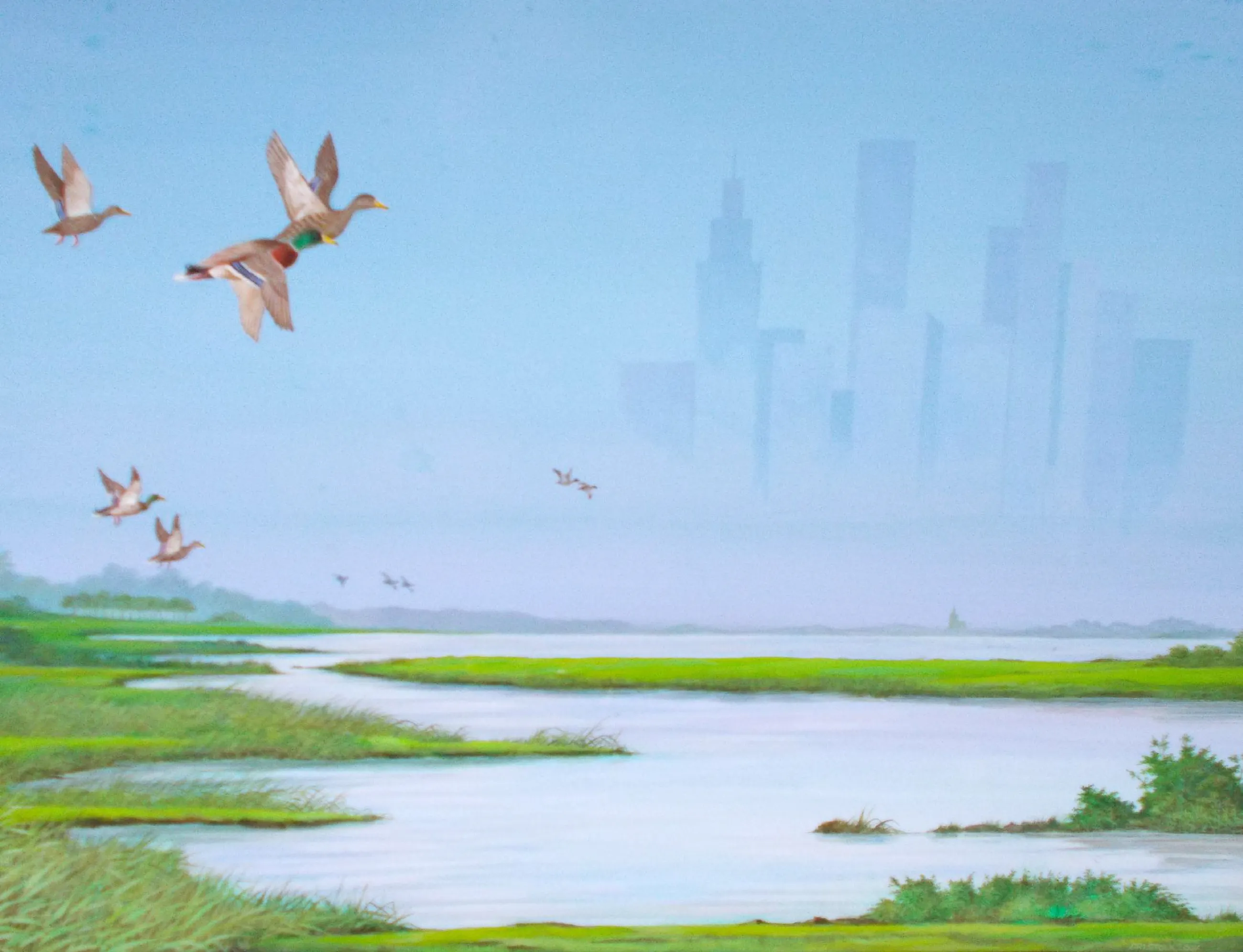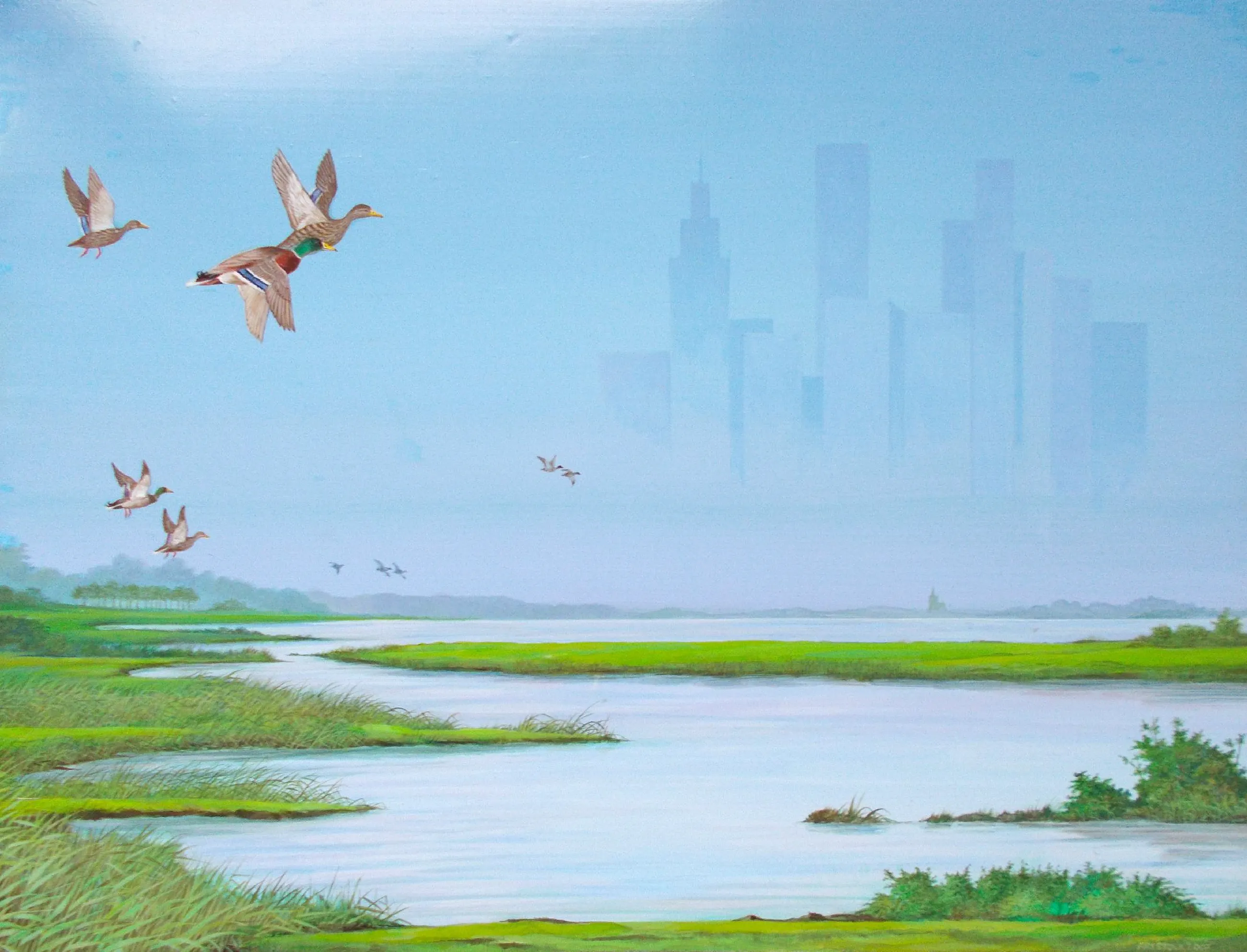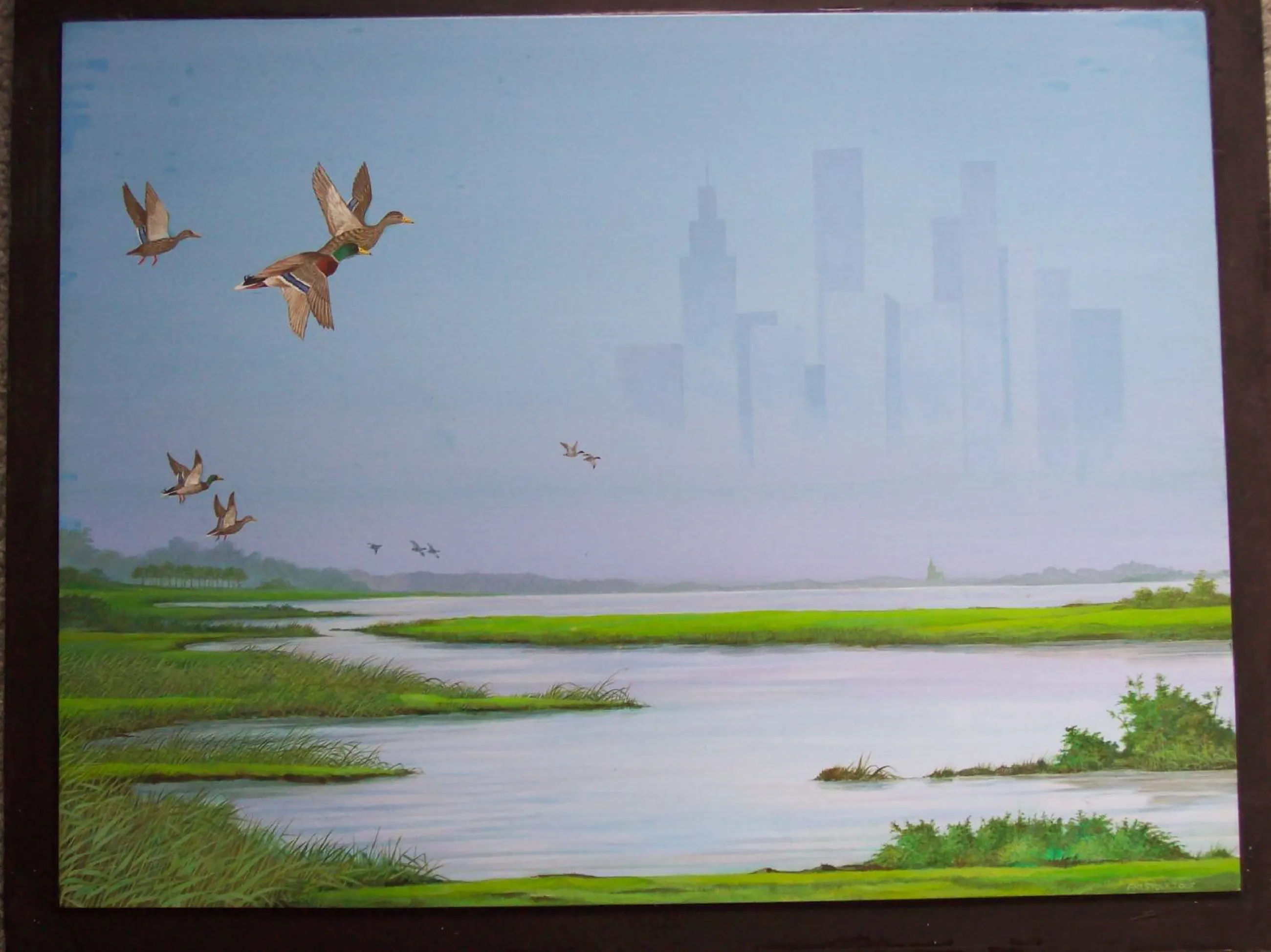 Schilderij met een knipoog van Ari Stolk, een vogel- en natuurliefhebber pur-sang, rechtstreeks uit de nalatenschap van de schilder.