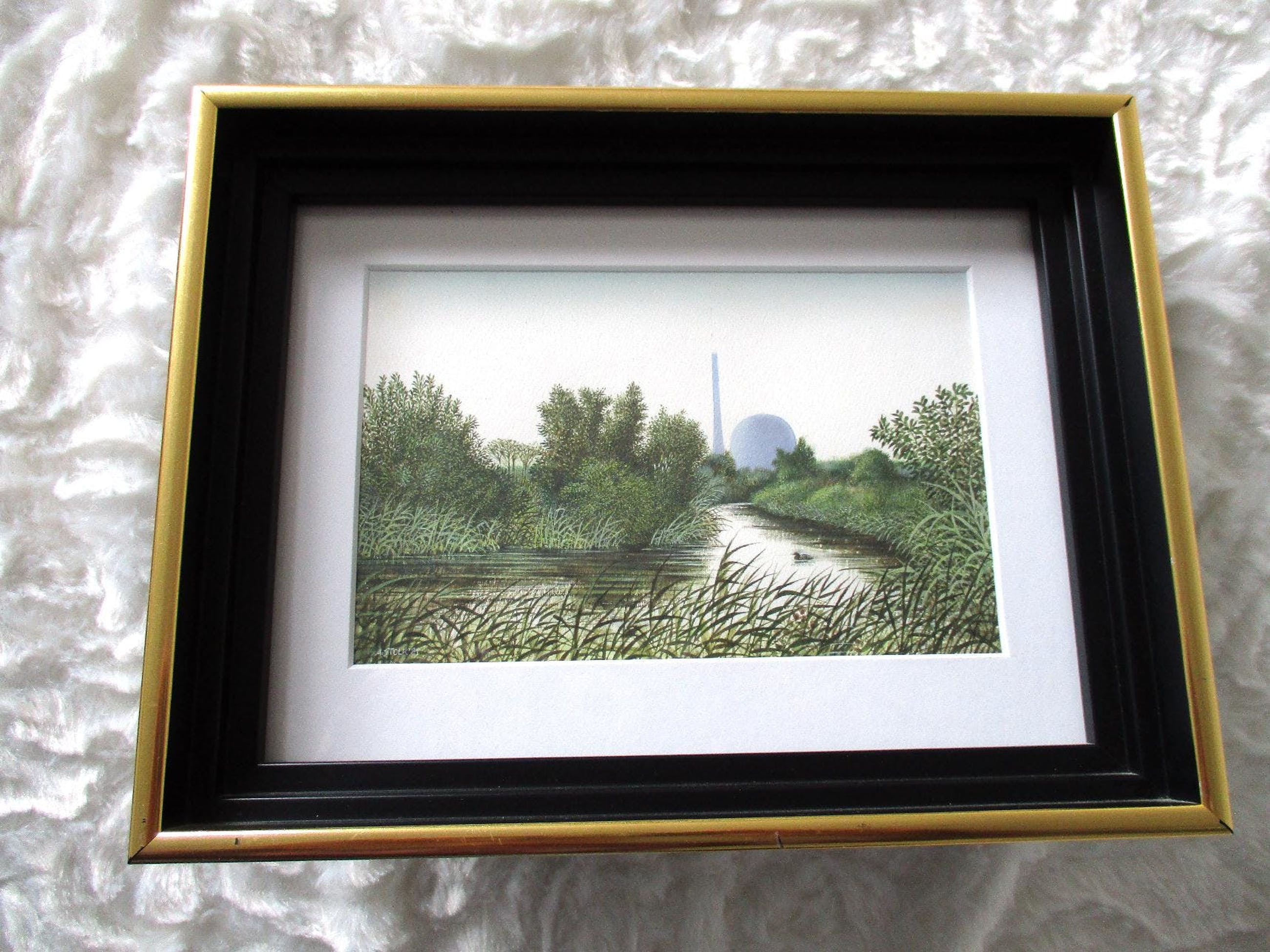 Ari Stolk gouache "landschap" met kernreactor 1984 Onafhankelijk Realisme