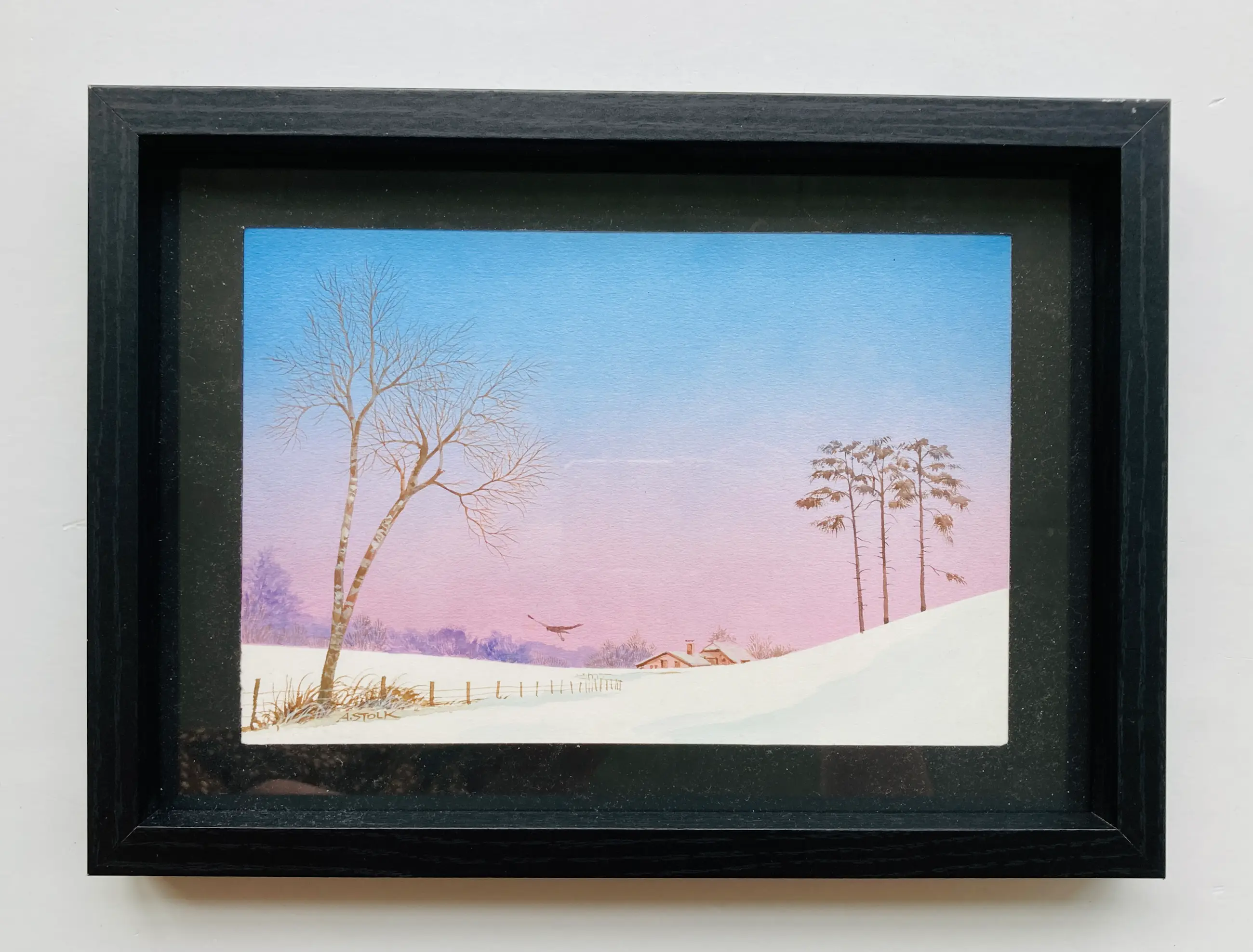 Een fraai landschap van de kunstenaar Ari Stolk (1934 - 2017). De schildering is gemaakt met gouache en airbrush. Het werk verkeert in uitstekende conditie en is handgesigneerd door de kunstenaar.
