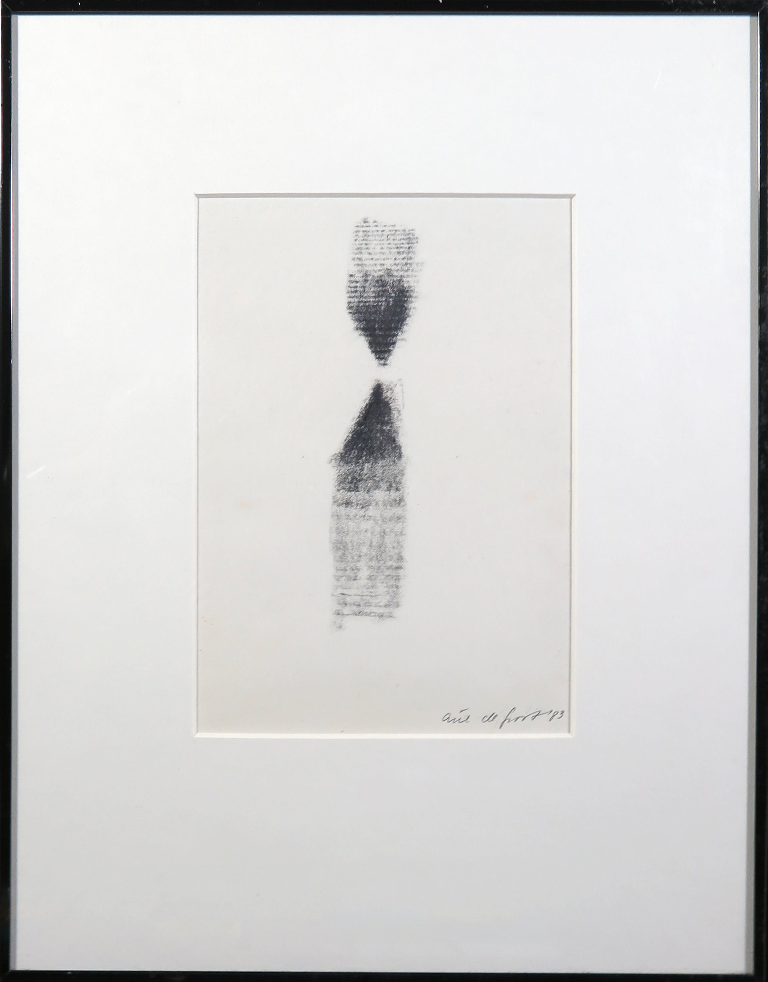 Deze potloodtekening is gemaakt met de techniek frottage. Een bekende kunstenaar die ook gebruik maakte van deze techniek is Max Ernst.