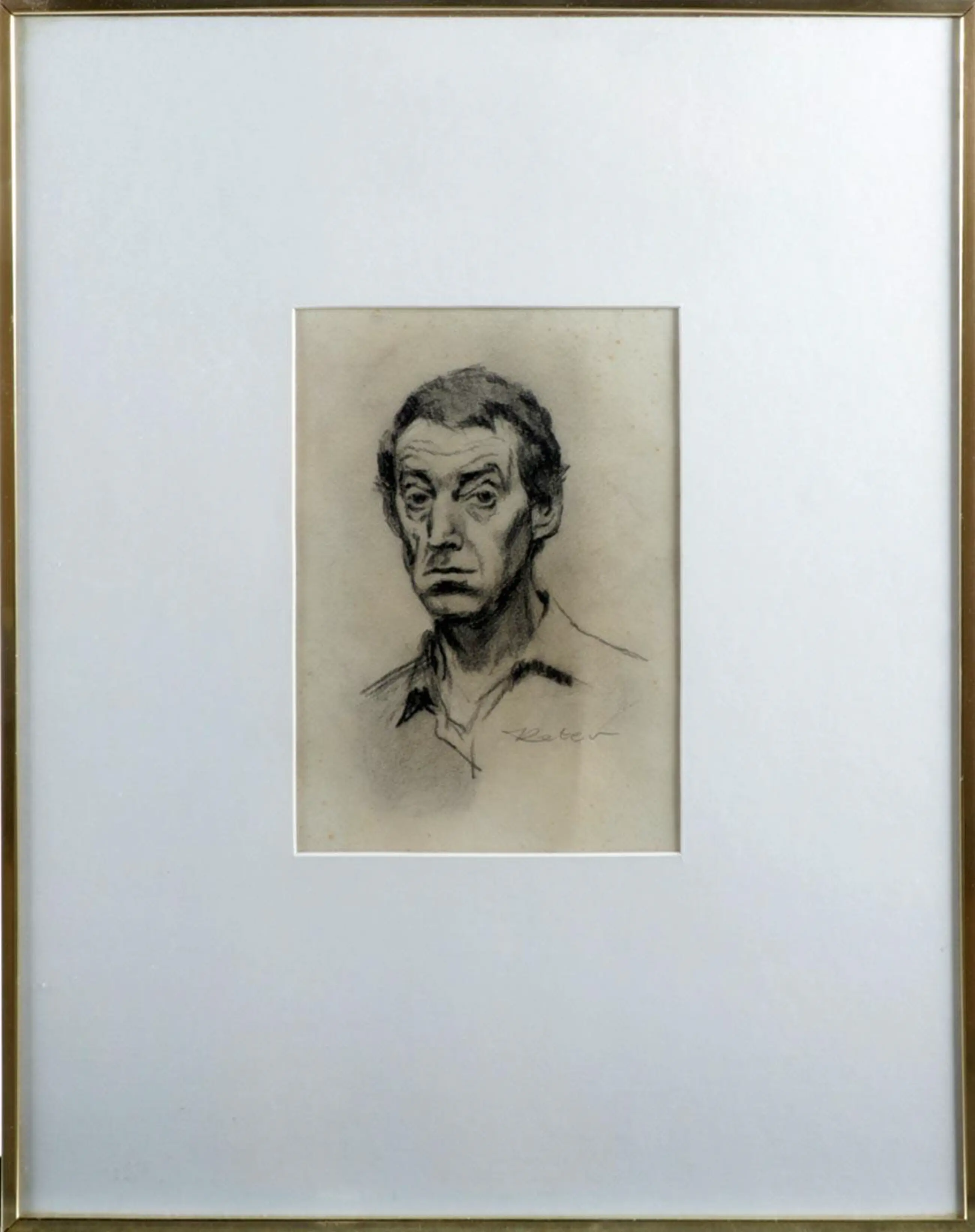 Zelfportret van Arie Kater in passe-partout met goudkleurige kunststof wissellijst. In goede staat met enige minieme gele plekjes (foxing, zie foto's)