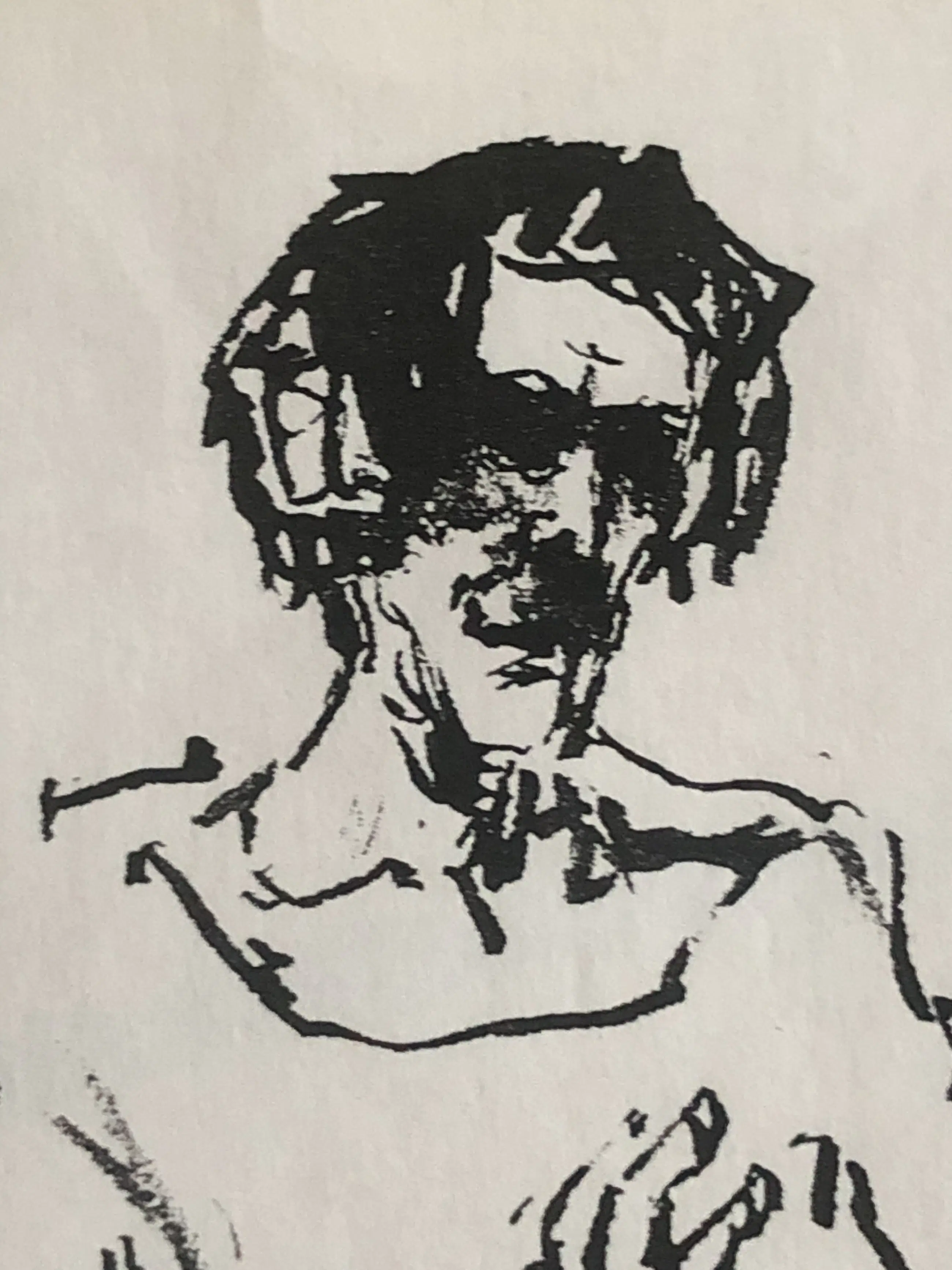 Expressionistisch en expressief portret van de kunstenaar Arie Kater. rechtsonder gesigneerd Kater, rechtsboven gedateerd in blauwe balpen 1957.