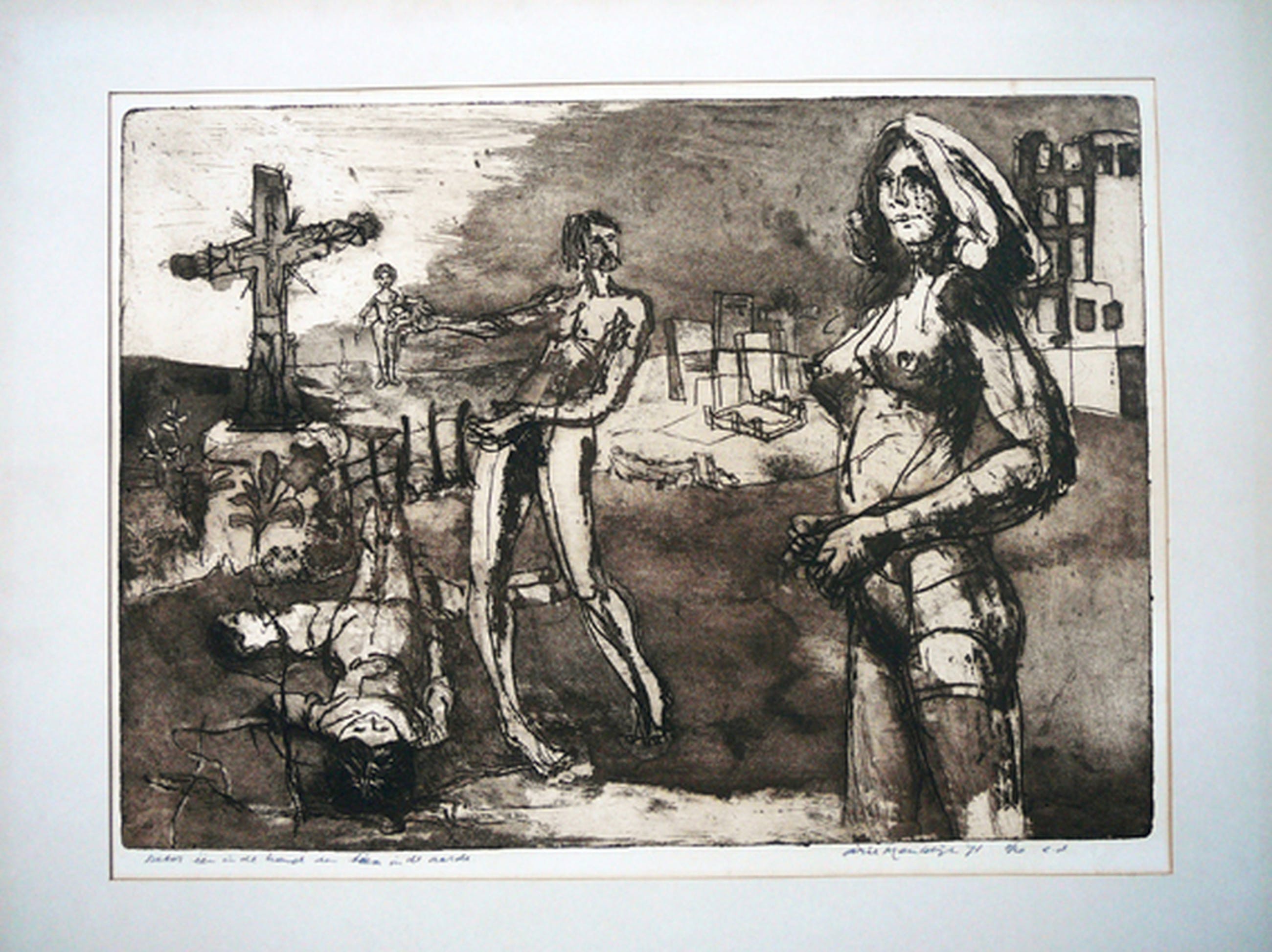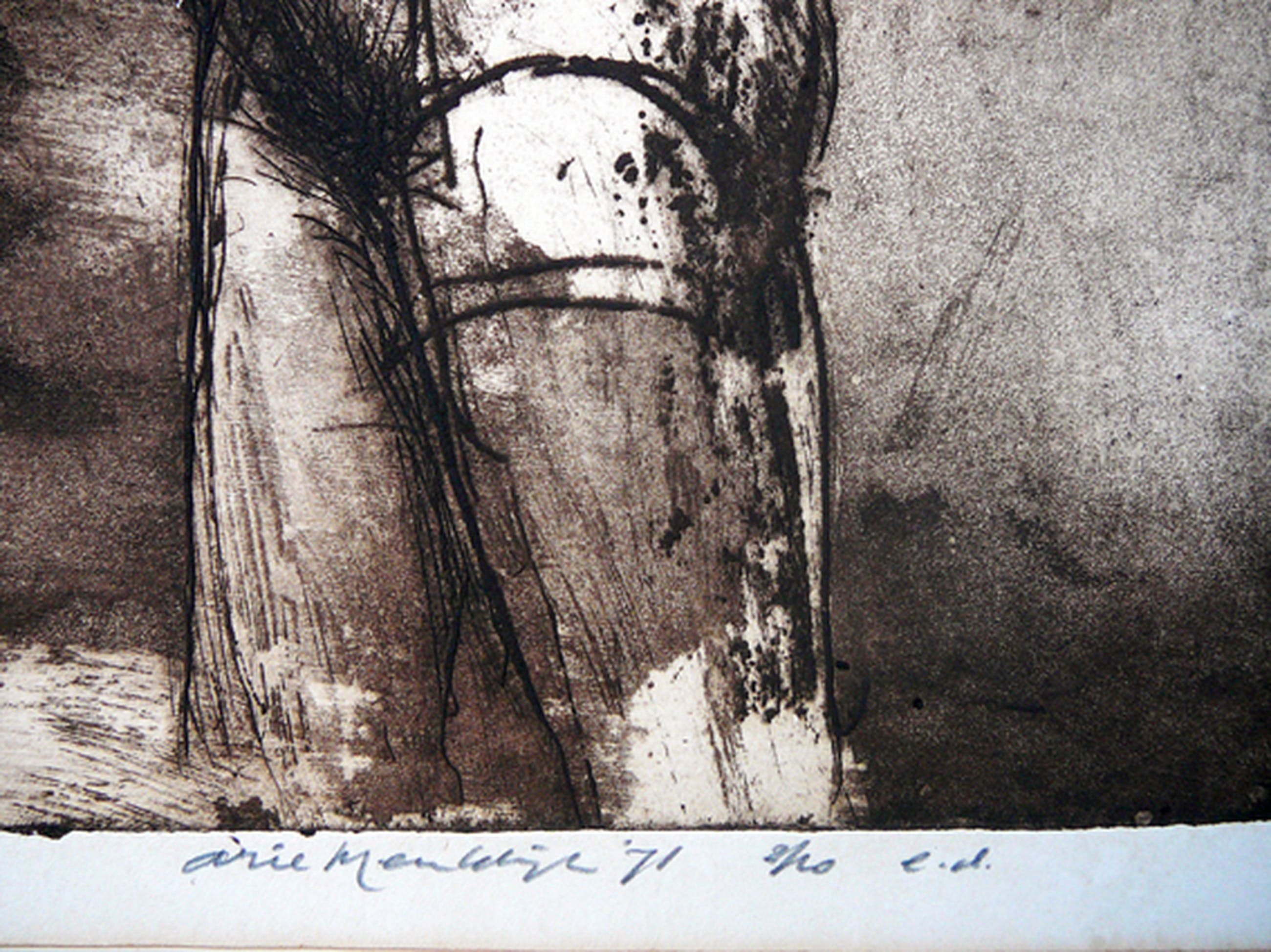 Beeldformaat: 50 x 38 cm Passepartout: 65 x 50 cm Techniek: ets aquatint Oplage: 2/10 Jaartal: 1971 Conditie: uitstekend, passepartout vergeeld