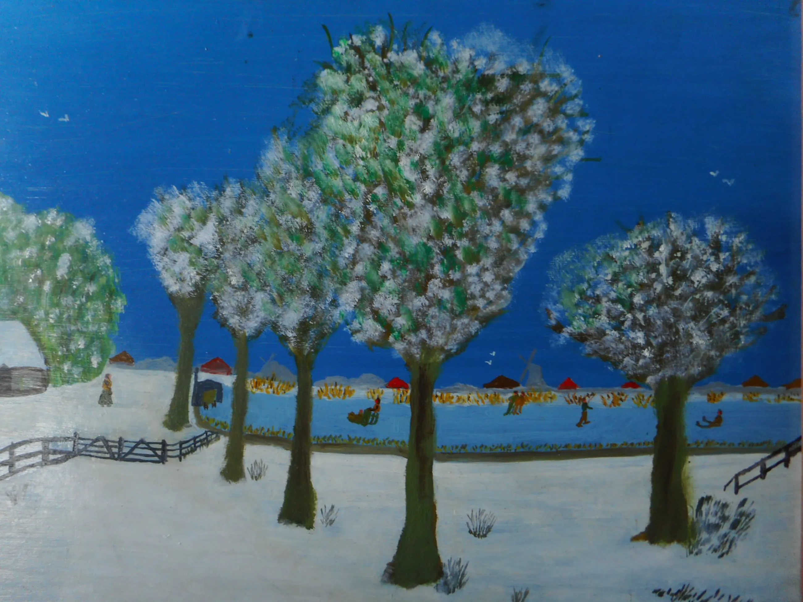 Arie van Leijen werd in 1921 te Hensbroek geboren in de molen van z’n ouders. Na een jeugd op de molen en hard werken op ’t land verhuisde hij in 1946 naar Nieuwe Niedorp waar ook hij ruim 30 jaar als molenaar de kost verdiende. In 1978 begon hij te schilderen, naief en primitief. Van Leijen is een naieve schilder zoals een echte naieve schilder hoort te zijn, Vel kleur gebruik, simpel in de vorm en bijna natuurgetrouw. Zijn werk valt op door pretentieloze oprechtheid en is een lust voor het oog van de “Naieve-verzamelaar”