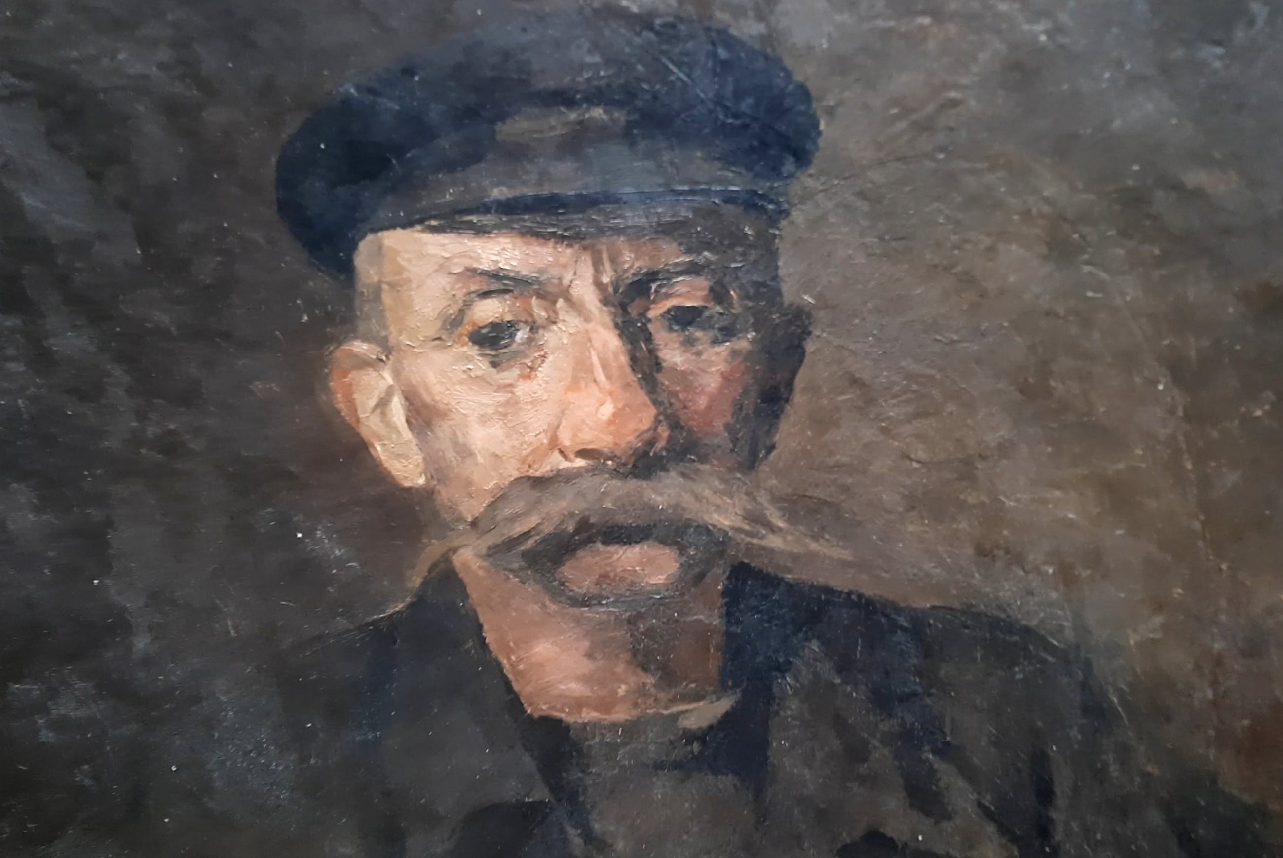 Prachtig groot portret in olieverf op doek van Dhr. Valk uit Koog aan de Zaan. Gesigneerd door de Zaanse schilder Arie van Mever. Werk komt van familie van de kunstenaar zelf. De lijst is origineel en vertoont sporen van gebruik. Adriaan Pieter (Arie) van Mever (Zaandam 27 januari 1899 – Heiloo 25 april 1978) was beeldend kunstenaar, kunstschilder, aquarellist, tekenaar, graficus en concertzanger. Arie van Mever ontving zijn opleiding aan de Rijksacademie voor beeldende kunsten in Amsterdam van 1923 tot 1929.