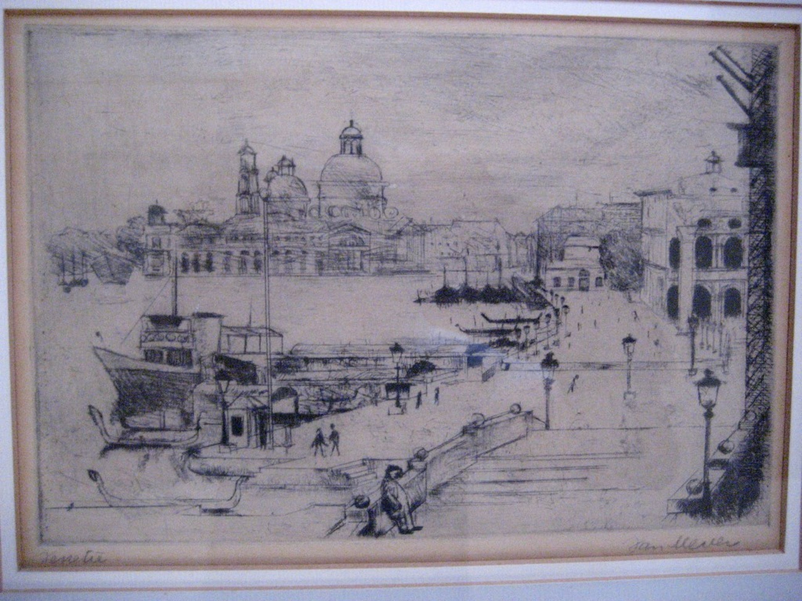 Een mooie ets van Venetië , gesigneerd en betiteld met potlood :'van Mever' en