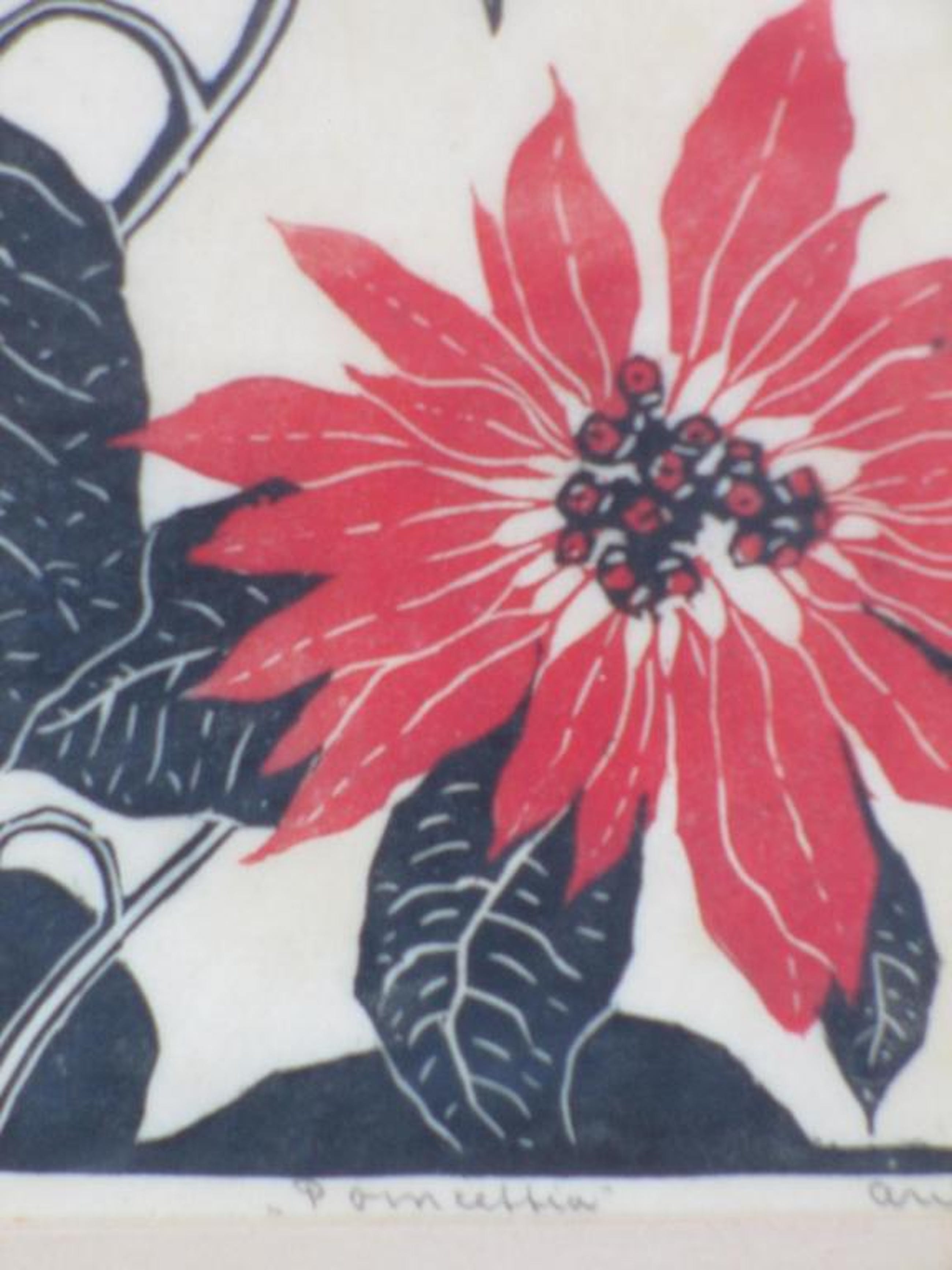 Gesigneerd r.o. 'Arie Zonneveld', getiteld m.o. 'Poinsettia', annotatie l.o. 'handdruk'