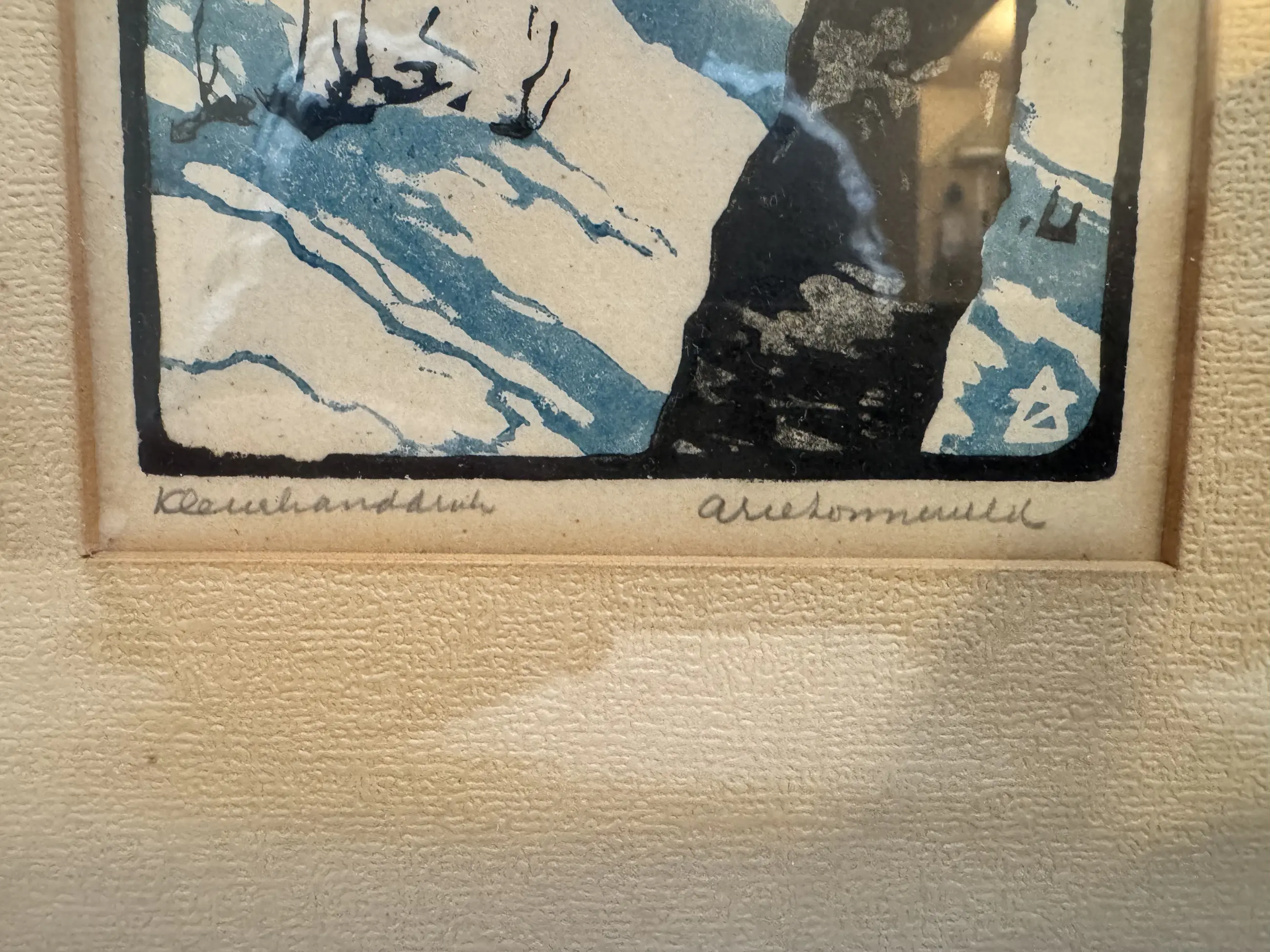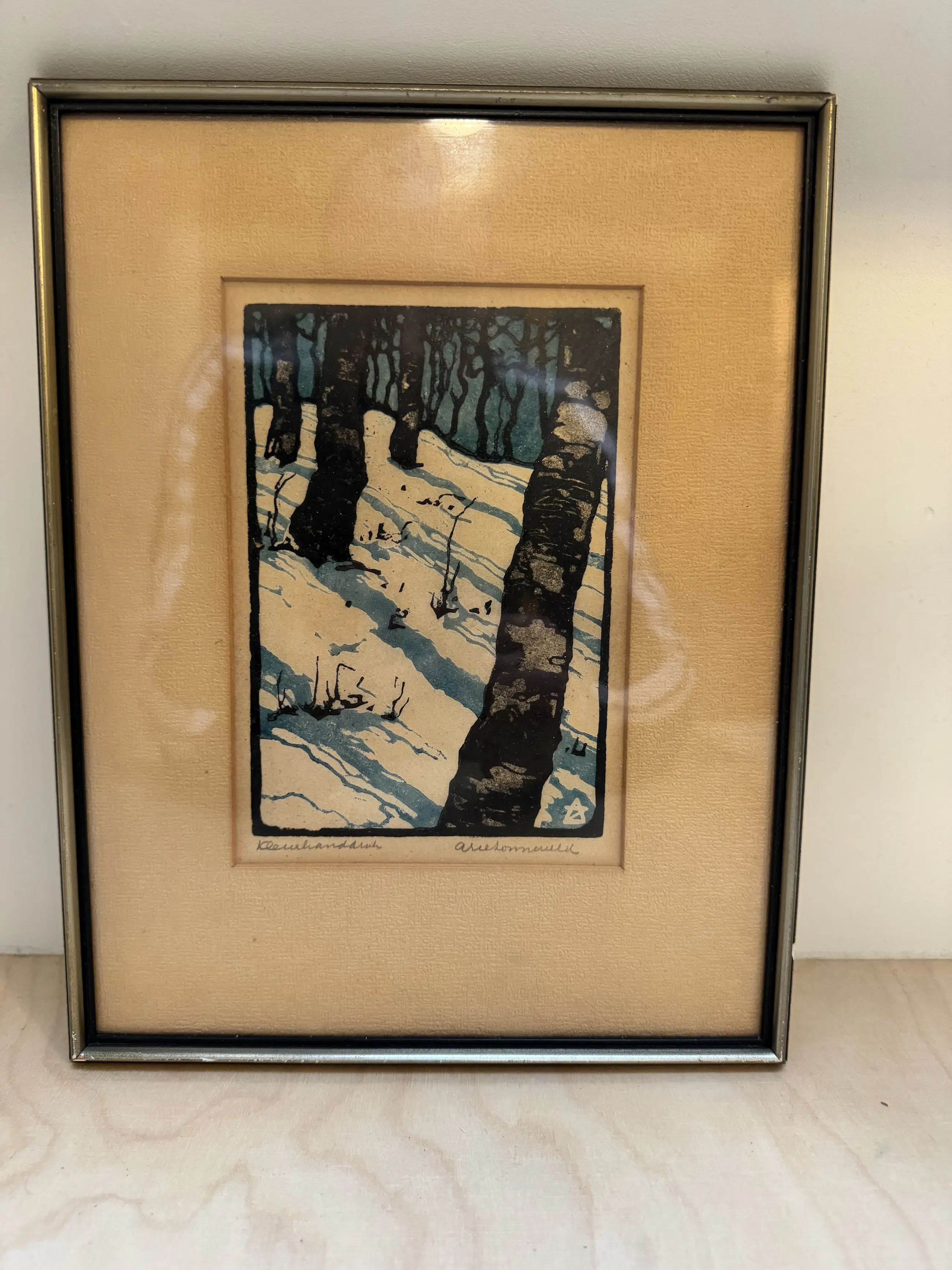 Een ingelijste kleurenhoutsnede op Japans papier van de Nederlandse kunstenaar Arie Zonneveld (1905-1941) Gesigneerd rechtsonder met potlood. Linksonder staat met potlood geschreven ‘kleurhanddruk’. Ook linksonder in de houtsnede het monogram ‘AZ’. Ingelijst in de originele houten lijst met glasplaat.