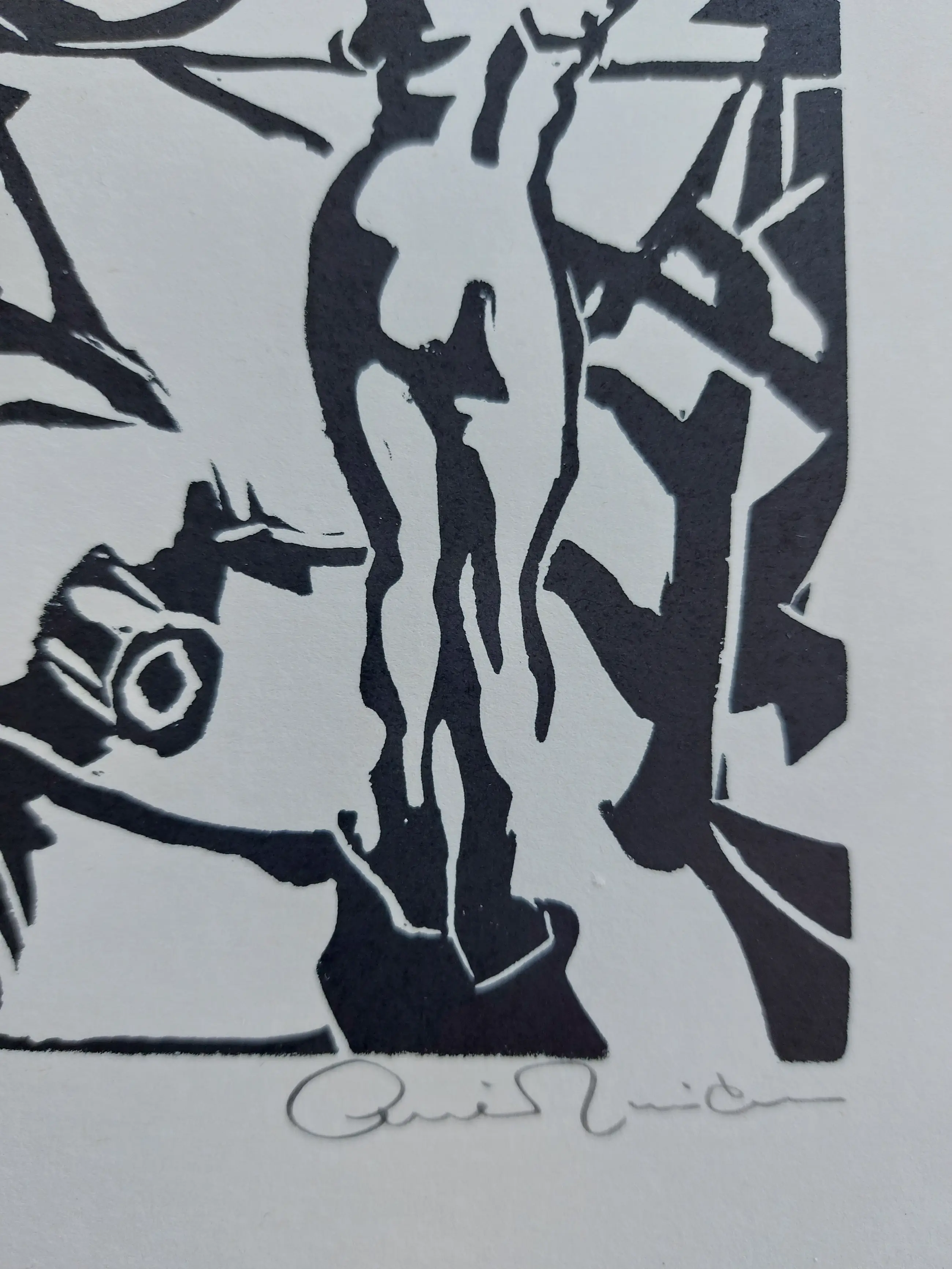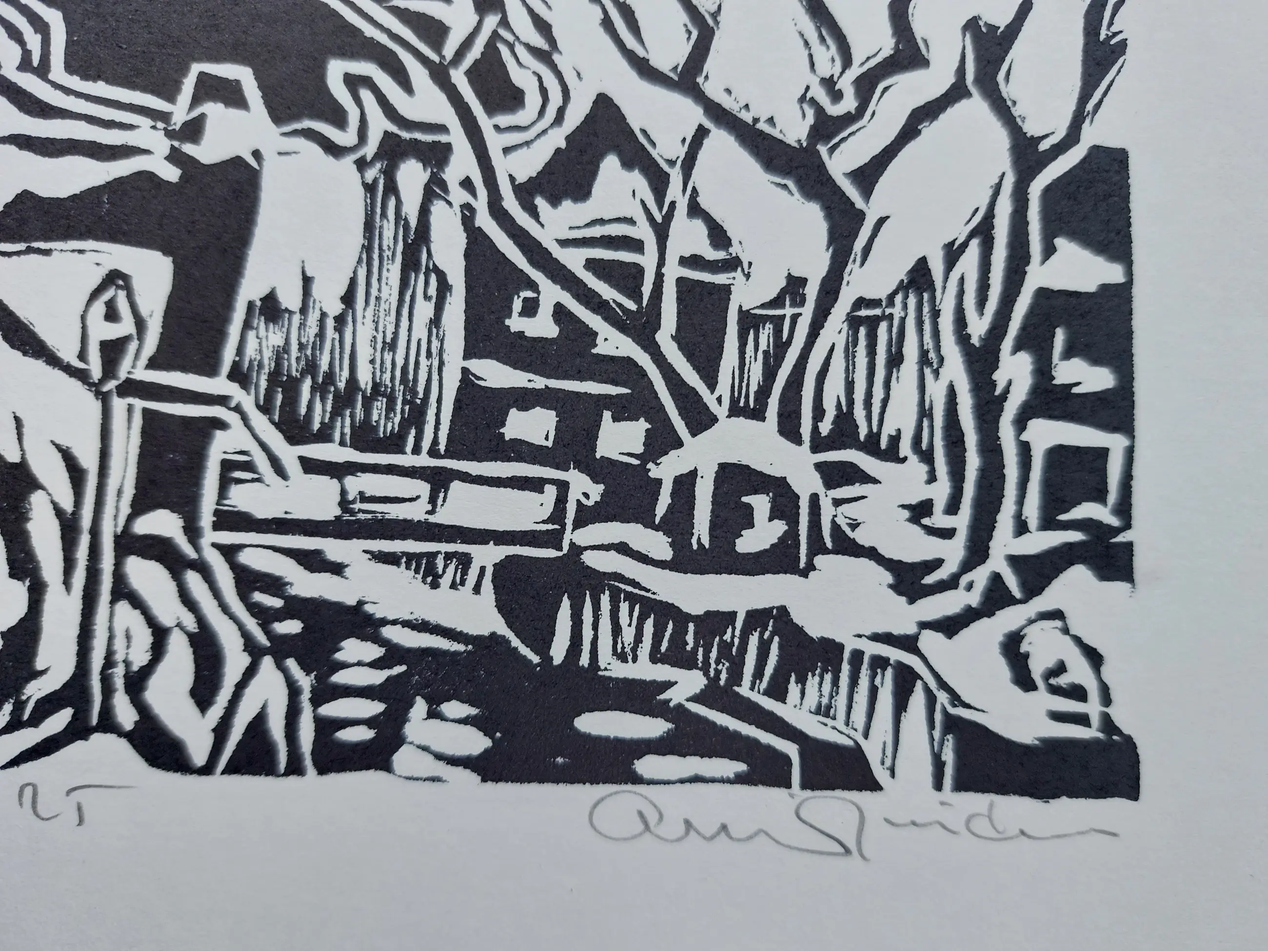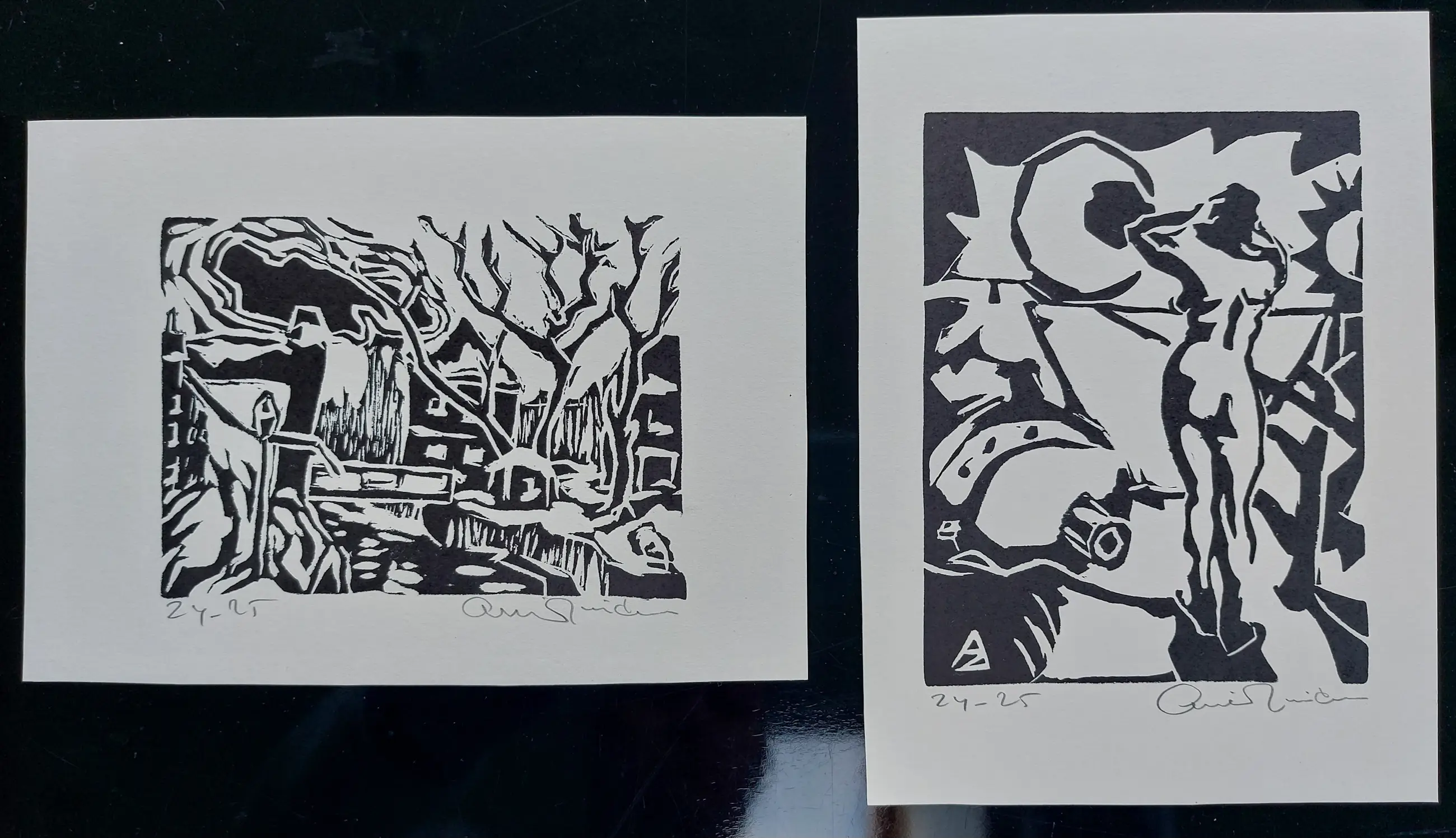 2 kleine linosneden van Groninger Ploeg kunstenaar Arie Zuidersma. Beide handgesigneerd en genummerd in potlood. Beide 18 x 13 cm en in goede staat.
