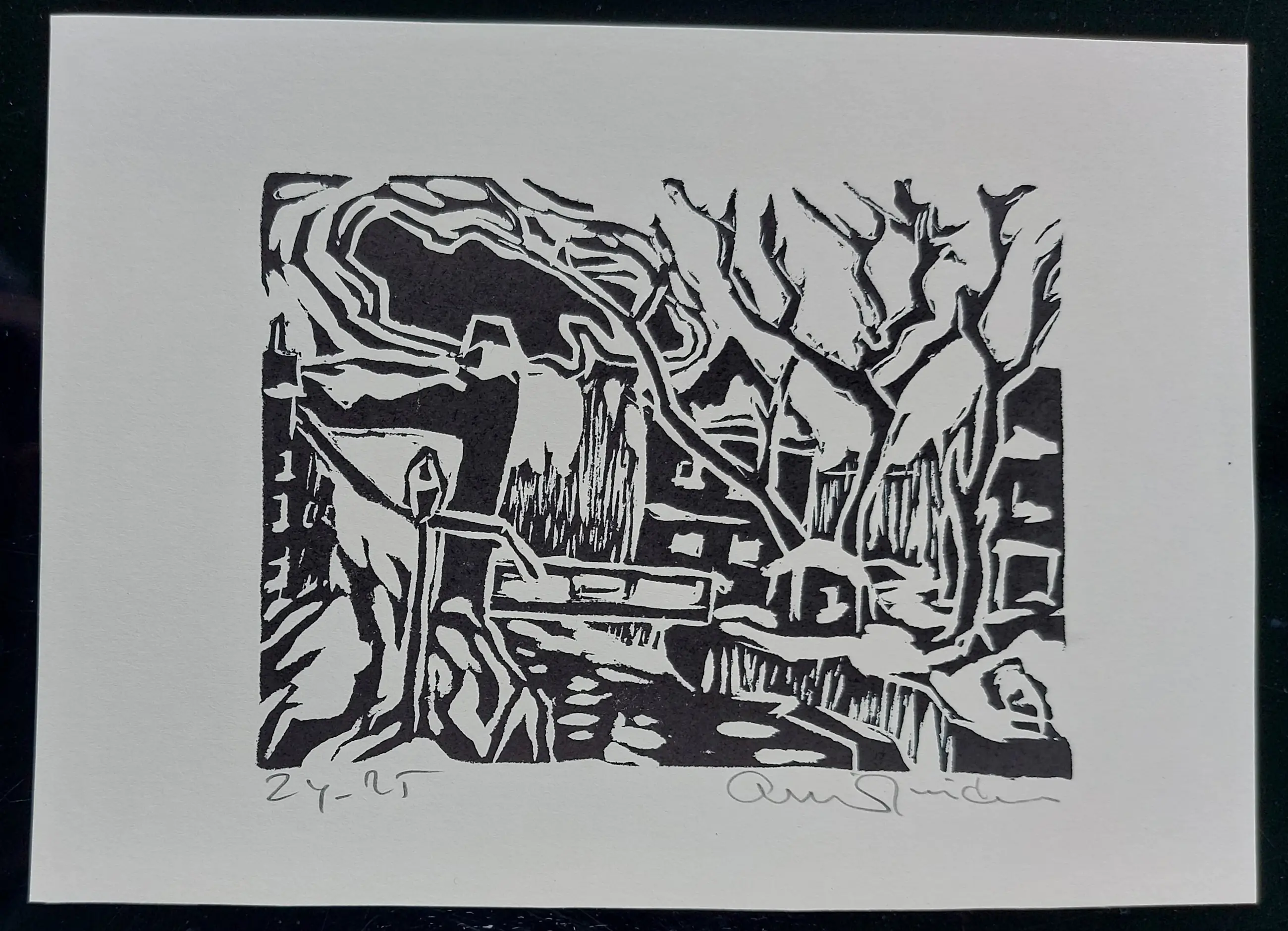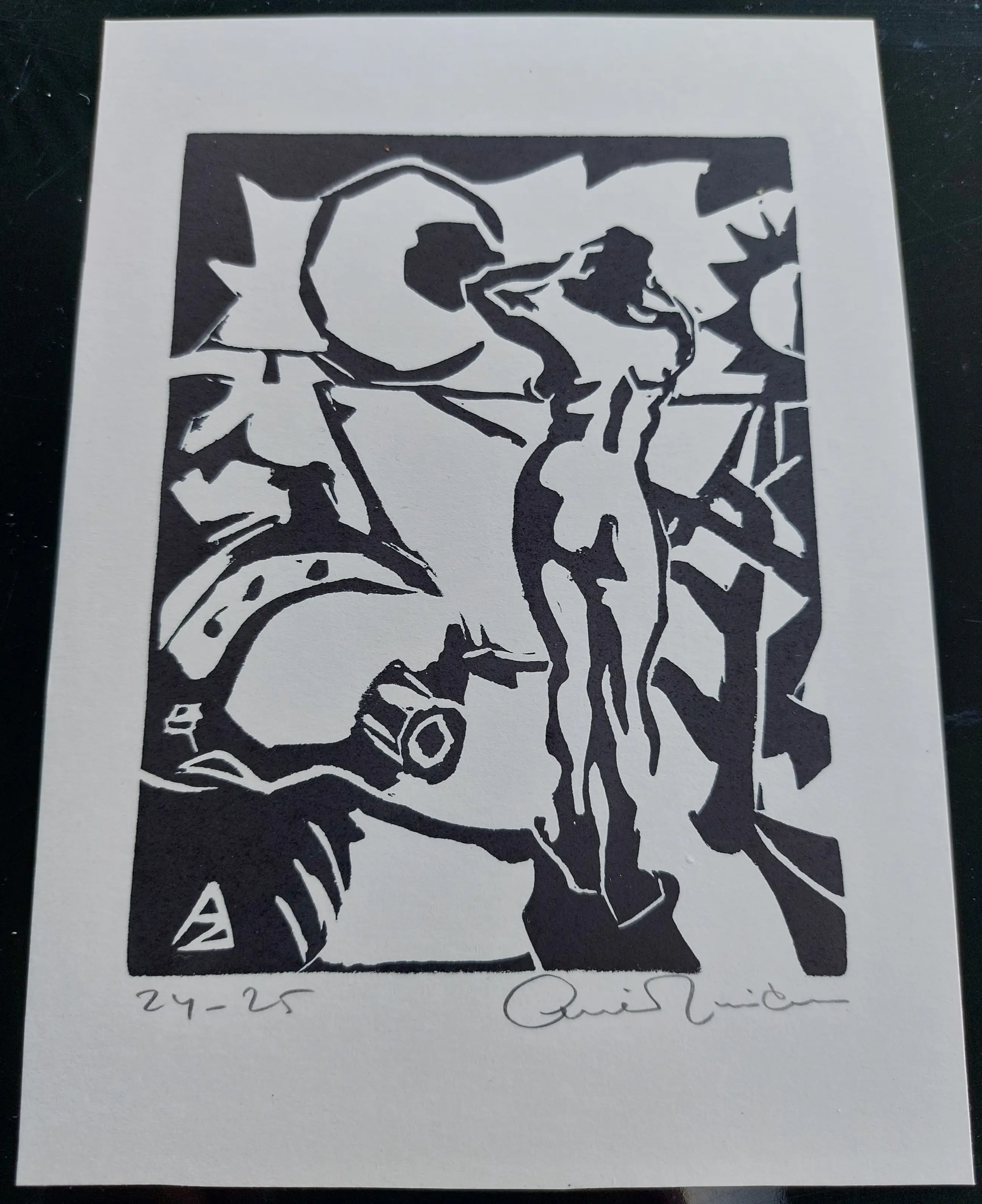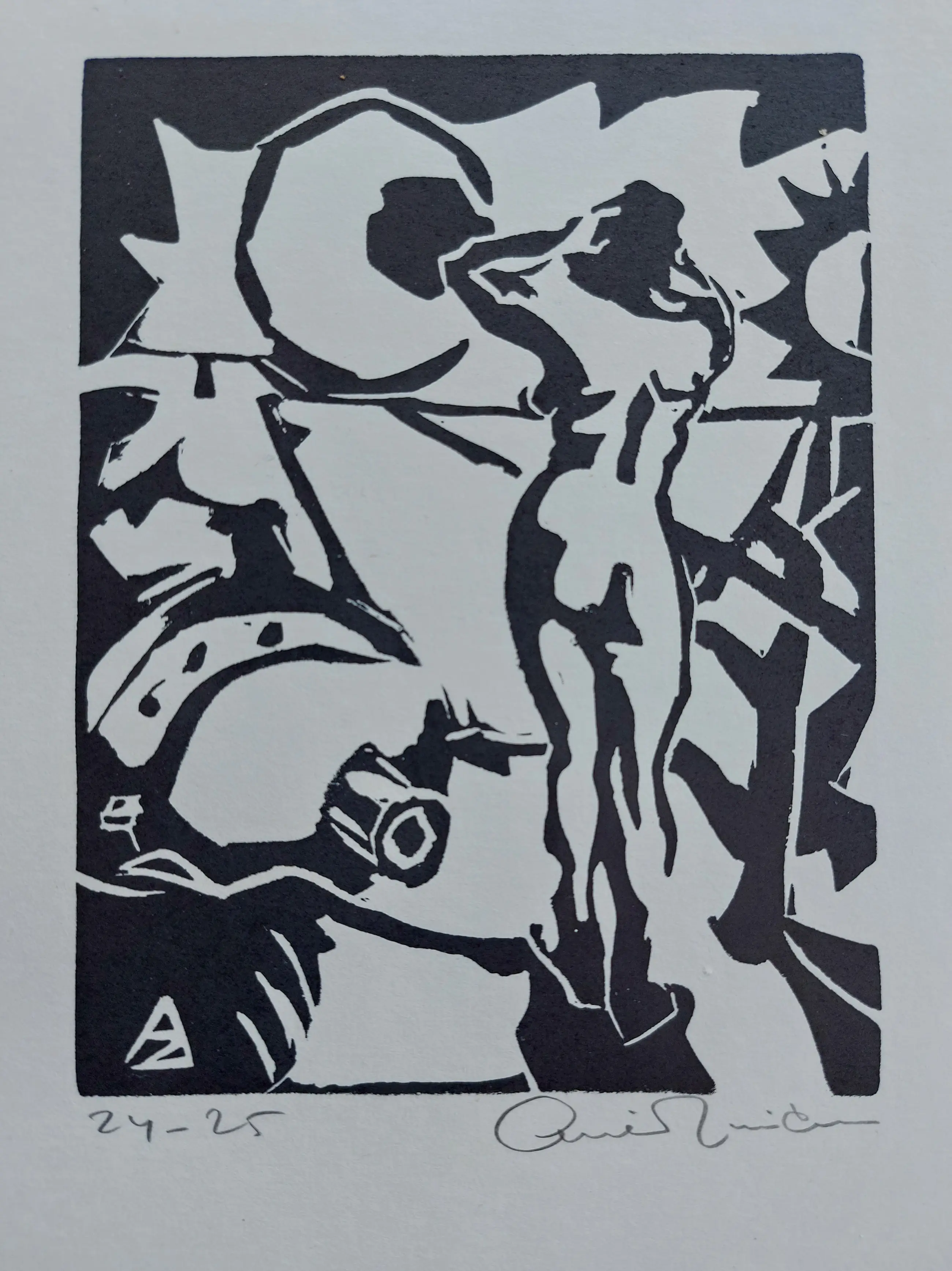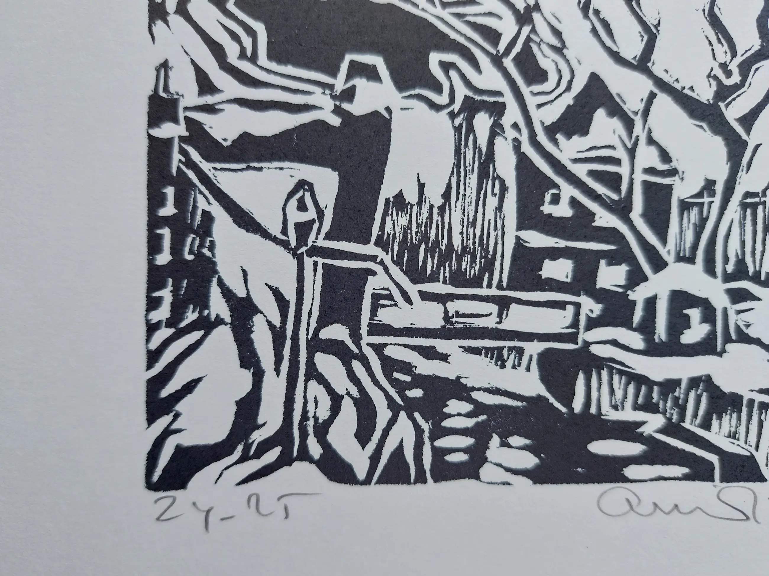 2 kleine linosneden van Groninger Ploeg kunstenaar Arie Zuidersma. Beide handgesigneerd en genummerd in potlood. Beide 18 x 13 cm en in goede staat.