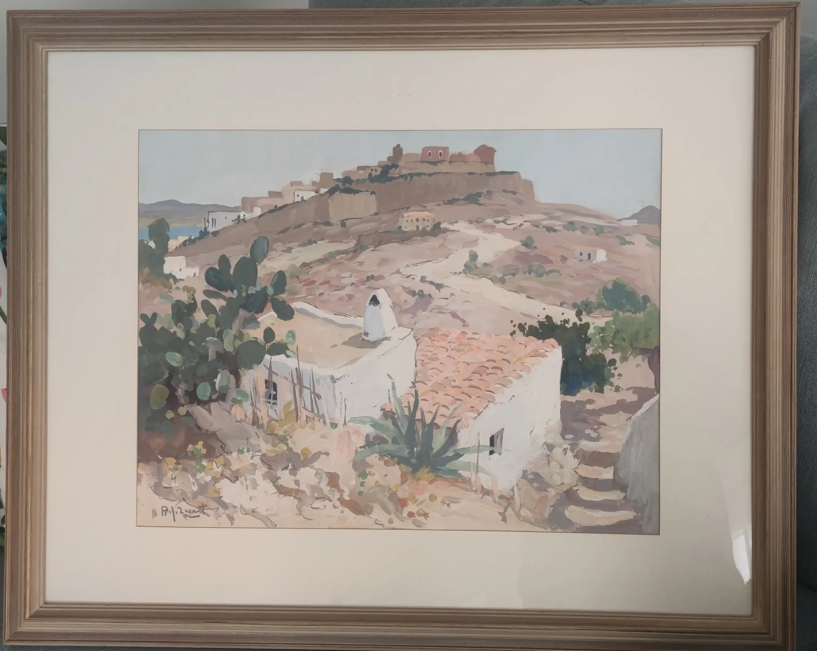 Fantastic gouache on paper signed by Arie Zwart. Very good condition and the best Ibiza gouache scen i have seen.