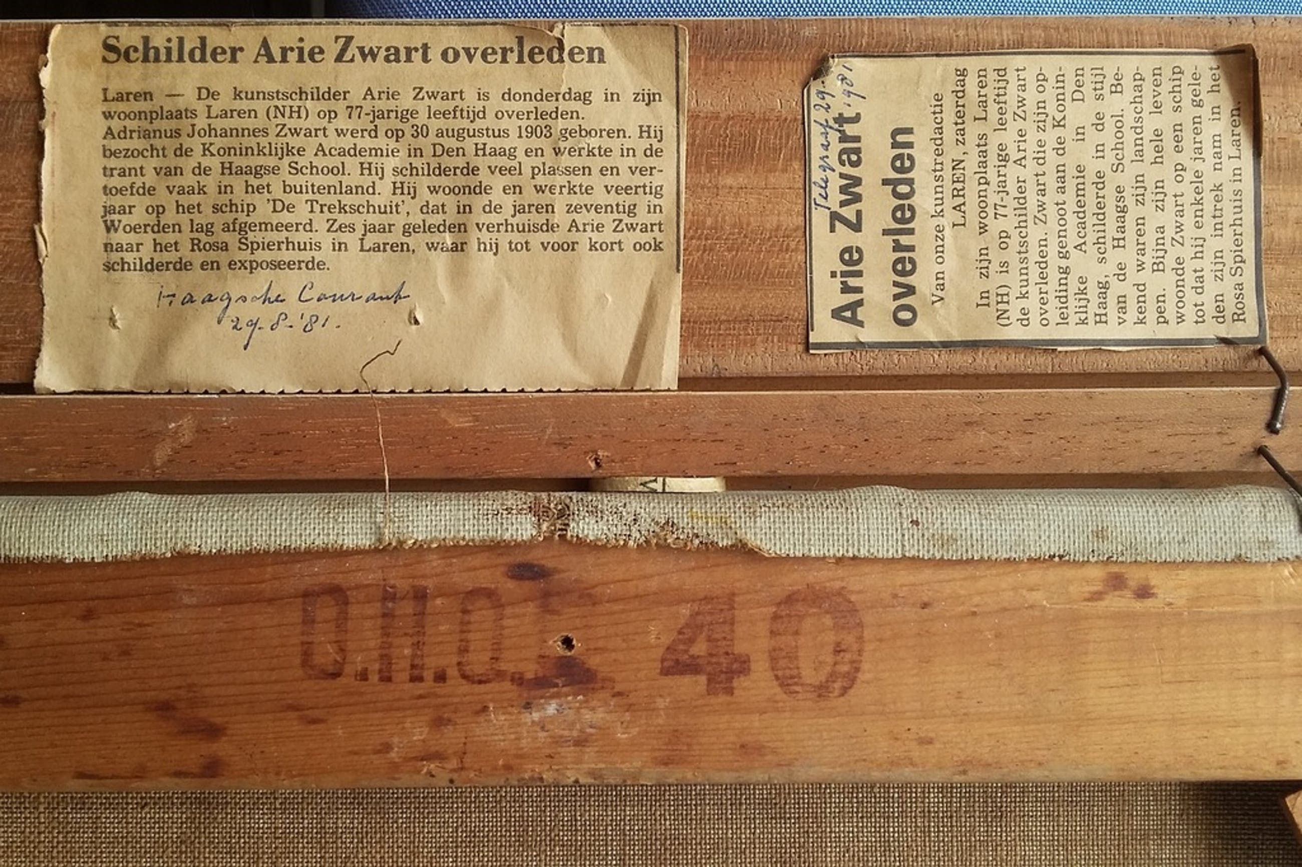 Adrianus Johannes Zwart (Arie) werd op 30 augustus 1903 in Rijwijk (Zh.) geboren en overleed op 27 augustus 1981 in Laren (Nh).