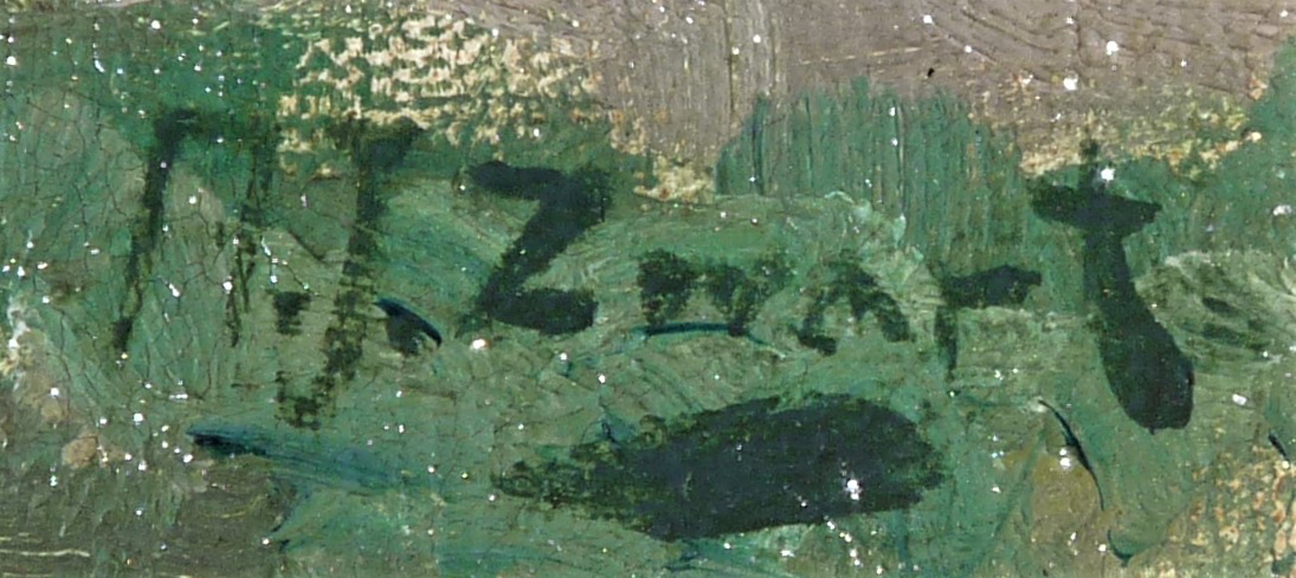 Fraai werk van de bekende schilder A J. Zwart. Het werk was zeer vuil, doch na recentelijke professionele reiniging + nieuw vernis is het werk weer in optimale conditie. Het schilderij wordt zonder lijst verkocht, doch op 1 foto getoond met lijst, als voorbeeld hoe mooi dit kan worden. Authenticiteit wordt volledig gegarandeerd.