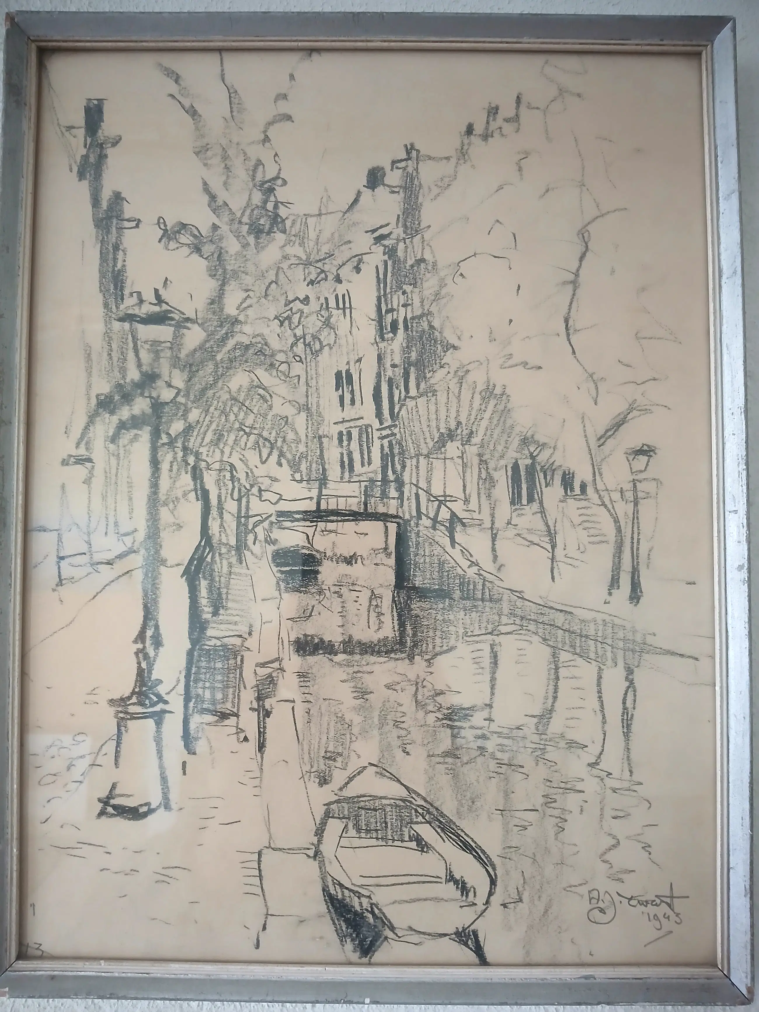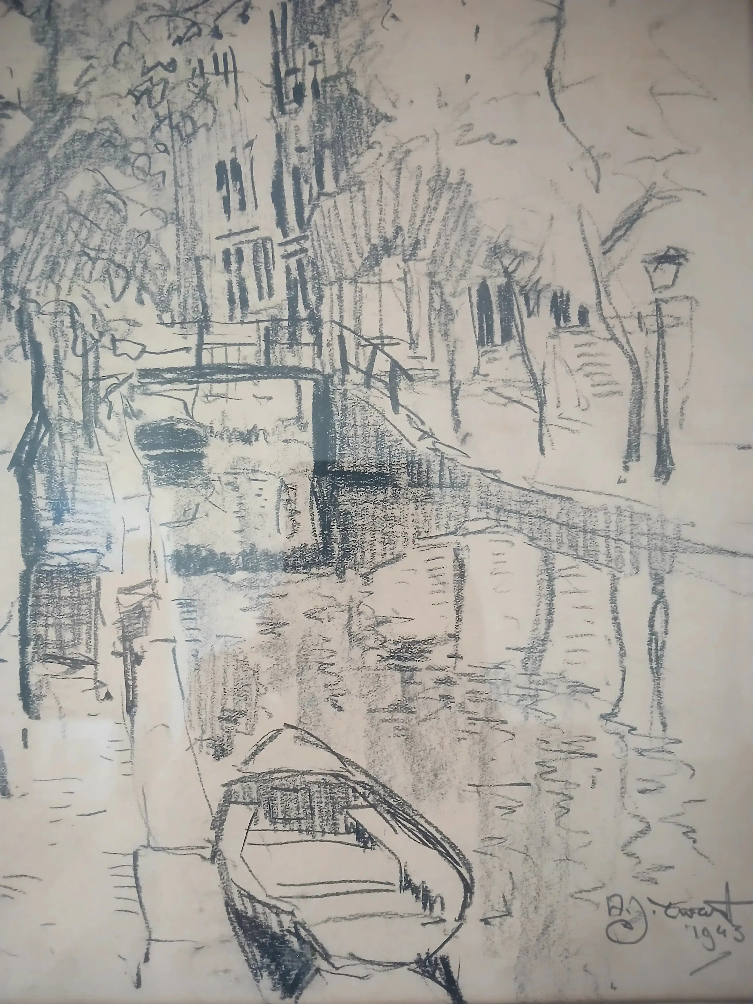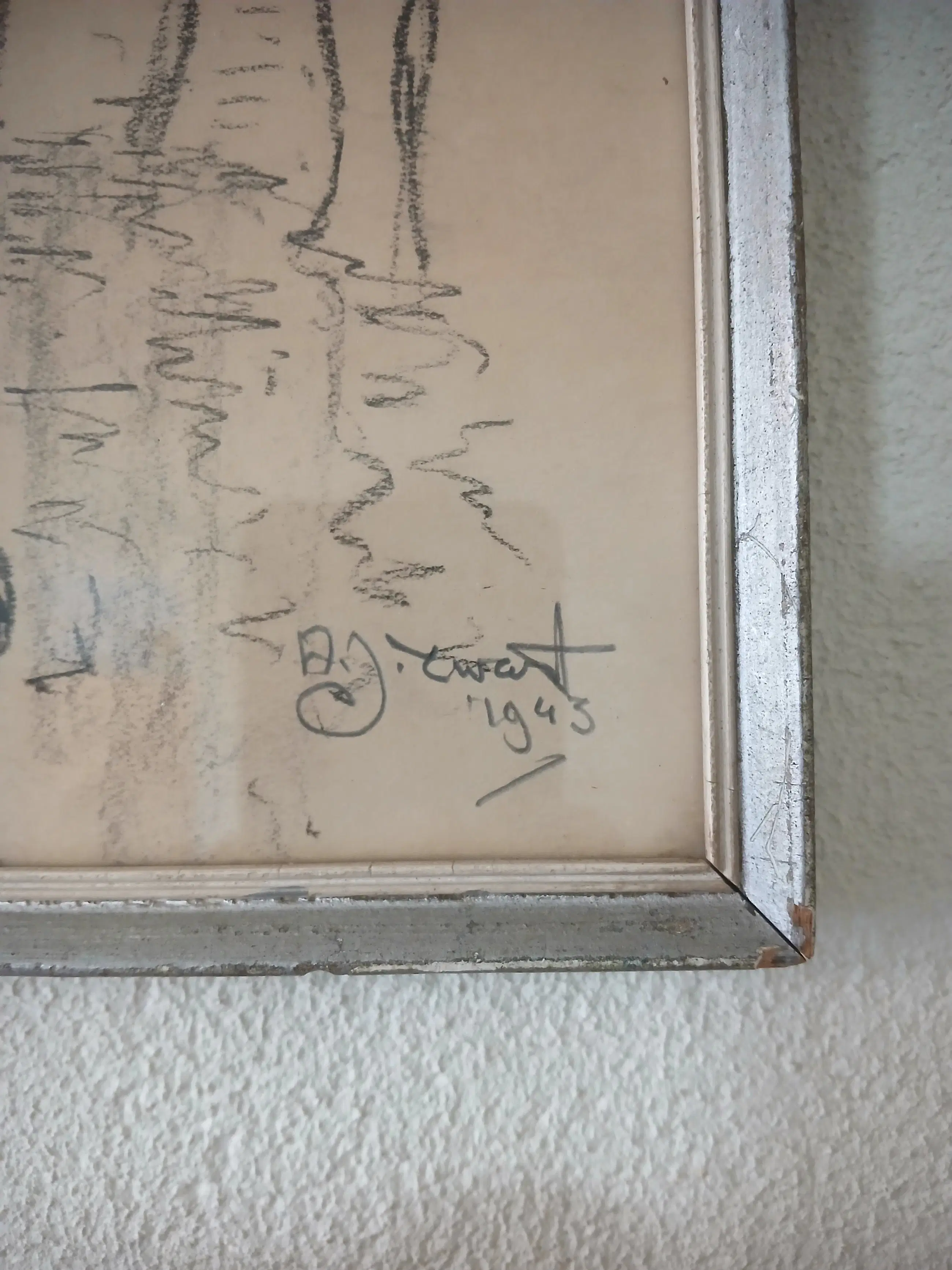 Mooi oud werk uit 1943 van Arie Zwart Originele lijst achter glas. Handgesigneerd.