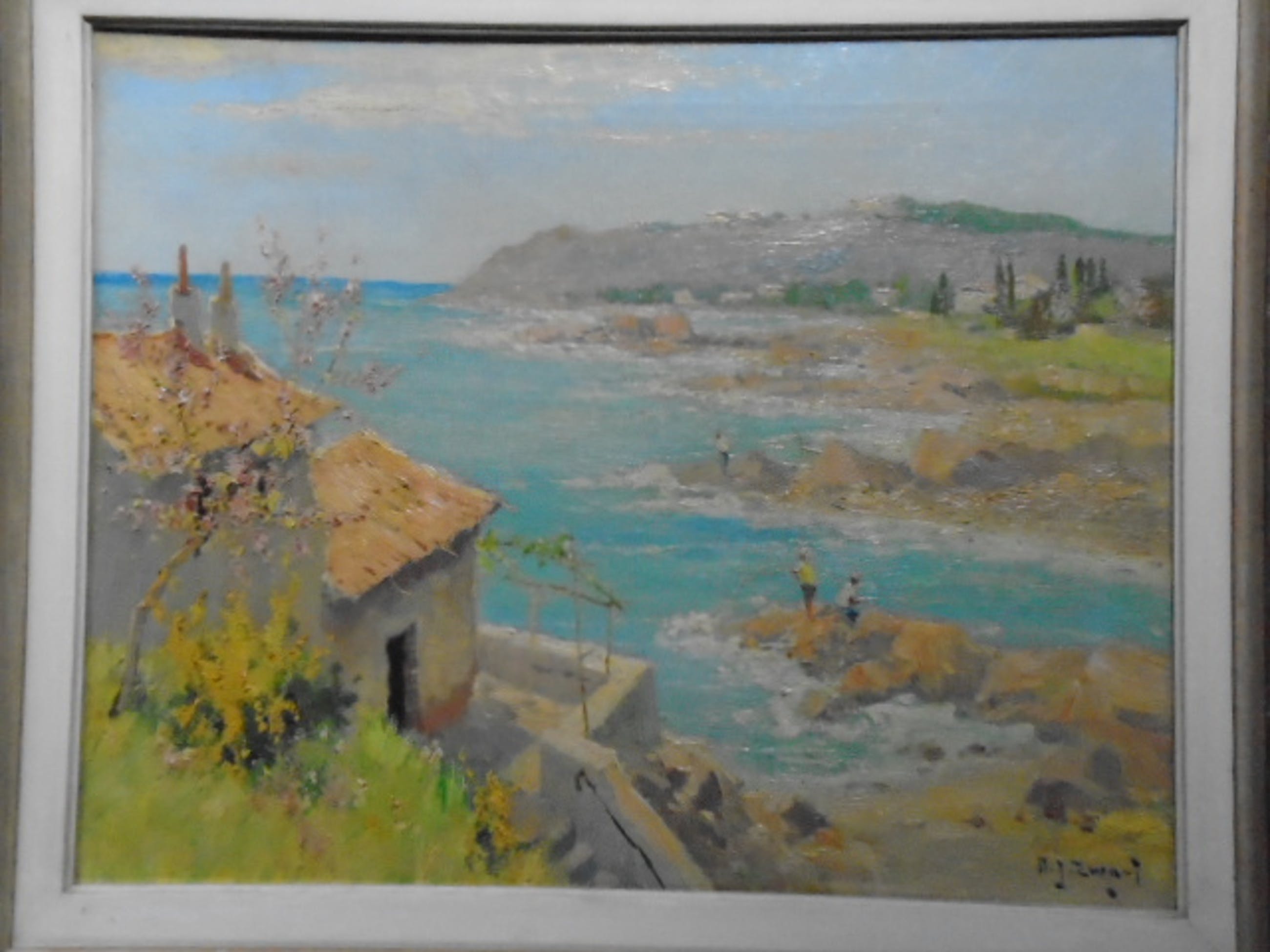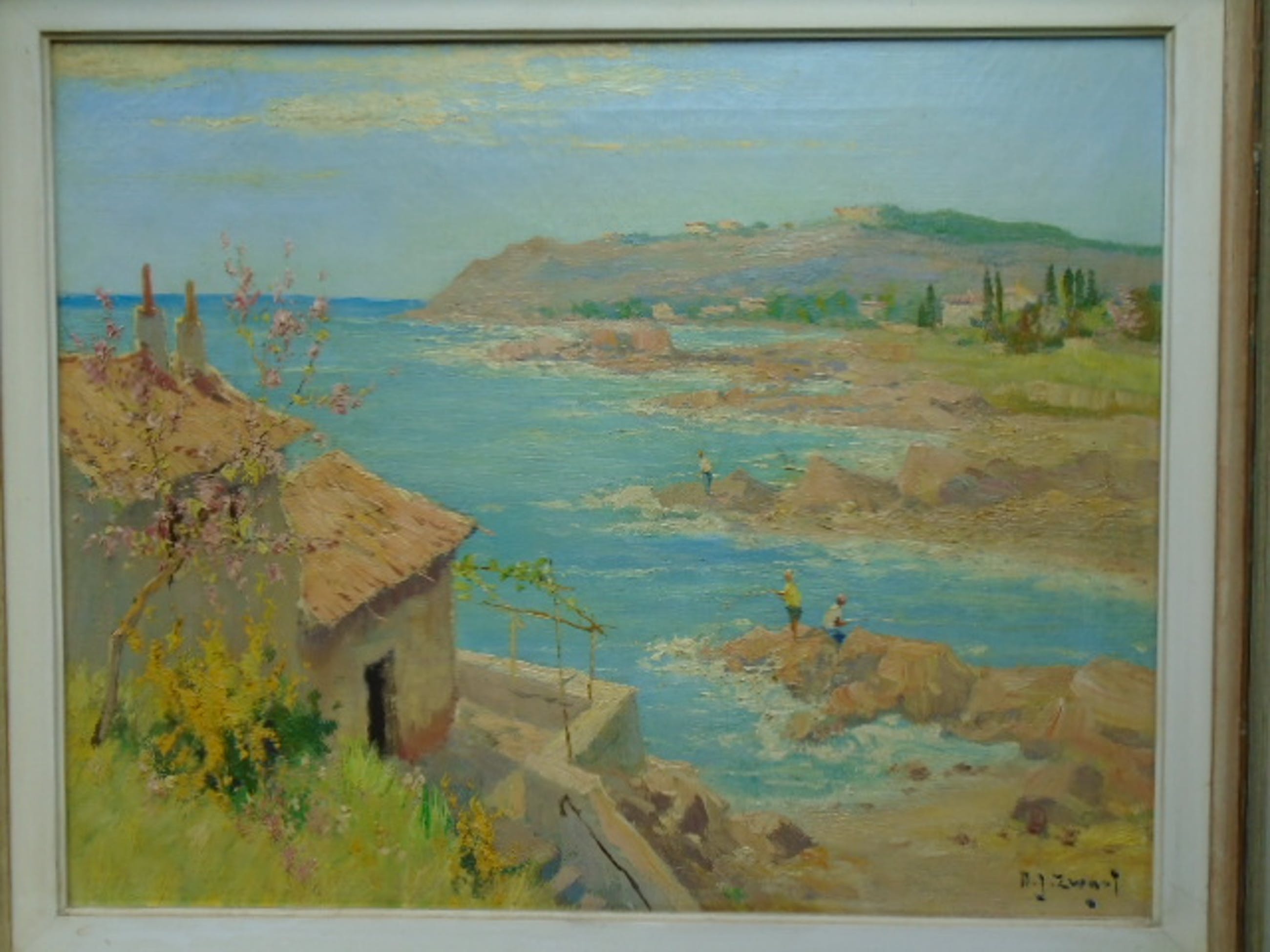 Mooi olieverf op doek van A.J.Zwart in lichte kleuren.Gesigneerd rechtsonder.Doekmaat 40 x 50 cm.Lijstmaat 57,5 x 67,5 cm.