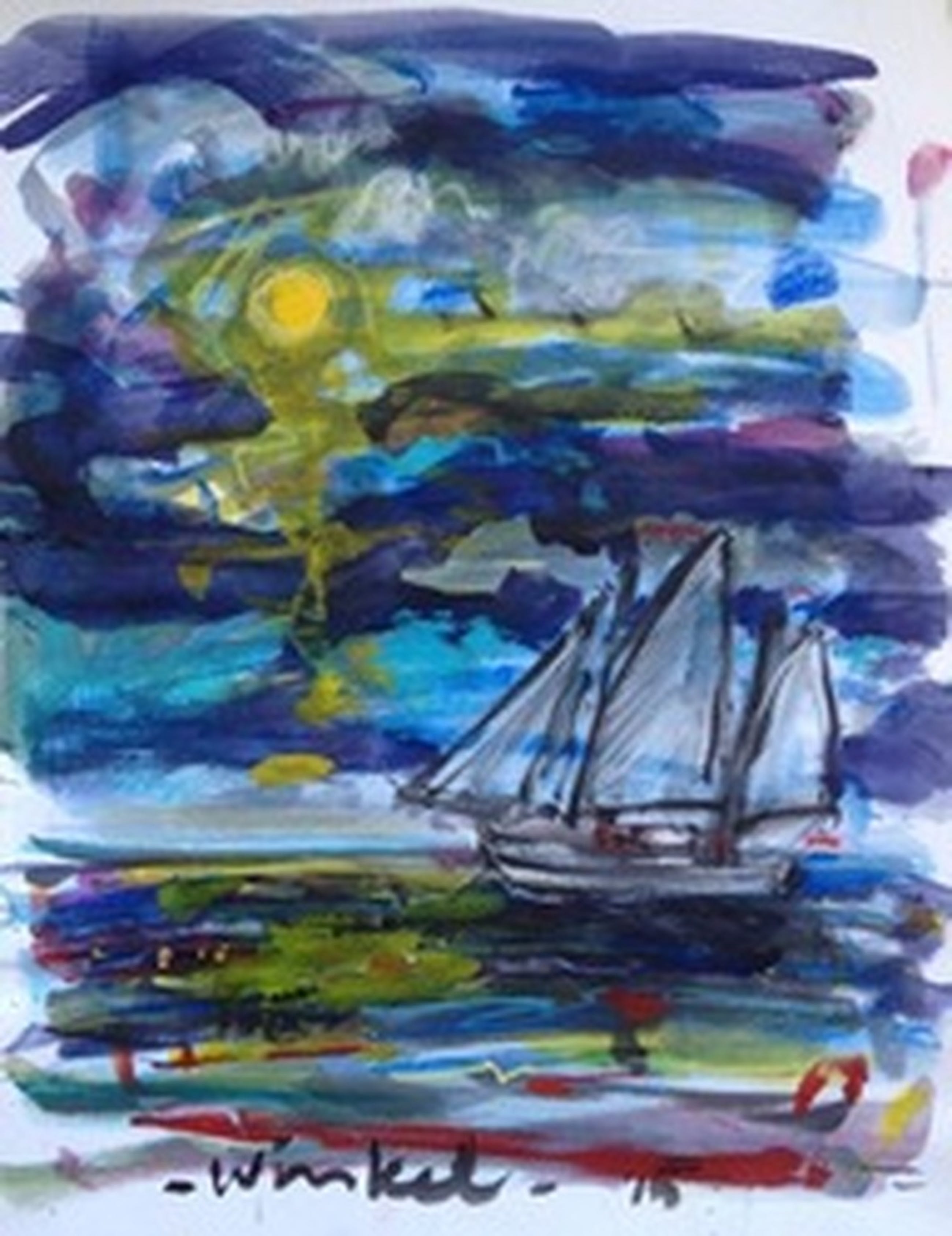 De gemengde techniek bestaat uit acryl en pastelverf op zwaar papier