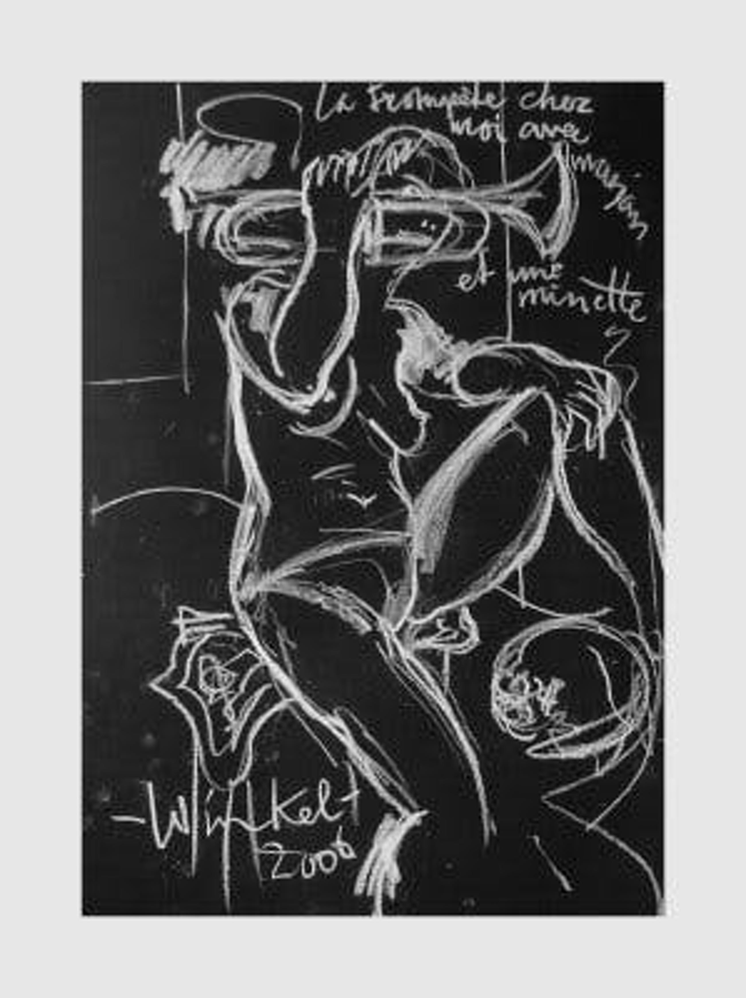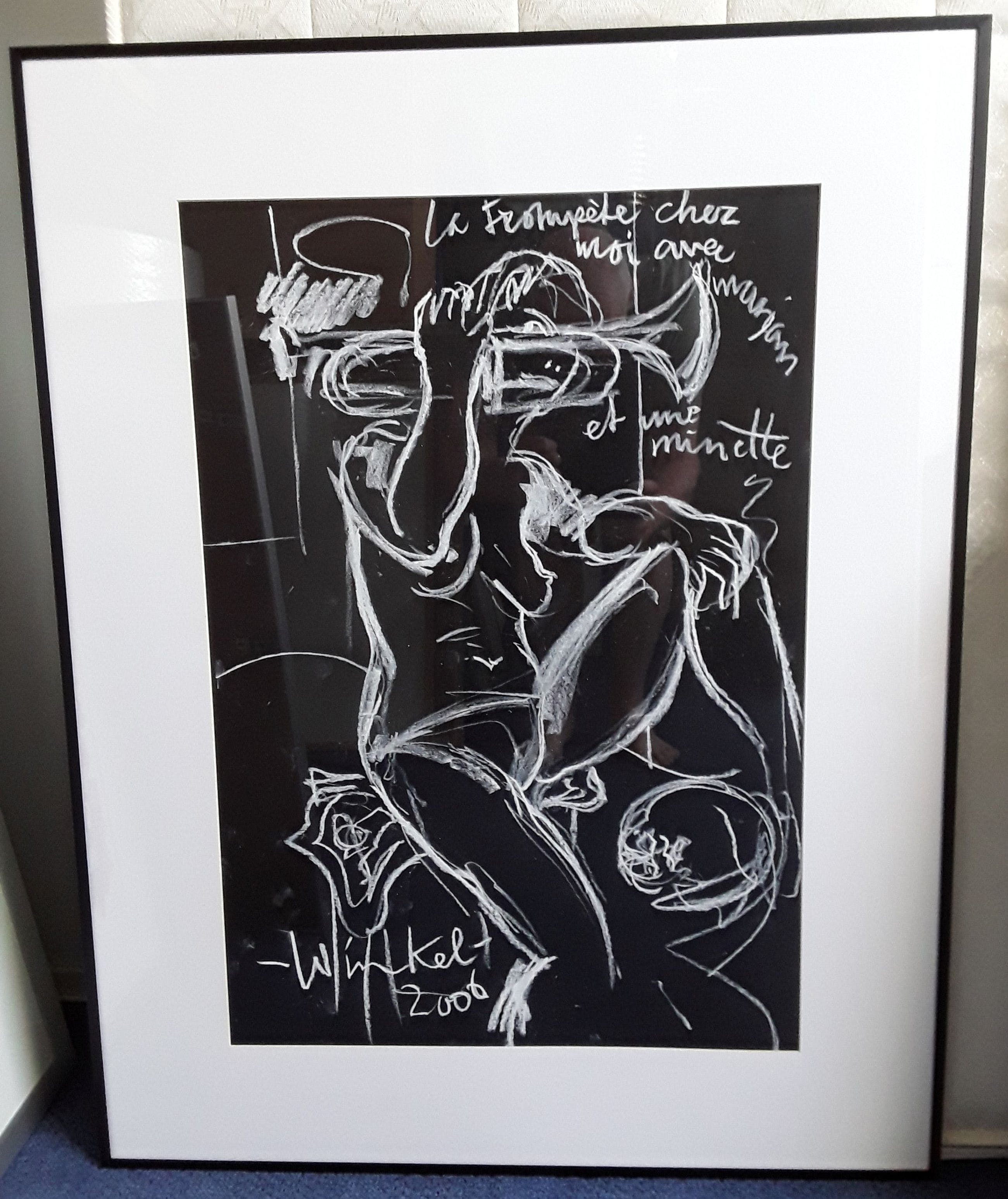 Arien Winkel - La Trompète chez.... wit krijt op zwart papier