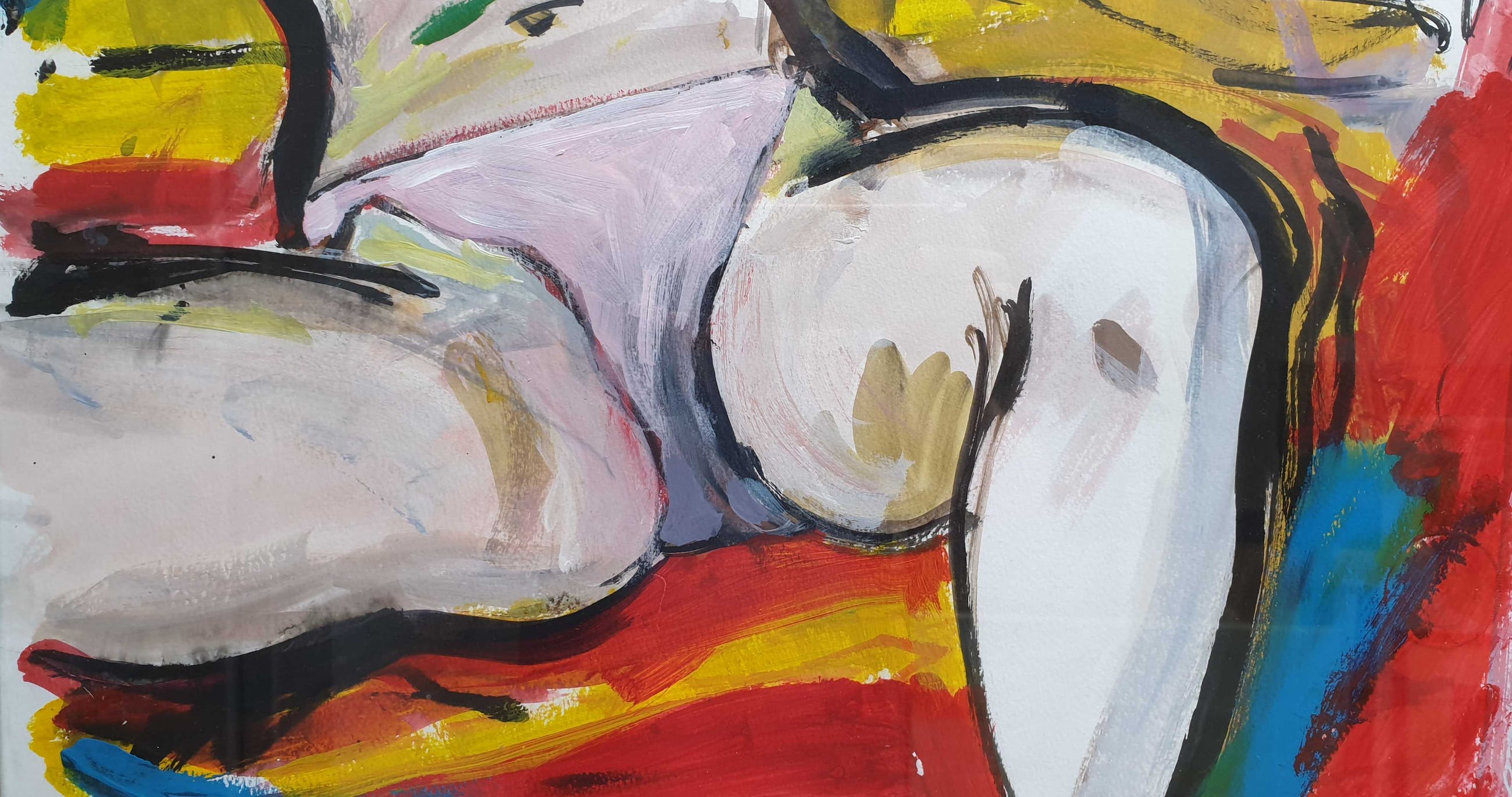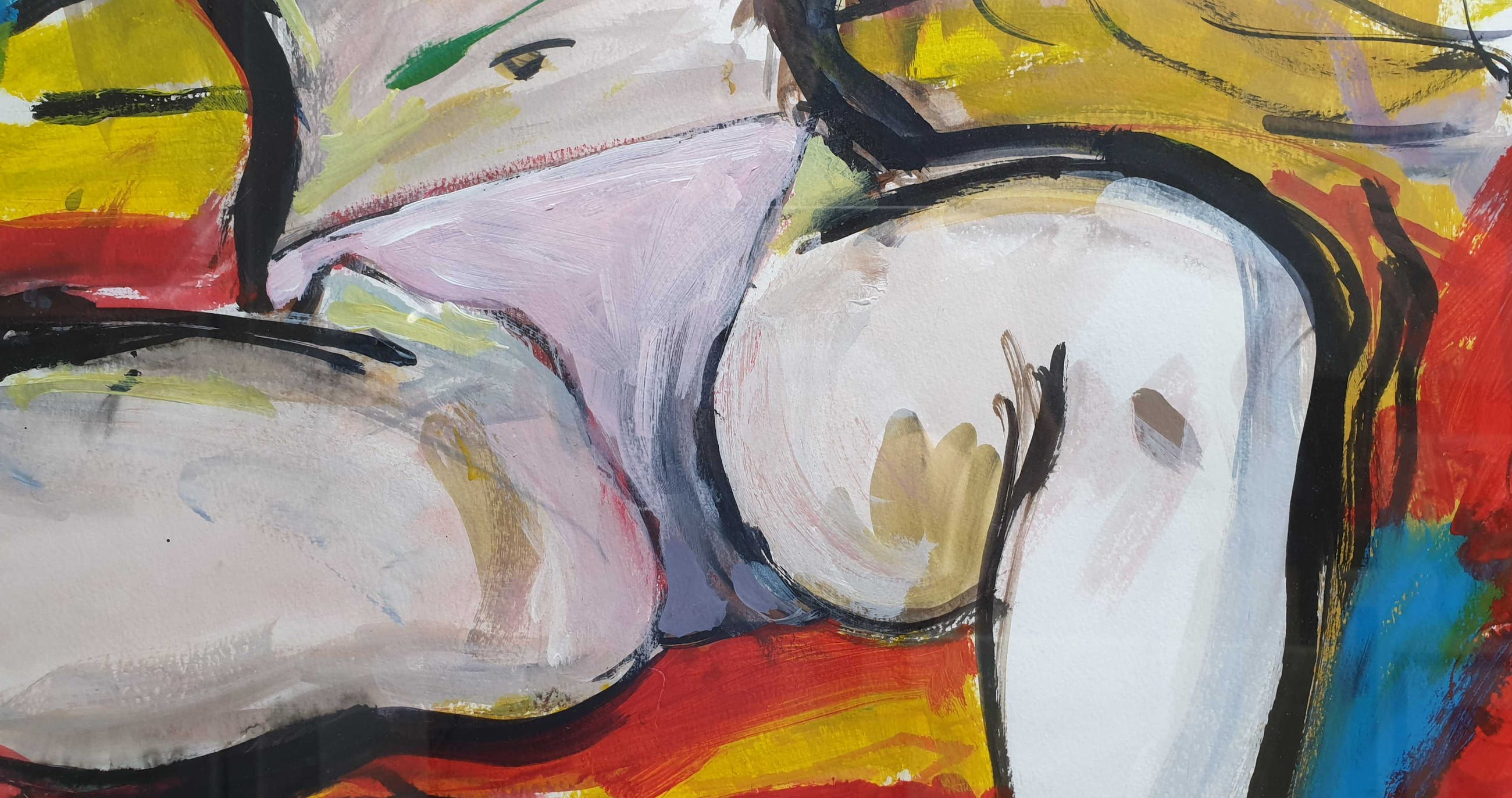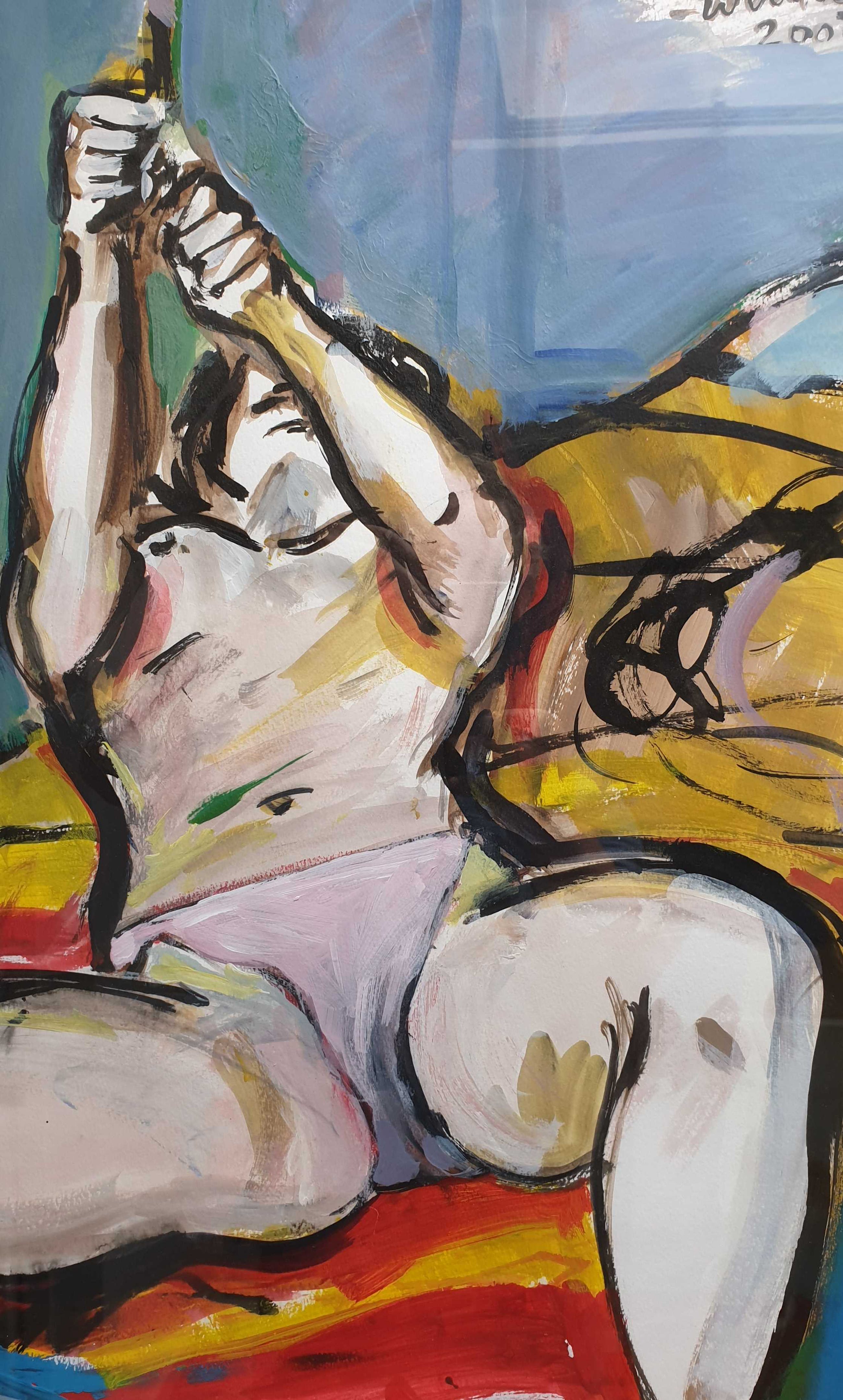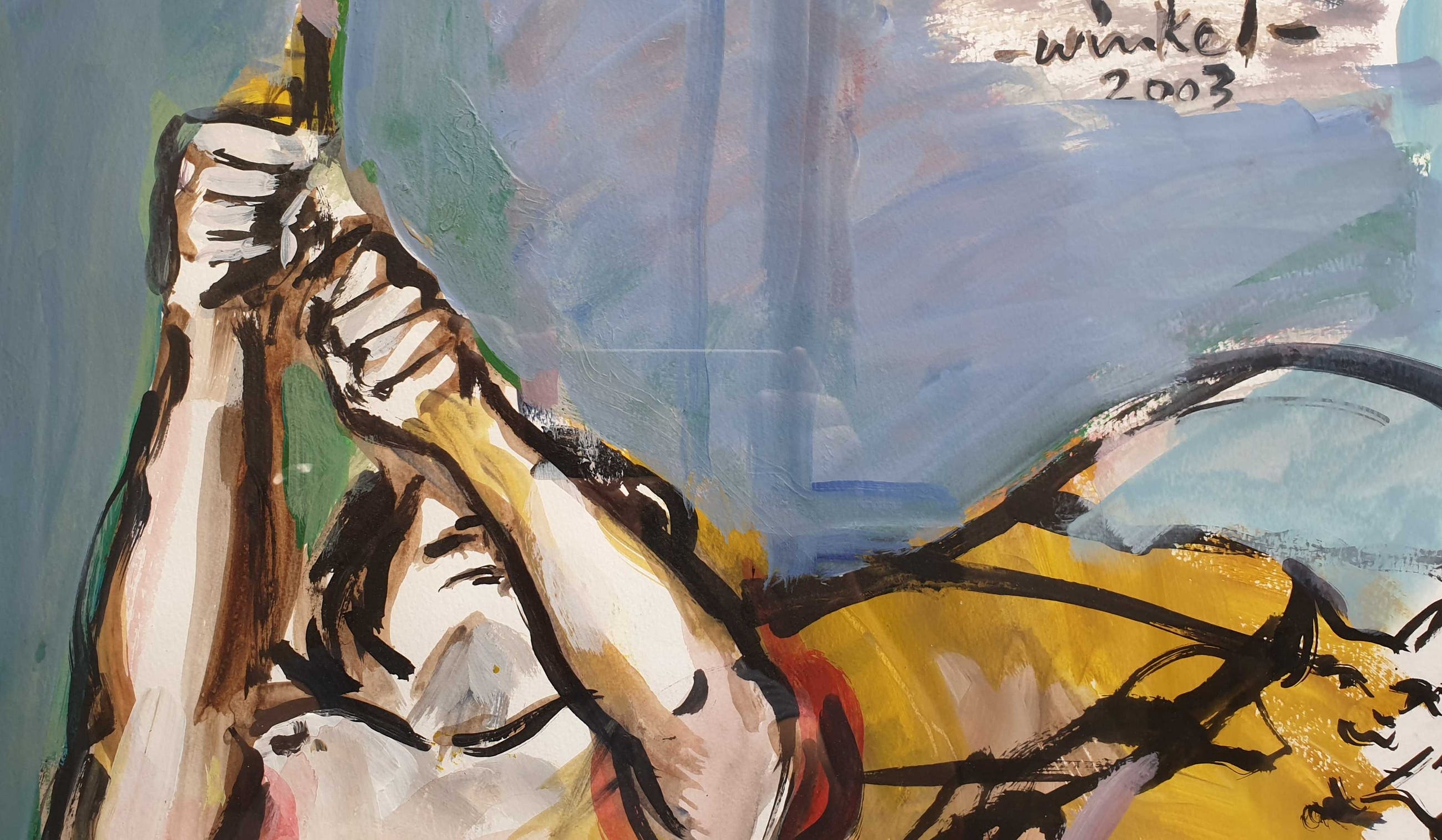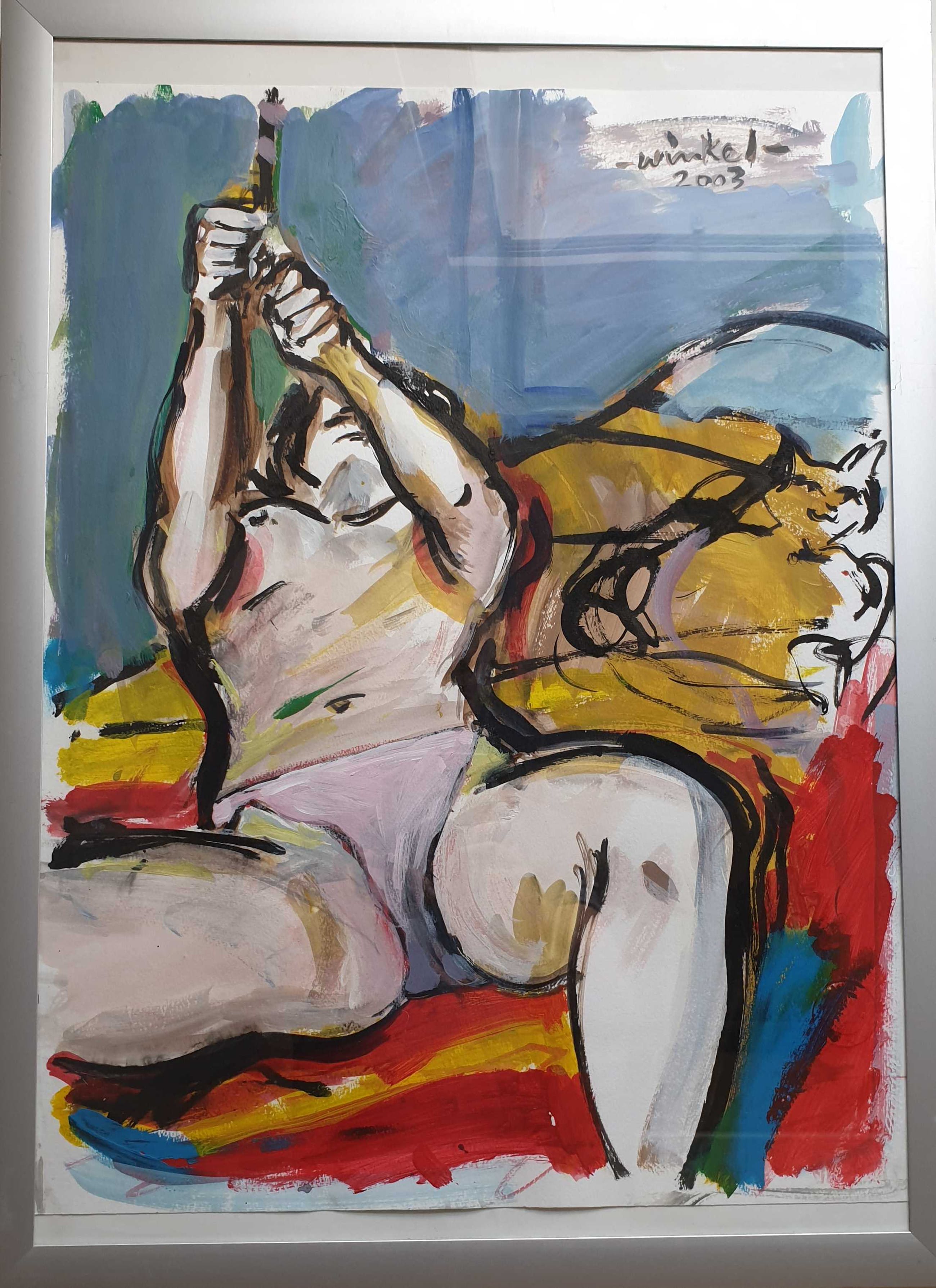 Fraai erotisch werk van Ariën Winkel. Werk en lijst verkeren in prima staat, alleen de hoogte van het werk komt niet helemaal overeen met de binnenmaat van de lijst.