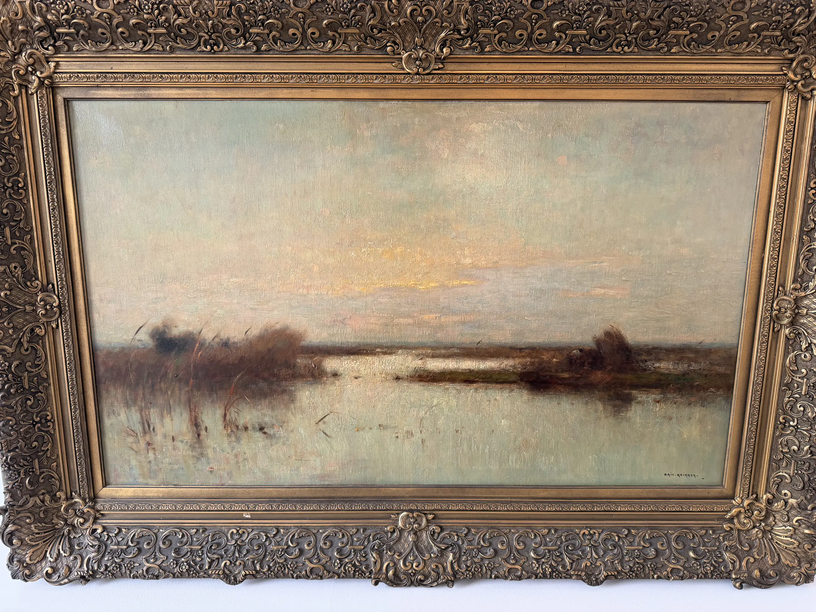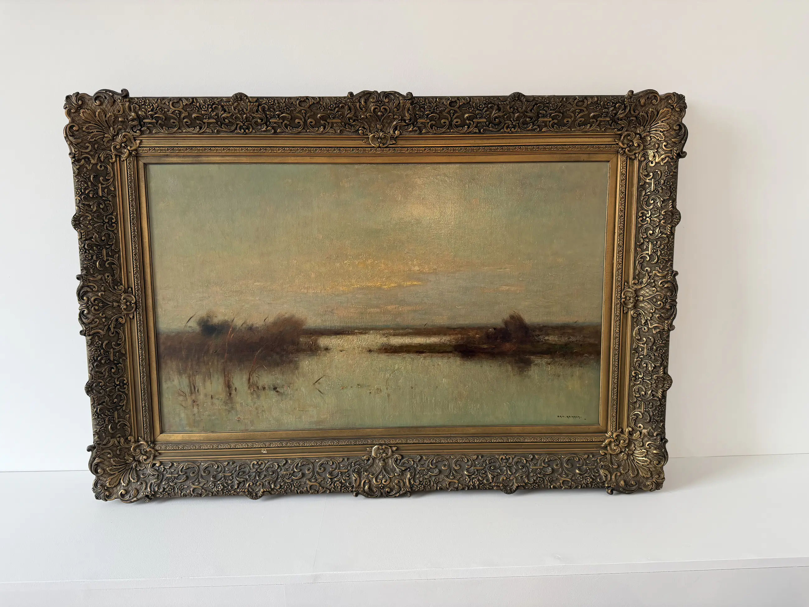 Prachtig groot geschilderd doek in lijst van Aris Knikker