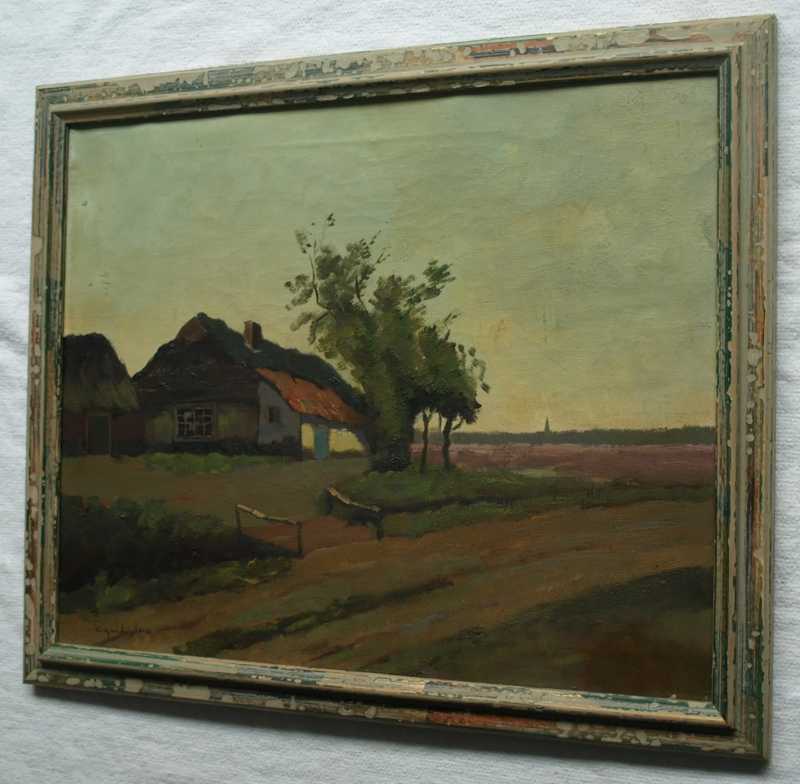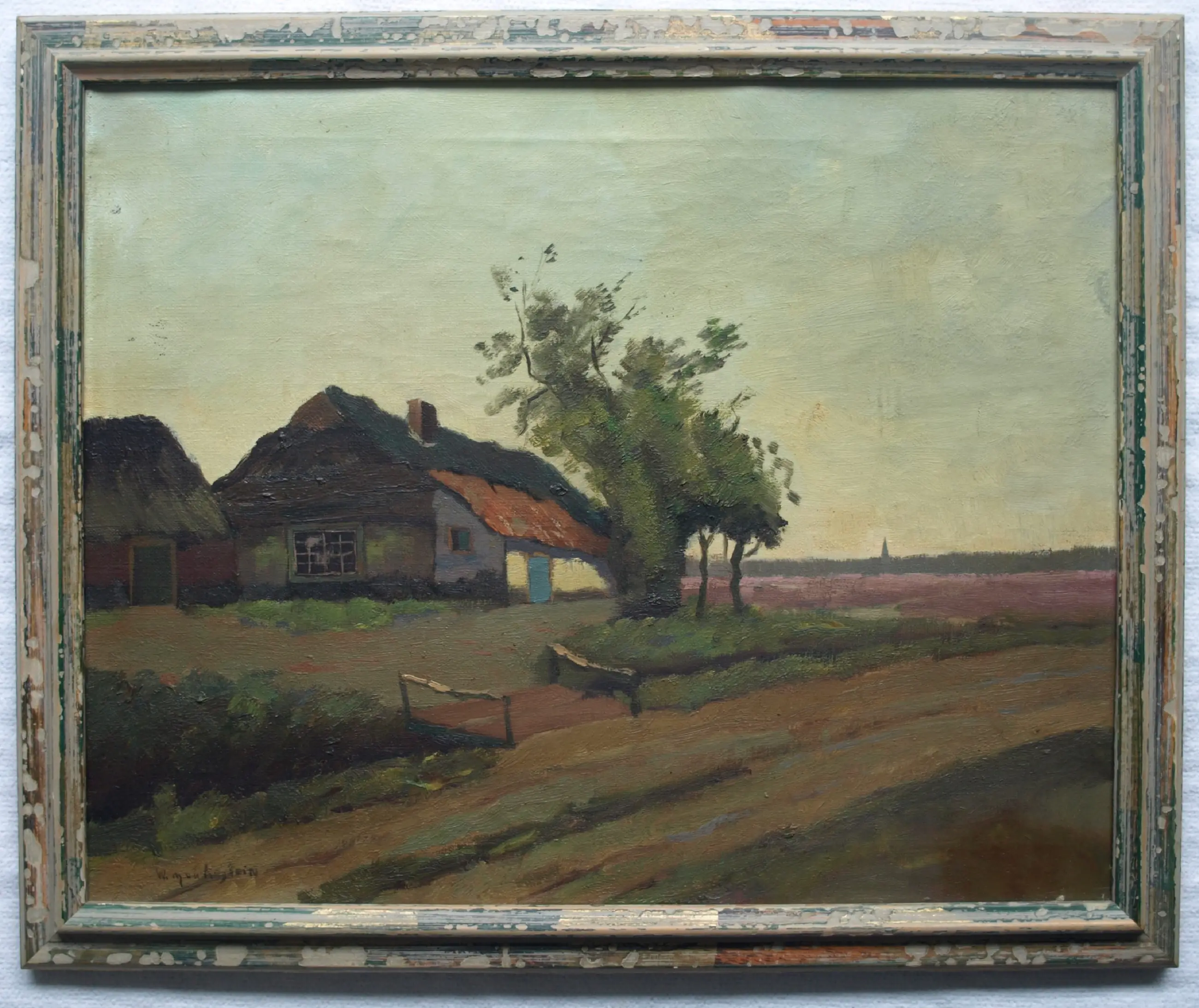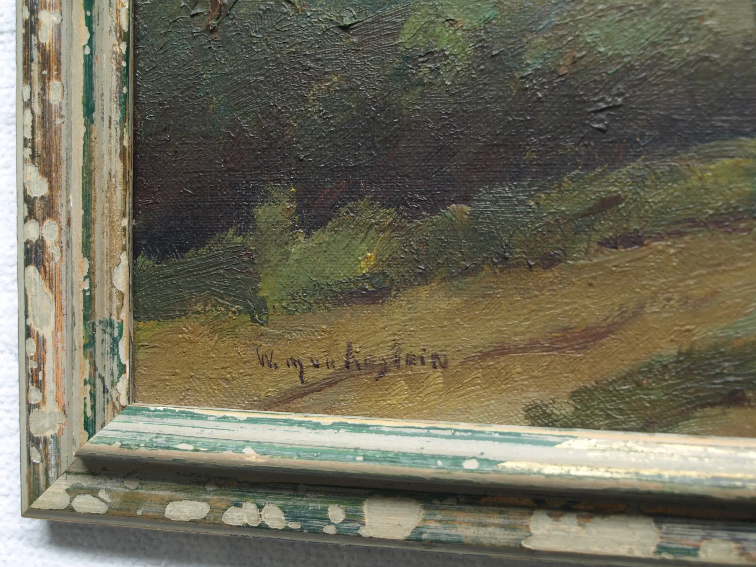 Dit is een werk van Aris Knikker onder zijn Pseudoniem W. Markestein -Olieverf op doek, opgespannen op een houten spieraam en ingelijst in een houten lijst. -Gesigneerd linksonder. Jaartal onbekend. -Afmetingen: Lijst, 46 x 56 x 3 cm. Spieraam, 40 x 50 cm. Beeld, 39 x 49 cm. -Herkomst: Uit een inboedel. -Conditie: In goede staat met wat ouderdomssporen. De lijst heeft slijtplekken. Waarschijnlijk is de sierrand ooit verwijderd….. Zie ook de foto’s voor een eigen indruk. Kan zo aan de muur.