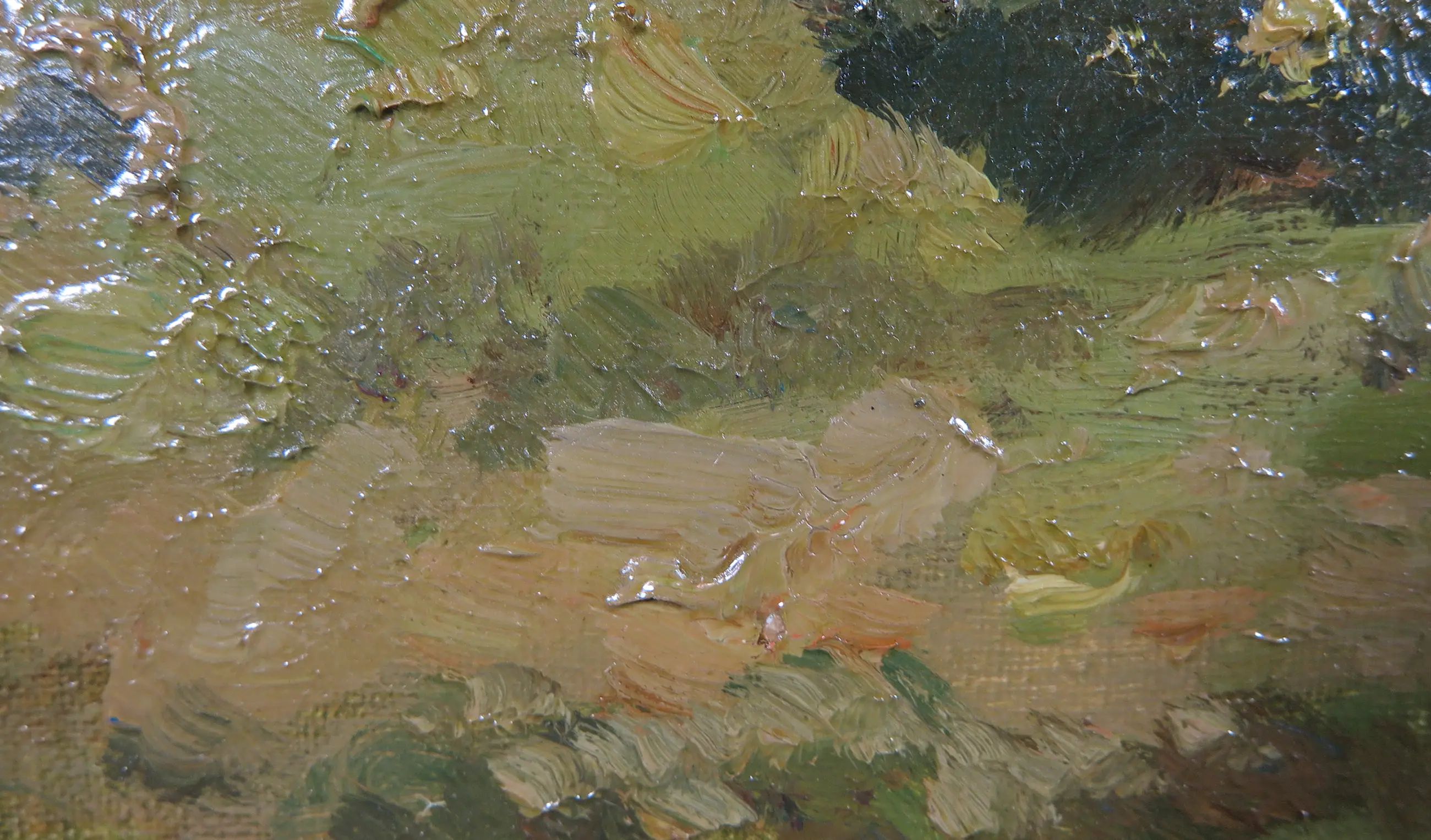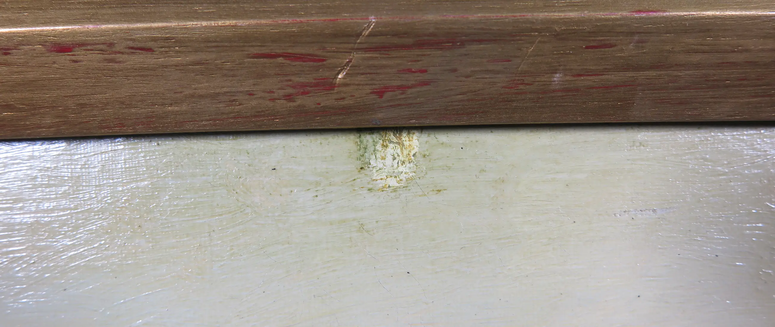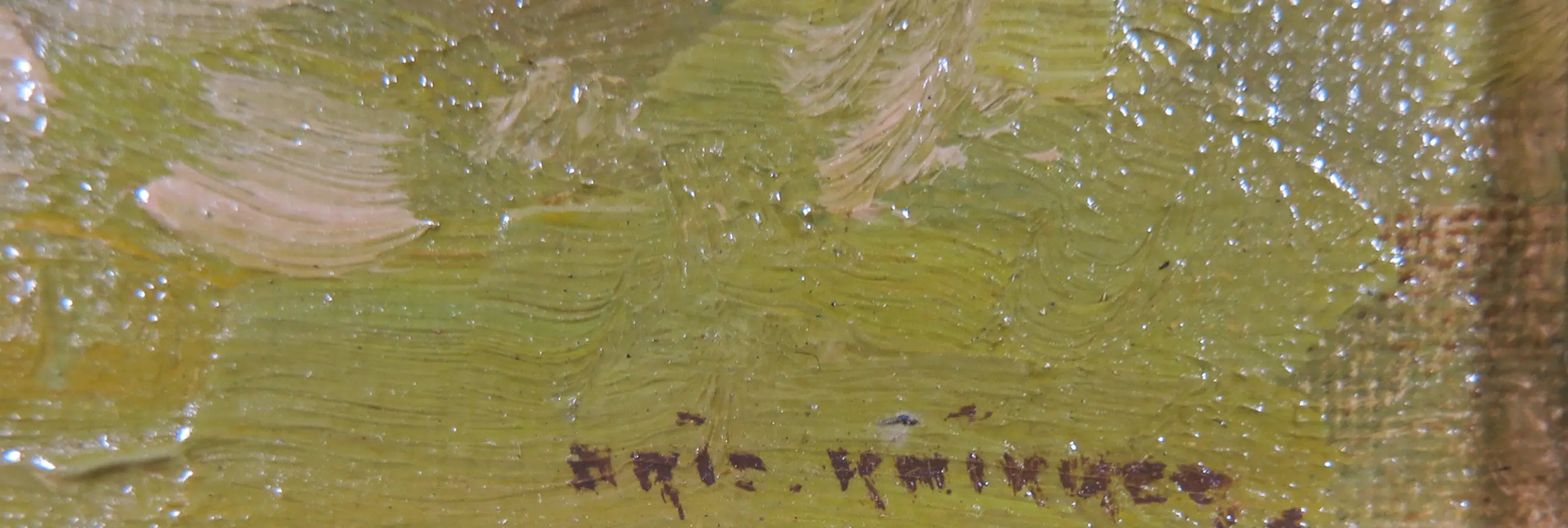 | Het doek is in goede staat en bevat, ondanks de pasteuze werkwijze hier en daar, minimale craquelé. Echter is het doek gerestaureerd via enkele overschilderingen en zijn deze goed zichtbaar, zie de detailfoto's. | |