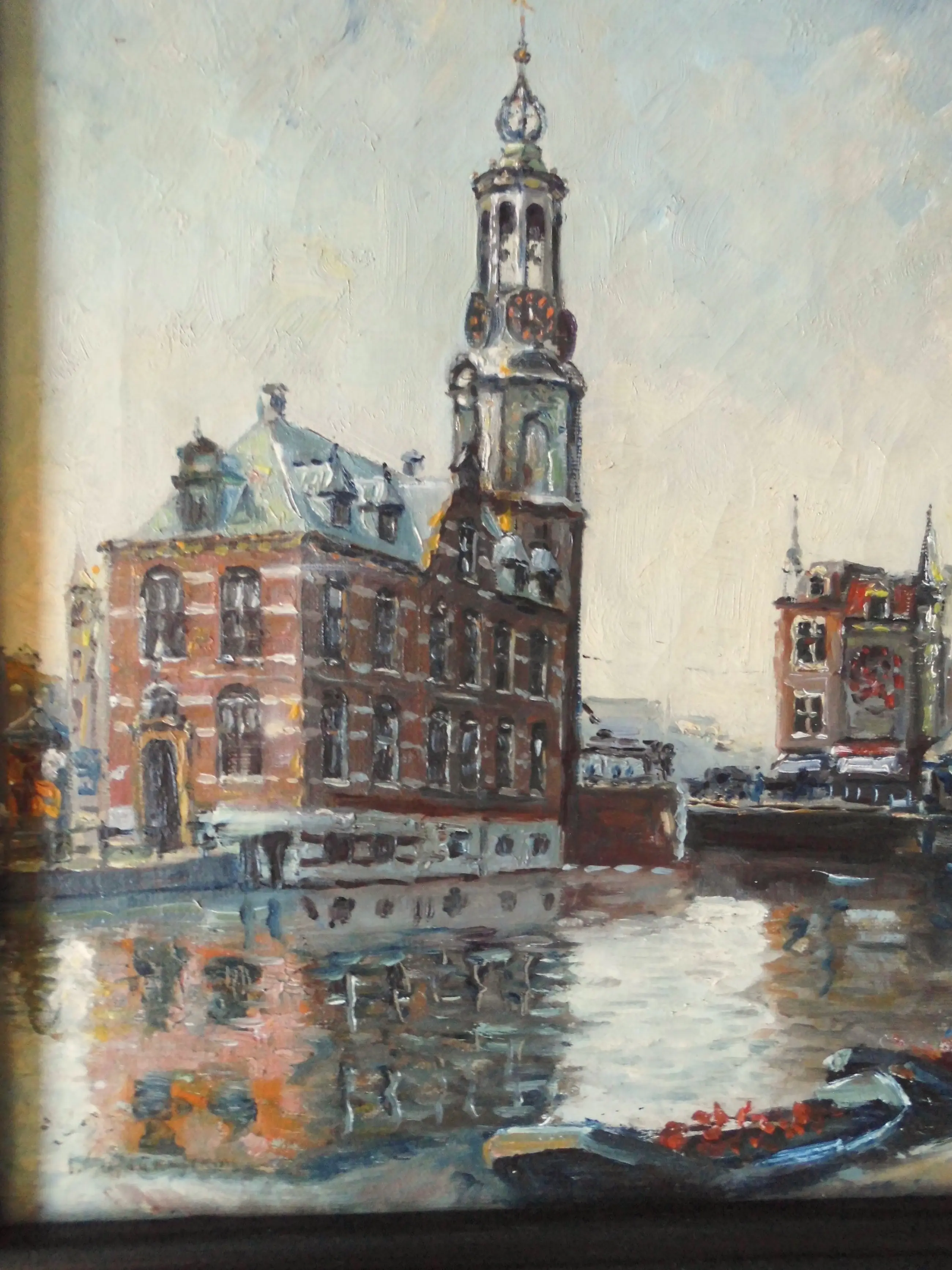 Zeer Mooi Olieverfschilderij "Munttoren Amsterdam"