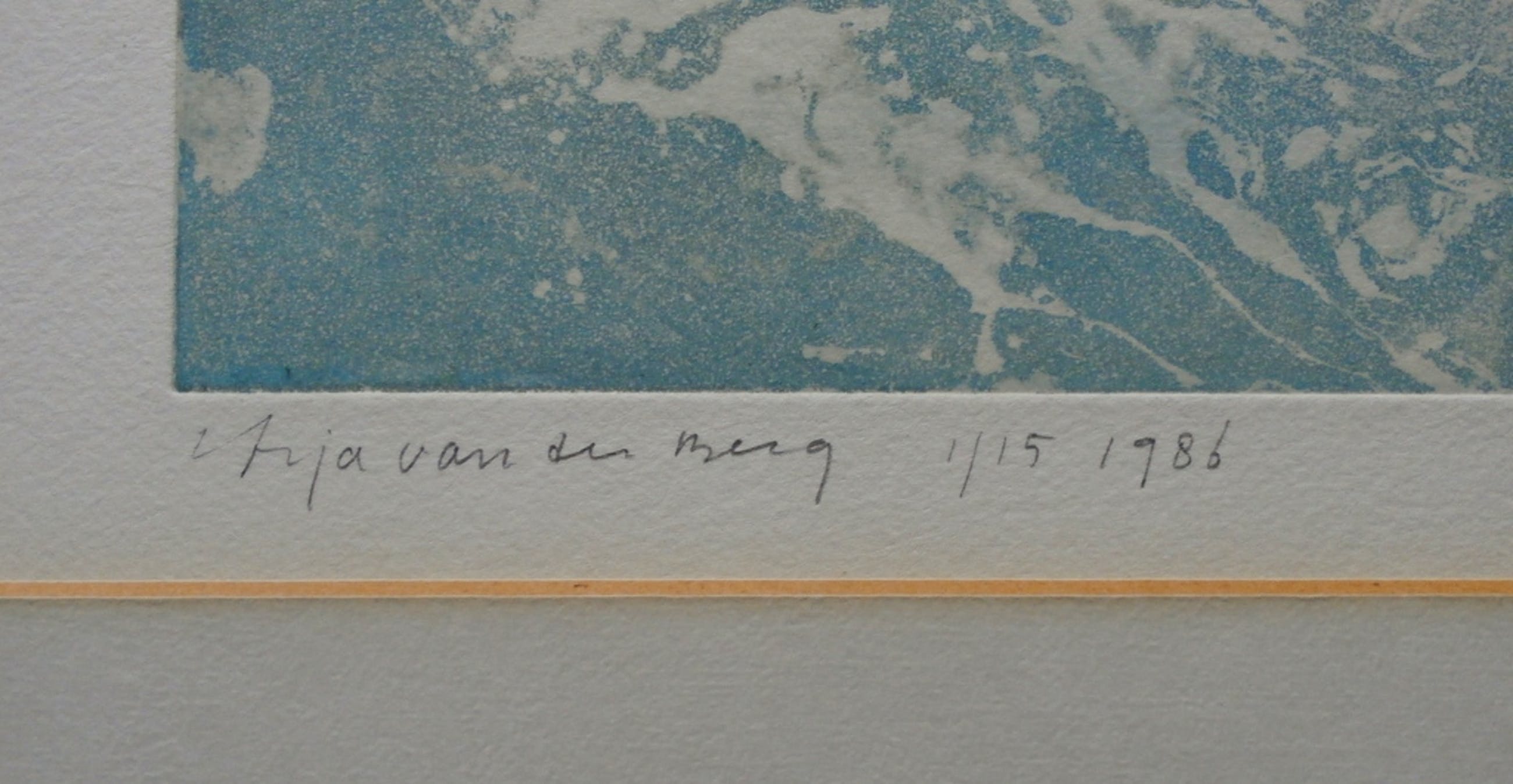 Mooie ets van Arja van den Berg. Titel: Kers. Jaar: 1986. Nummer: 1/15. Afmetingen incl. passe-partout20: H45 x b40 cm. Afmetingen voorstelling: H20 x b20 cm. Linksonder met potlood gesigneerd door de kunstenaar. Herkomst: collectie ABN AMRO.