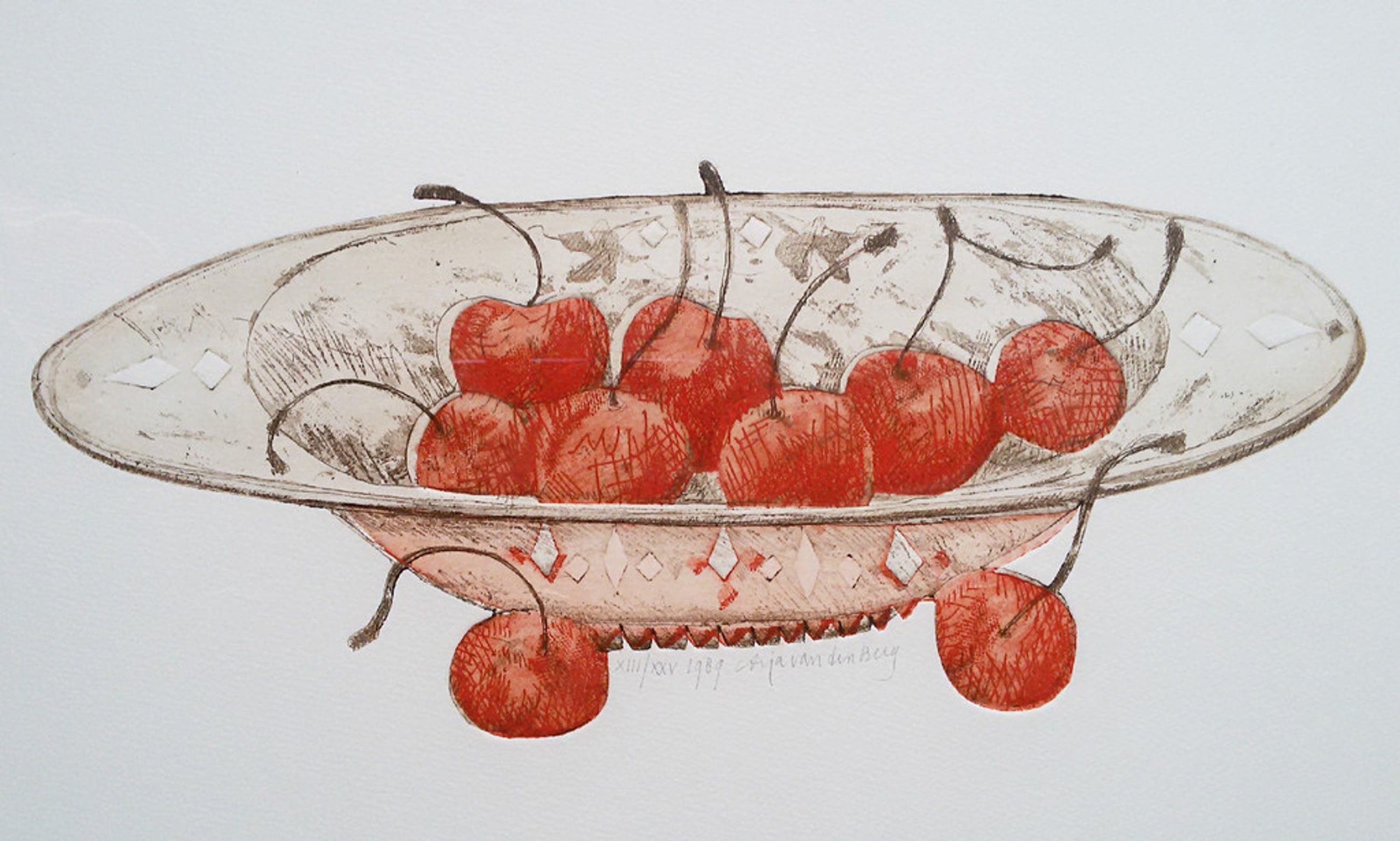 Zeer mooie ets van Arja van den Berg. Met potlood gesigneerd, gedateerd (1989) en genummerd (XIII/XXV = 13/25). Prachtig ingelijst, achter glas en smetteloos passe-partout. In mint conditie. Afkomstig uit de kunstcollectie van MeesPierson (later overgegaan in ABNAMRO).