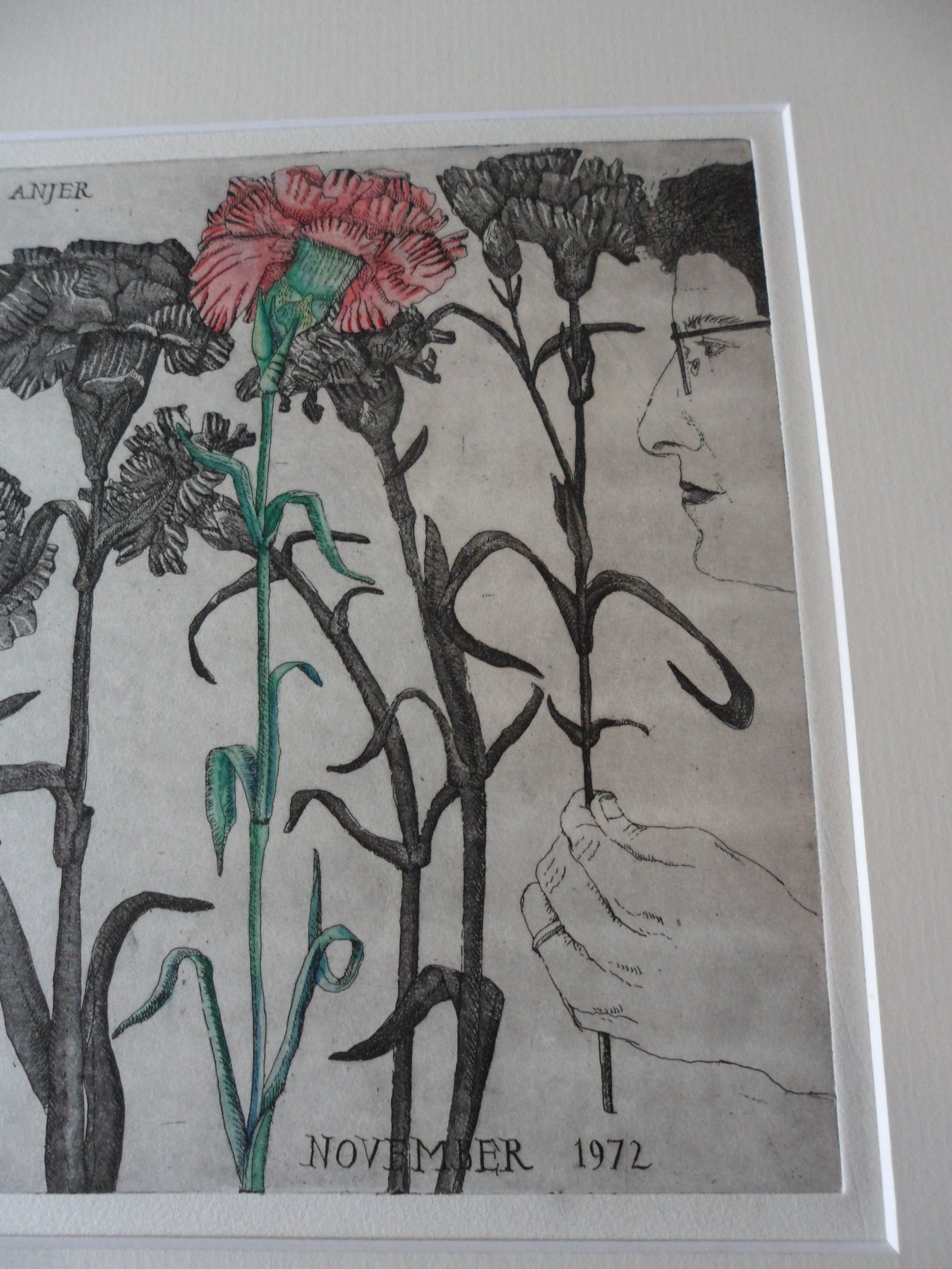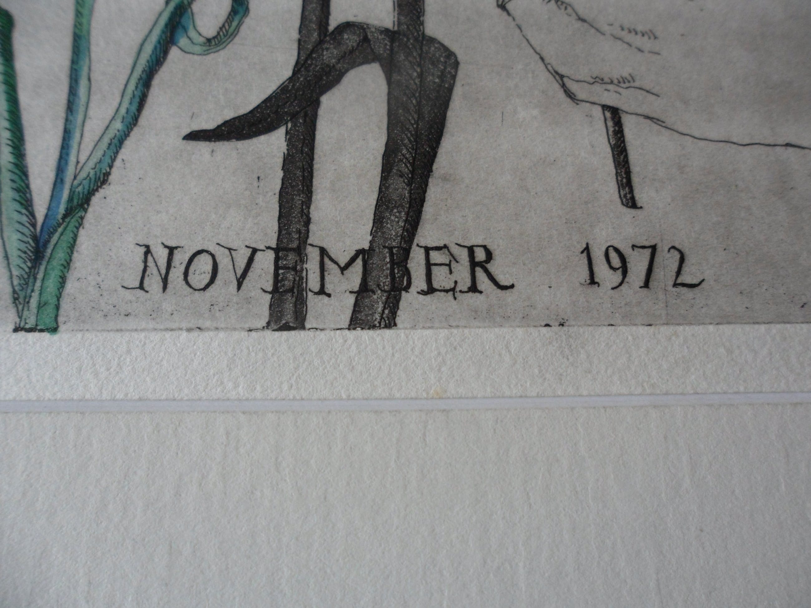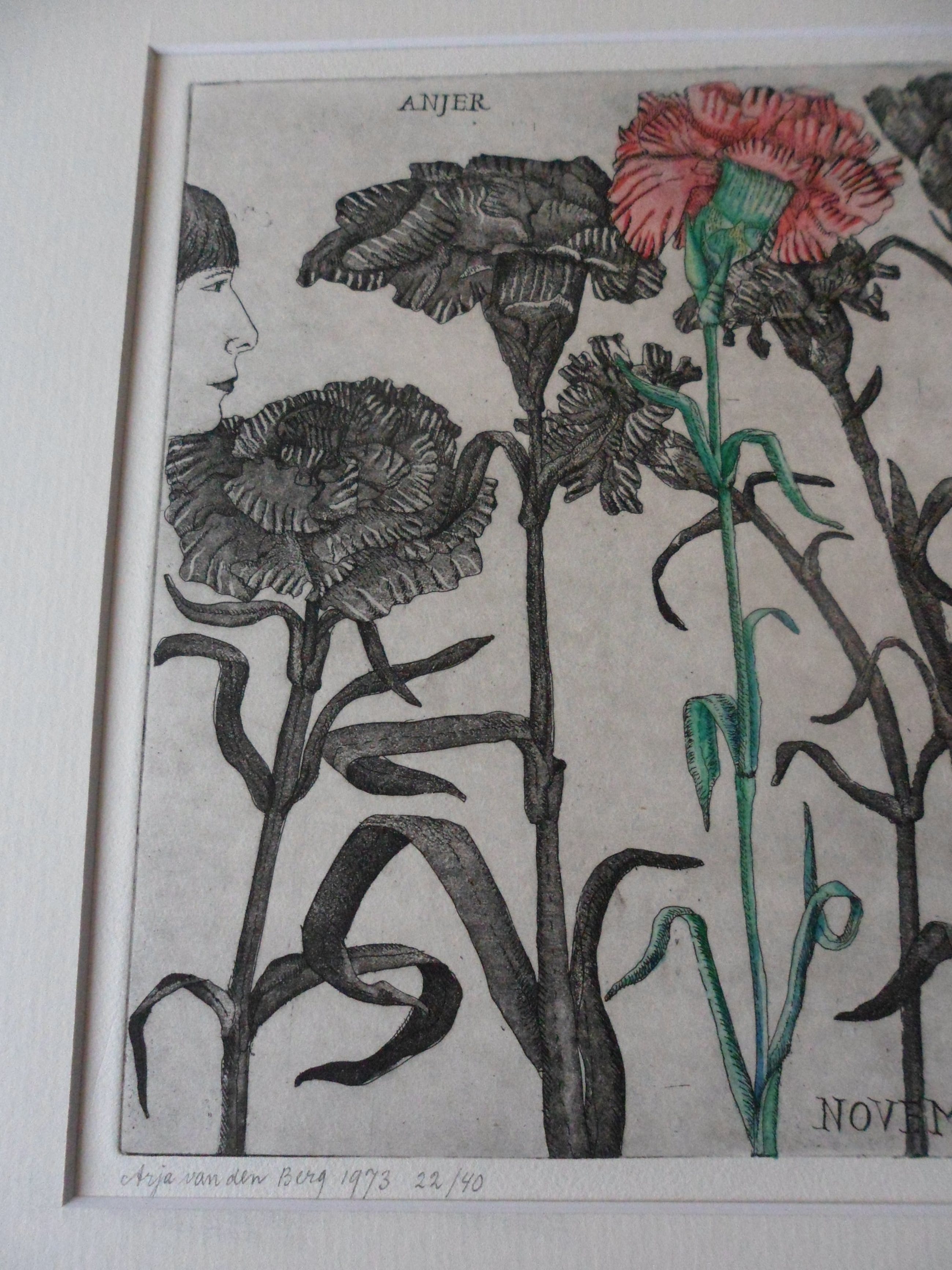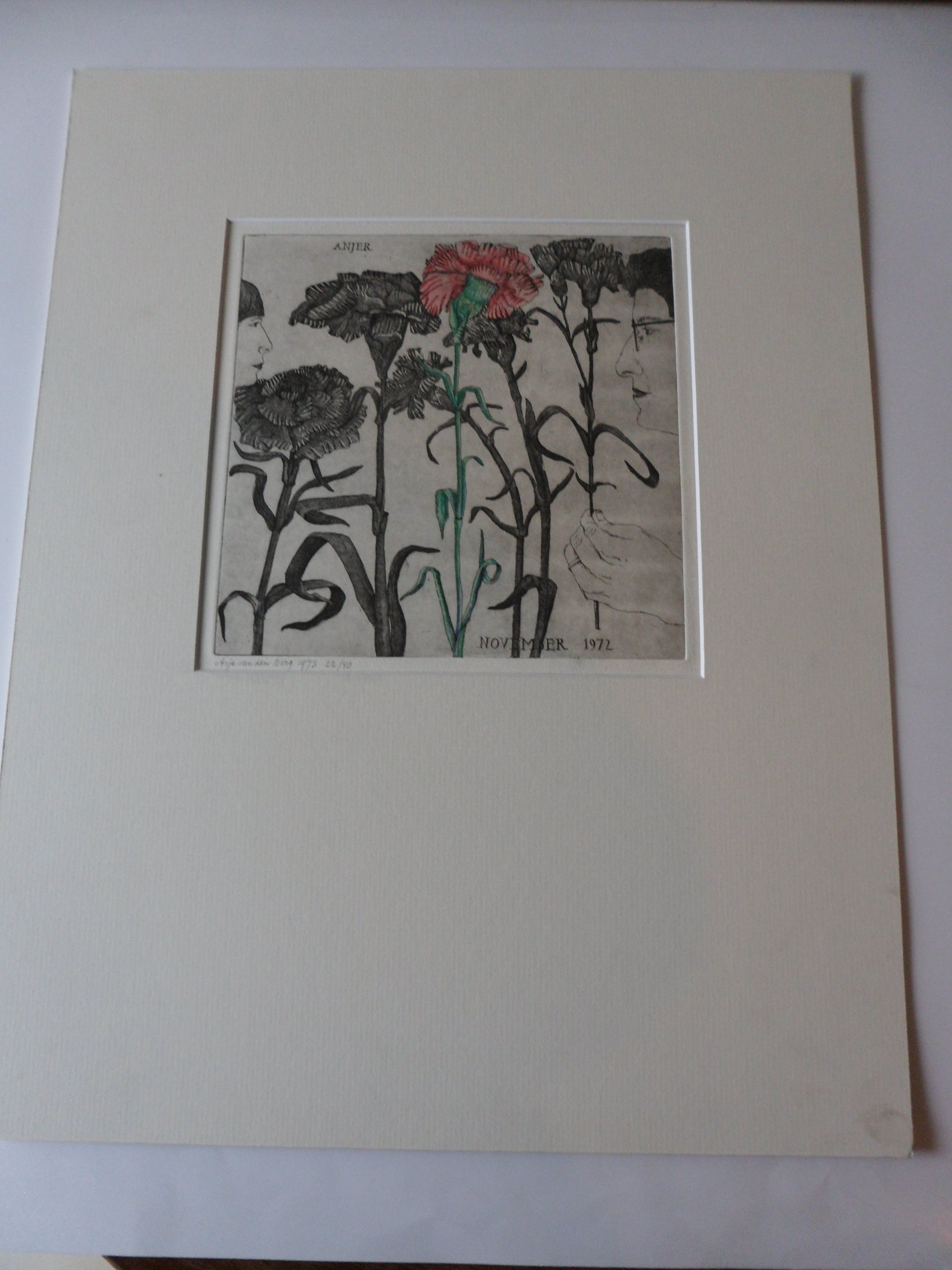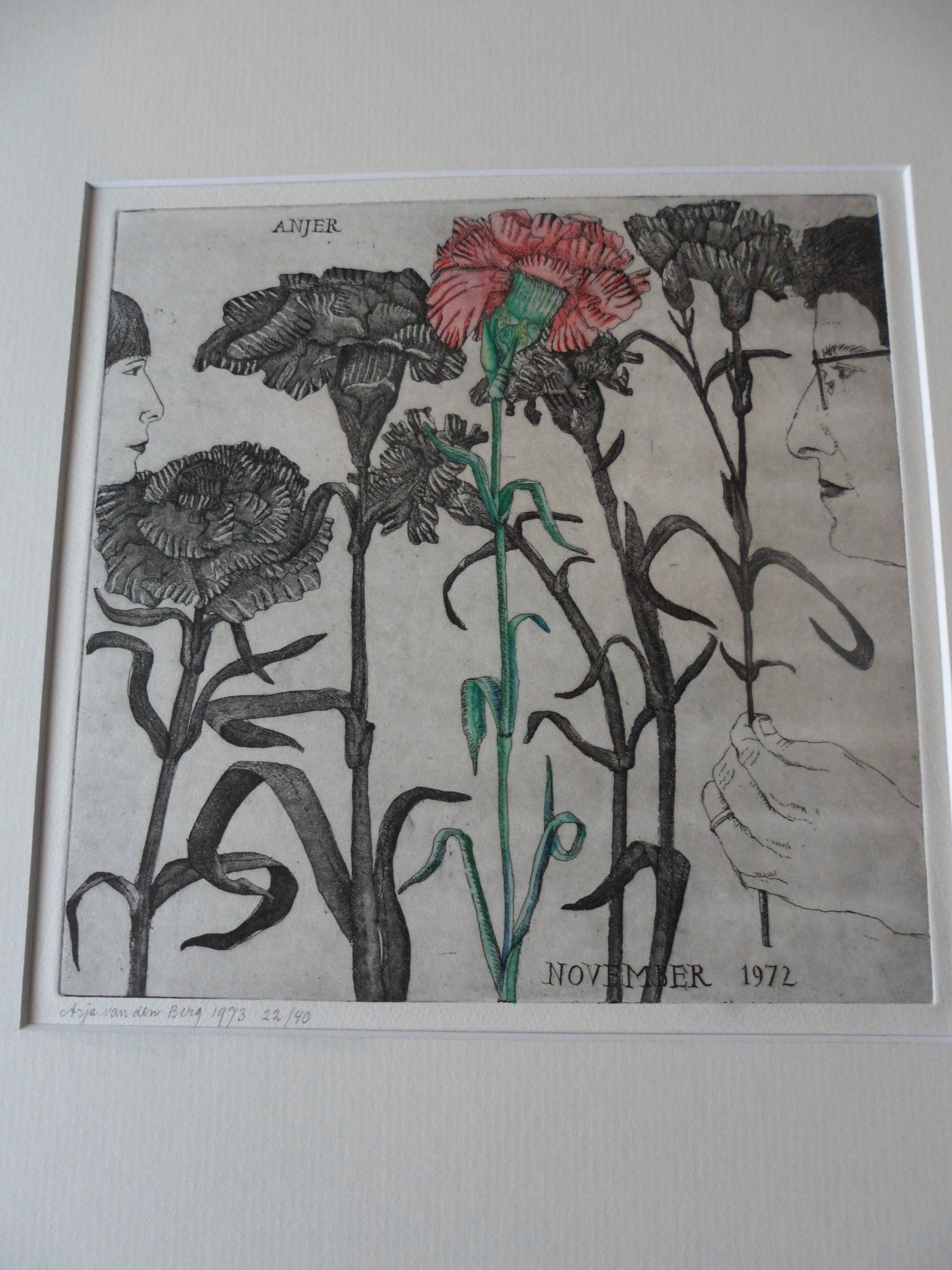 Bijzondere ets hand ingekleurd door Arja van den berg waardoor iedere ets uniek is. Kleine oplage en uitstekende conditie