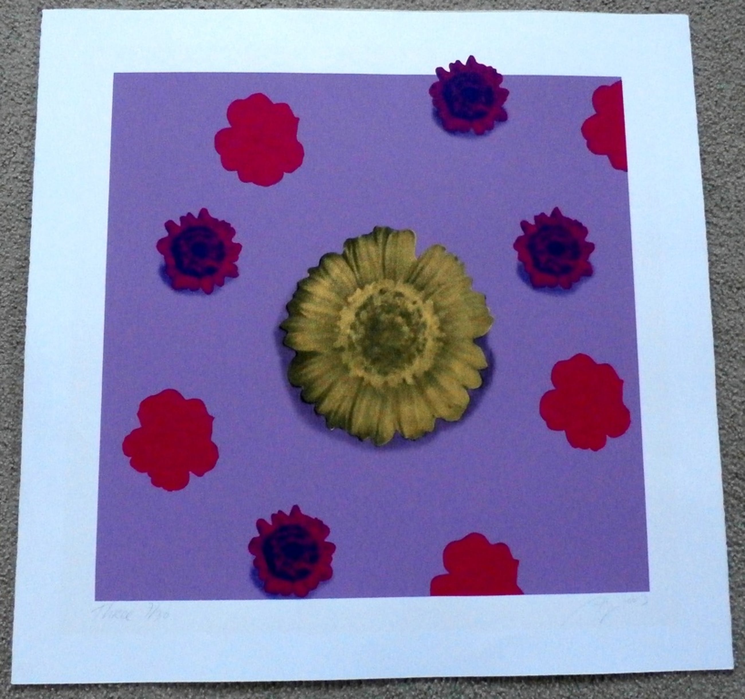 Mooie zeefdruk van Arjen van Arendonk uit 2003. Titel: Floating Flowers three. Nummer: 7/30. Afmetingen blad: H70 x b70 cm. Afmetingen voorstelling: H55 x b55 cm. Het werk is rechtsonder met potlood gesigneerd door de kunstenaar. De kleuren van het werk zijn in werkelijkheid veel helderder. Herkomst: collectie ABN AMRO. De authenciteit van dit werk wordt voor 100% gegarandeerd. Een certificaat kan, op aanvraag, worden meegeleverd.