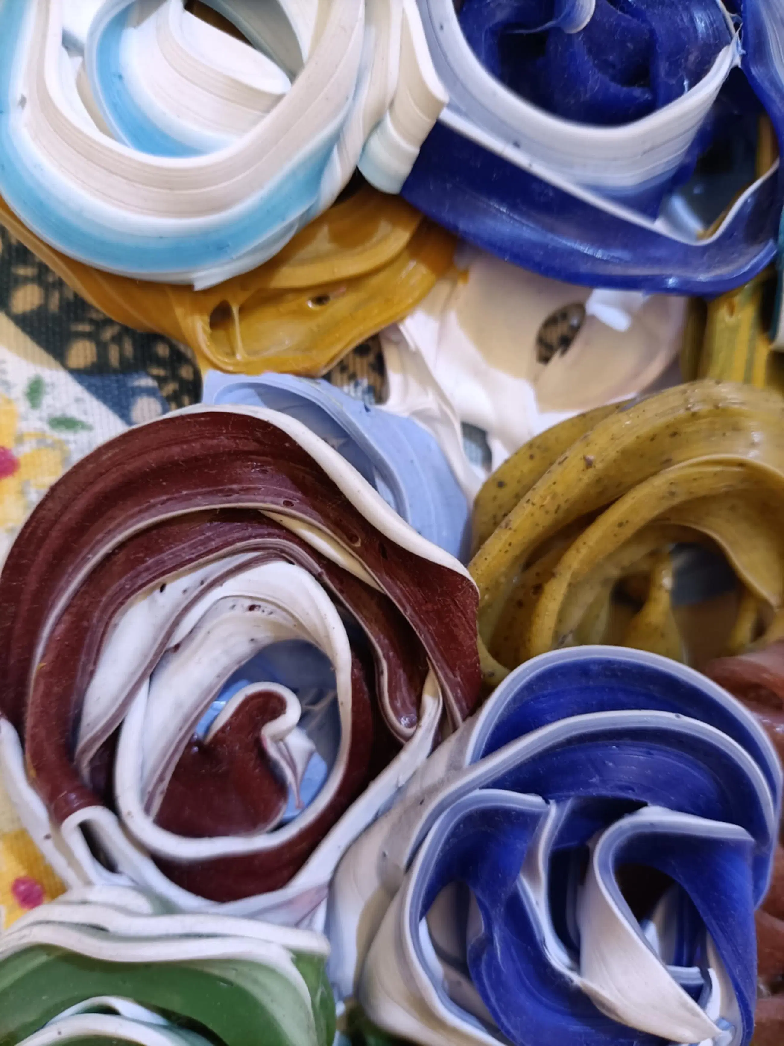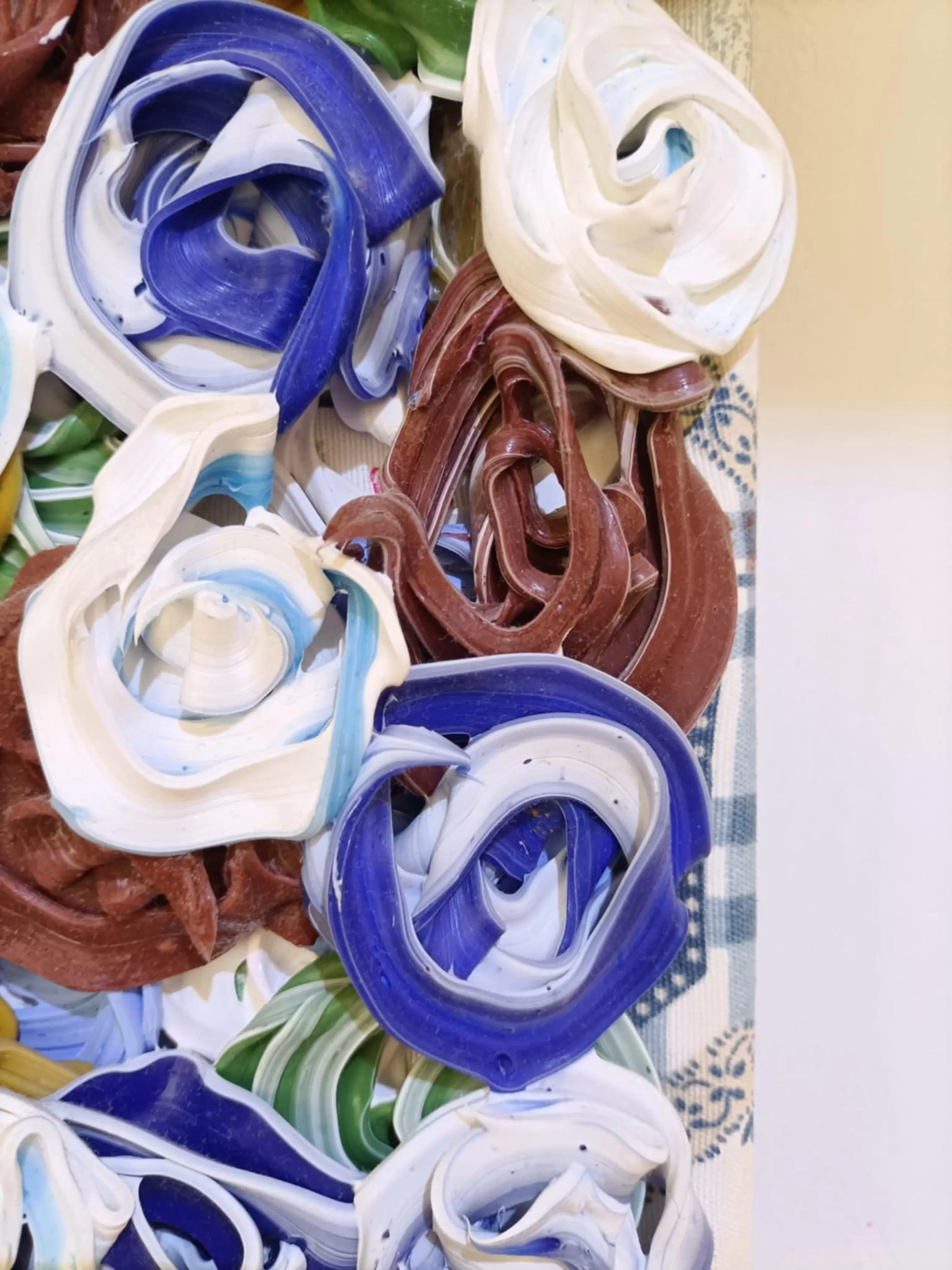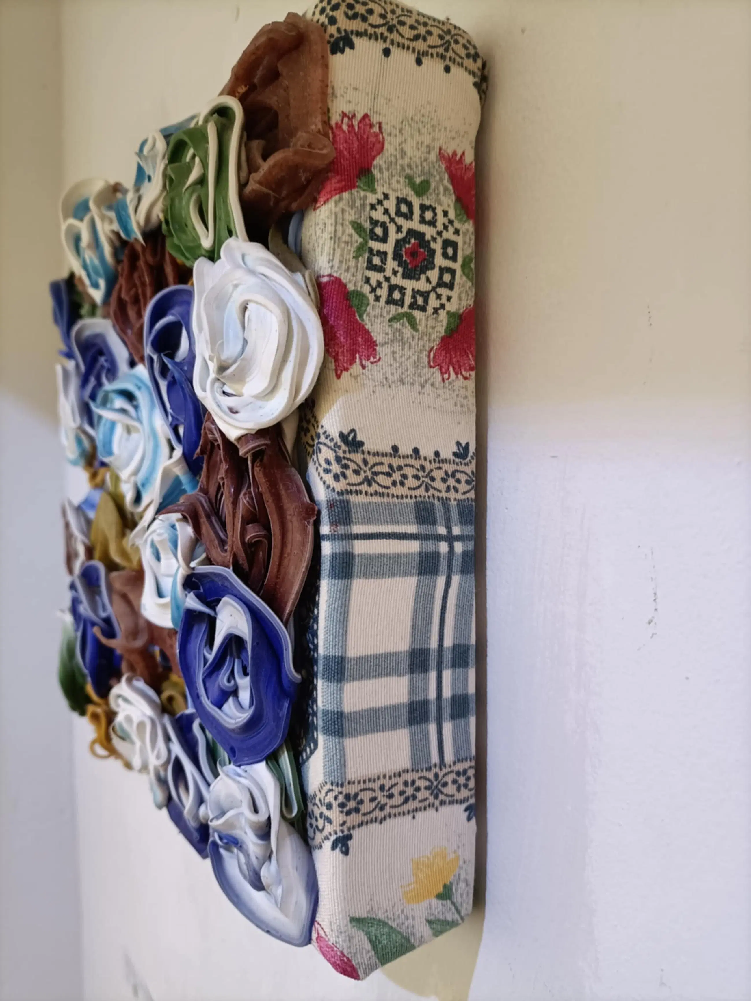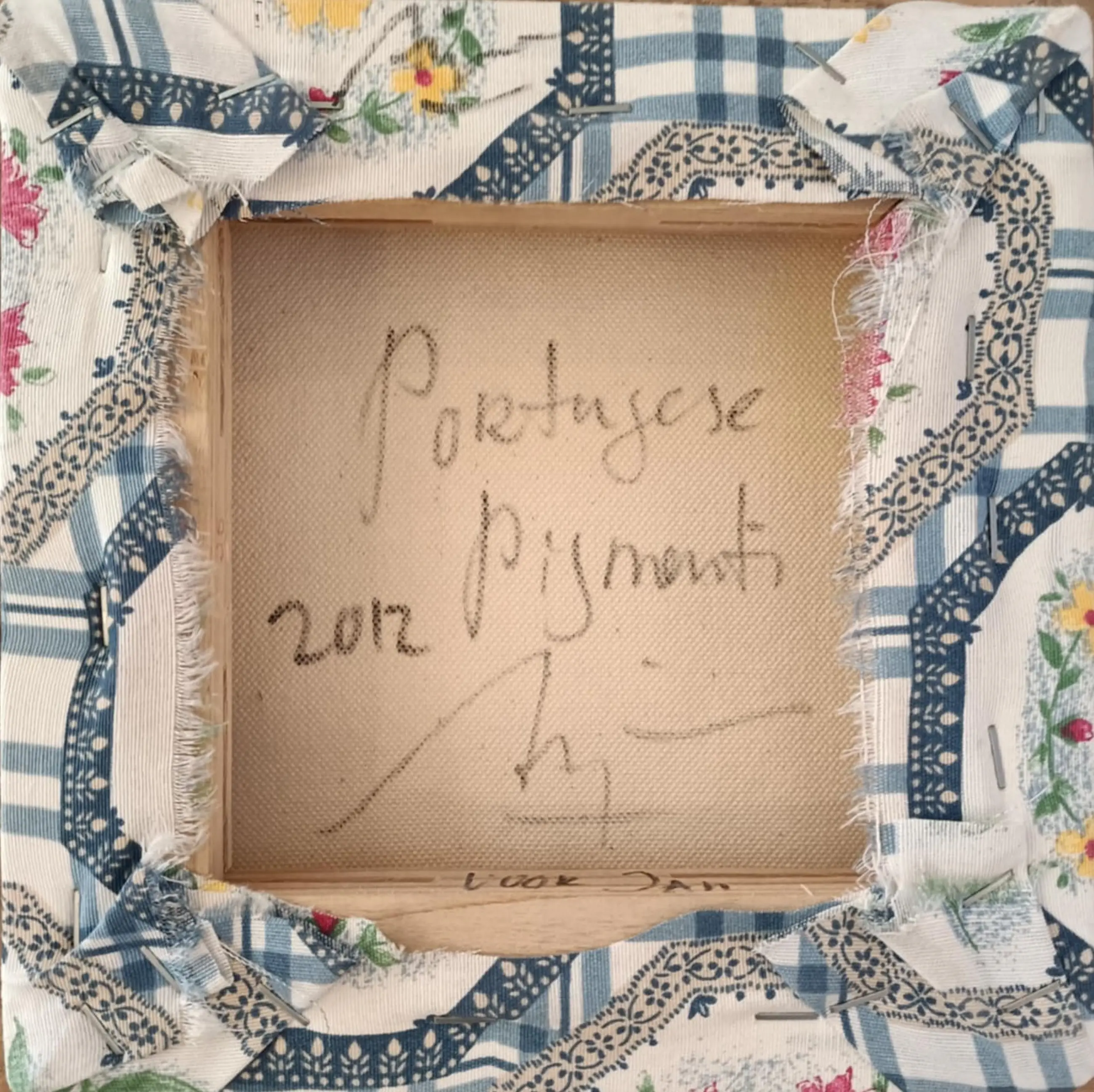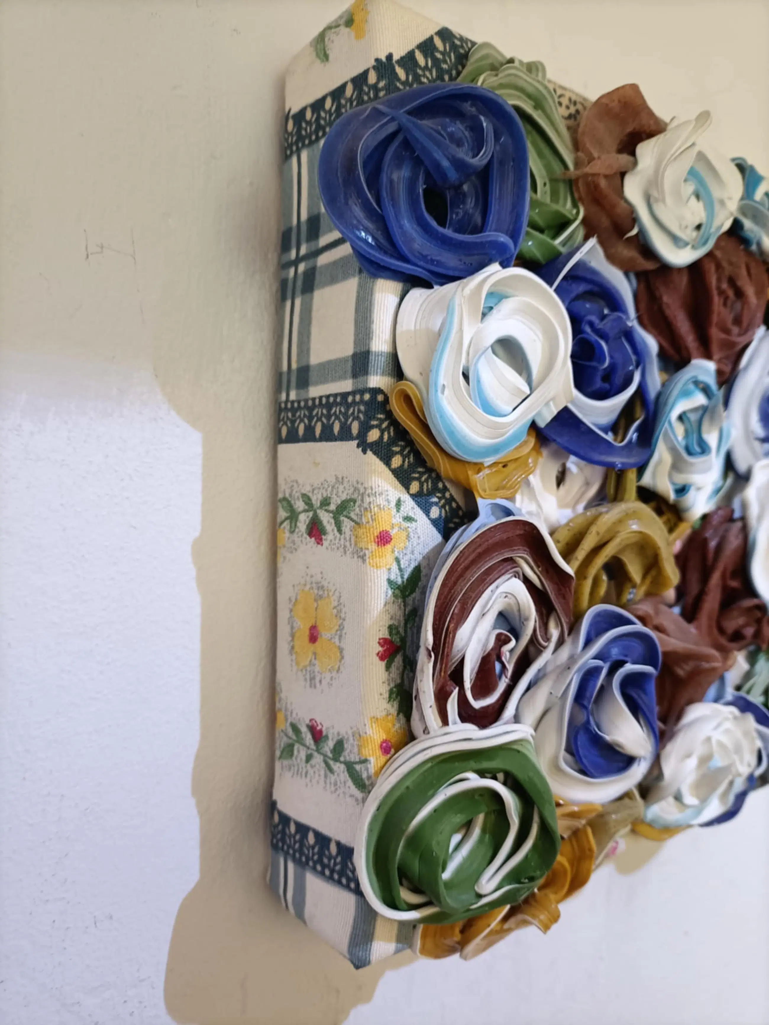 Het kunstwerk bestaat uit een relieflaag gemaakt van pigment en acrylaat kit op een ondergrond van textiel op canvas. Op achterzijde gesigneerd, gedateerd en voorzien van een titel.