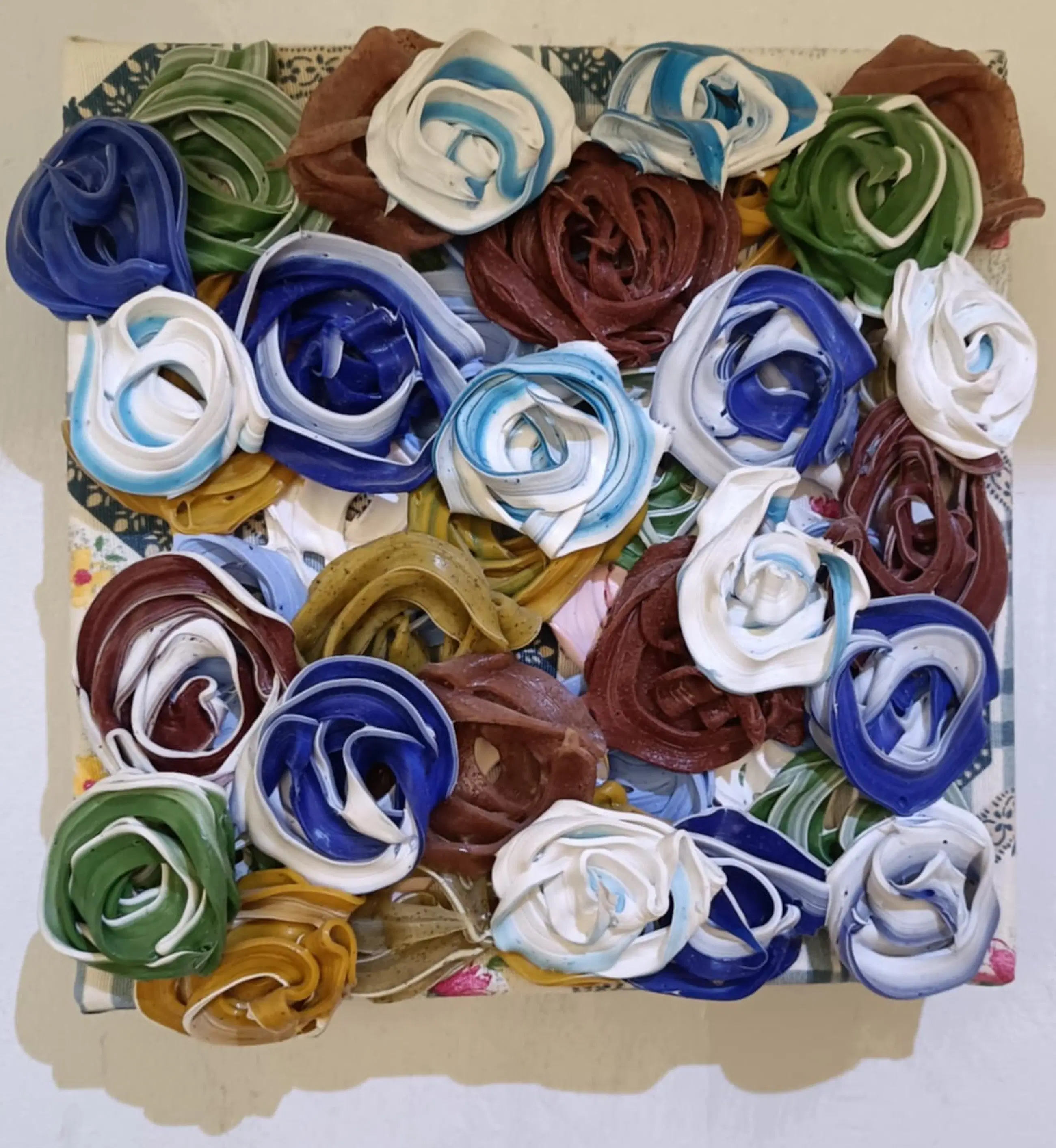 Het werk is 20 x 20 x 6 cm