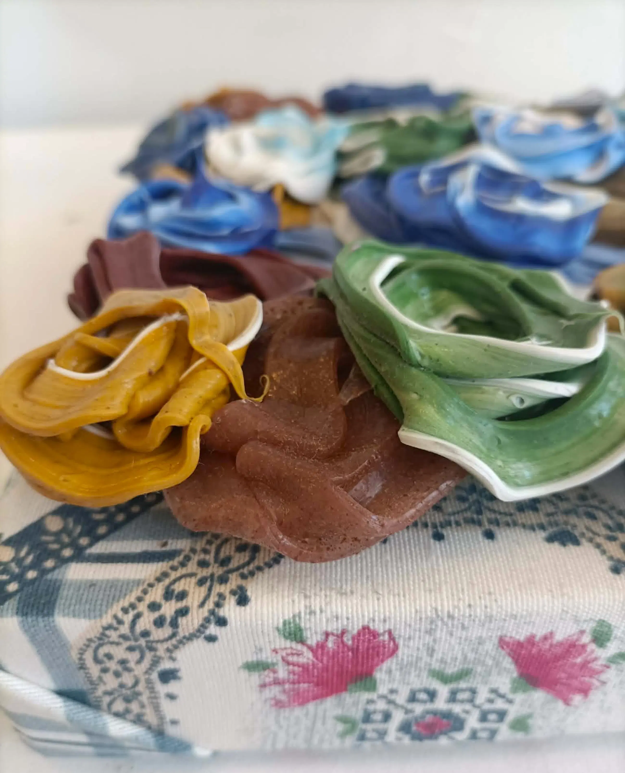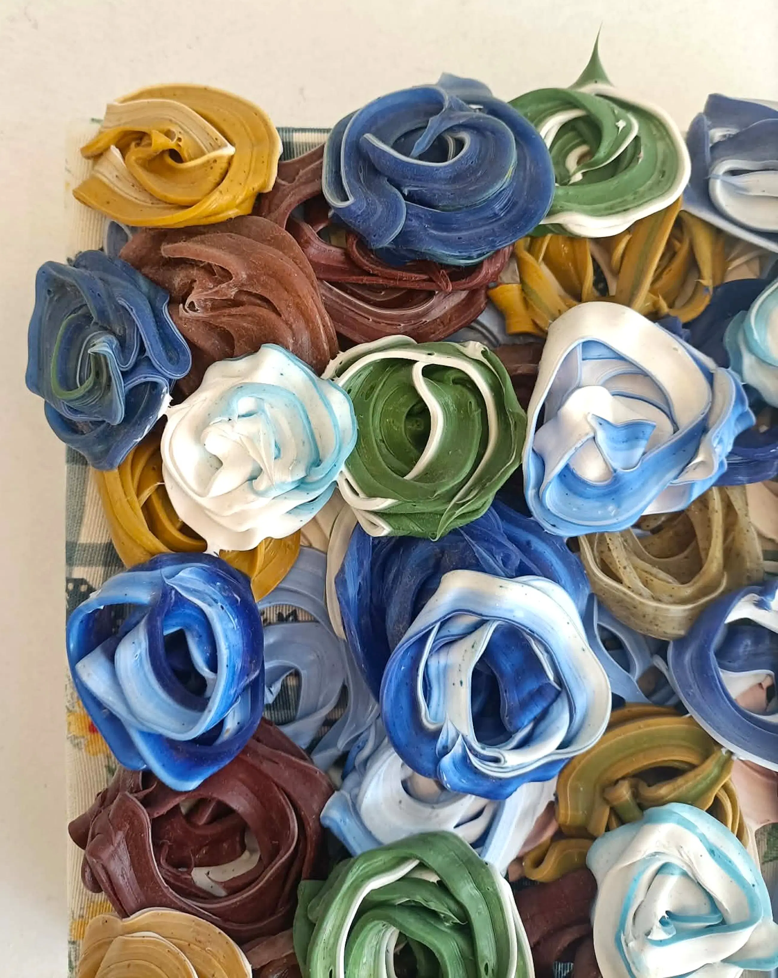 Het kunstwerk bestaat uit een relieflaag gemaakt van pigment en acrylaat kit op een ondergrond van textiel op canvas. Op achterzijde gesigneerd, gedateerd en voorzien van een titel.