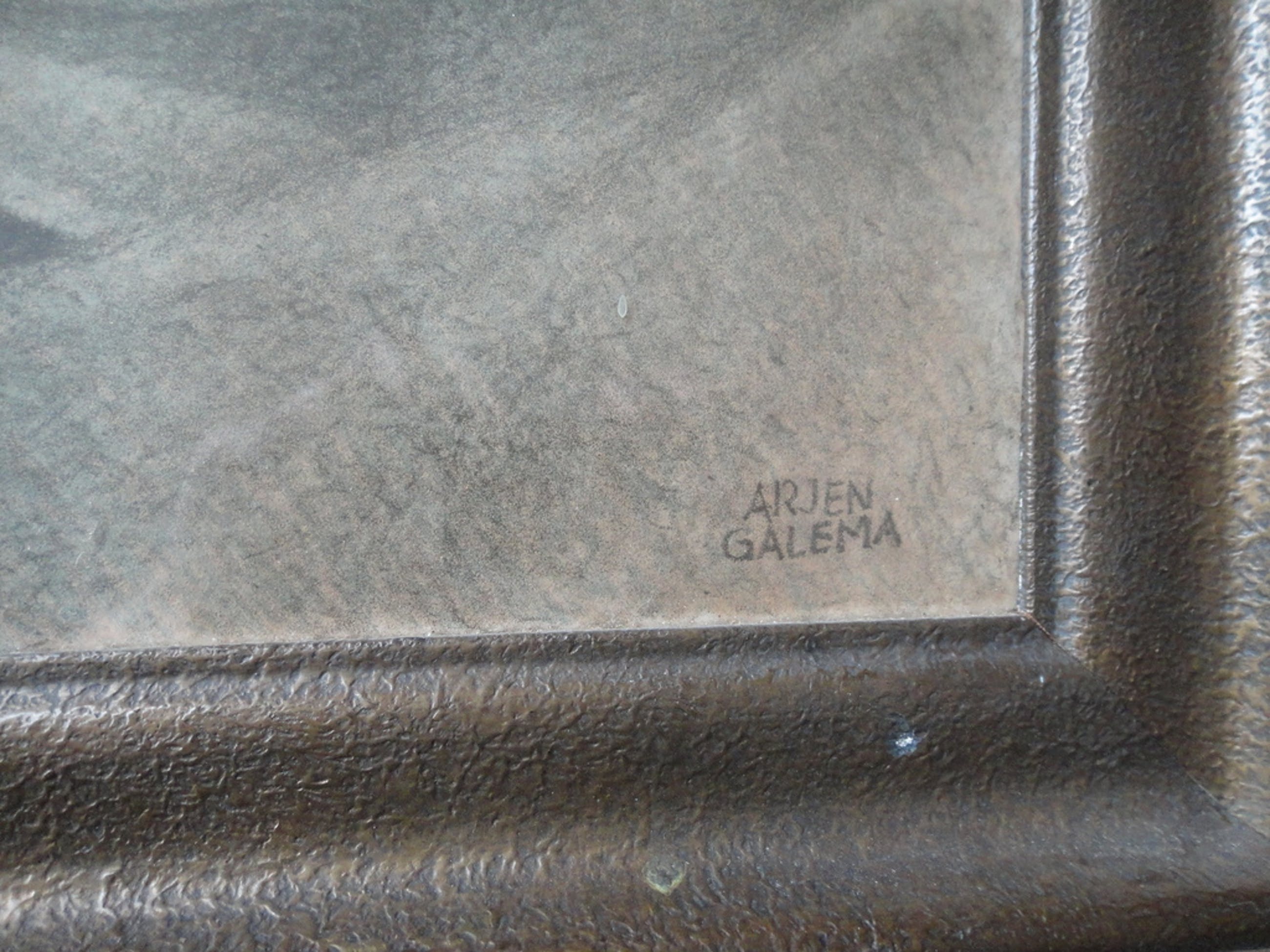 De Amsterdamse schilder Arjen Galema was een leerling van Georg Rueter, door wiens enigszins omfloerst impressionisme hij sterk werd beïnvloed. Hij schilderde landschappen, bloemstillevens, goed getypeerde portretten en figuren en genrestukken. Daarin doen zijn figuren zich doorgaans voor als warm getinte silhouetten zonder nauwkeurige uitwerking van details. Galema reisde veel naar Spanje en woonde en werkte tussen 1918 en 1925 in Parijs.