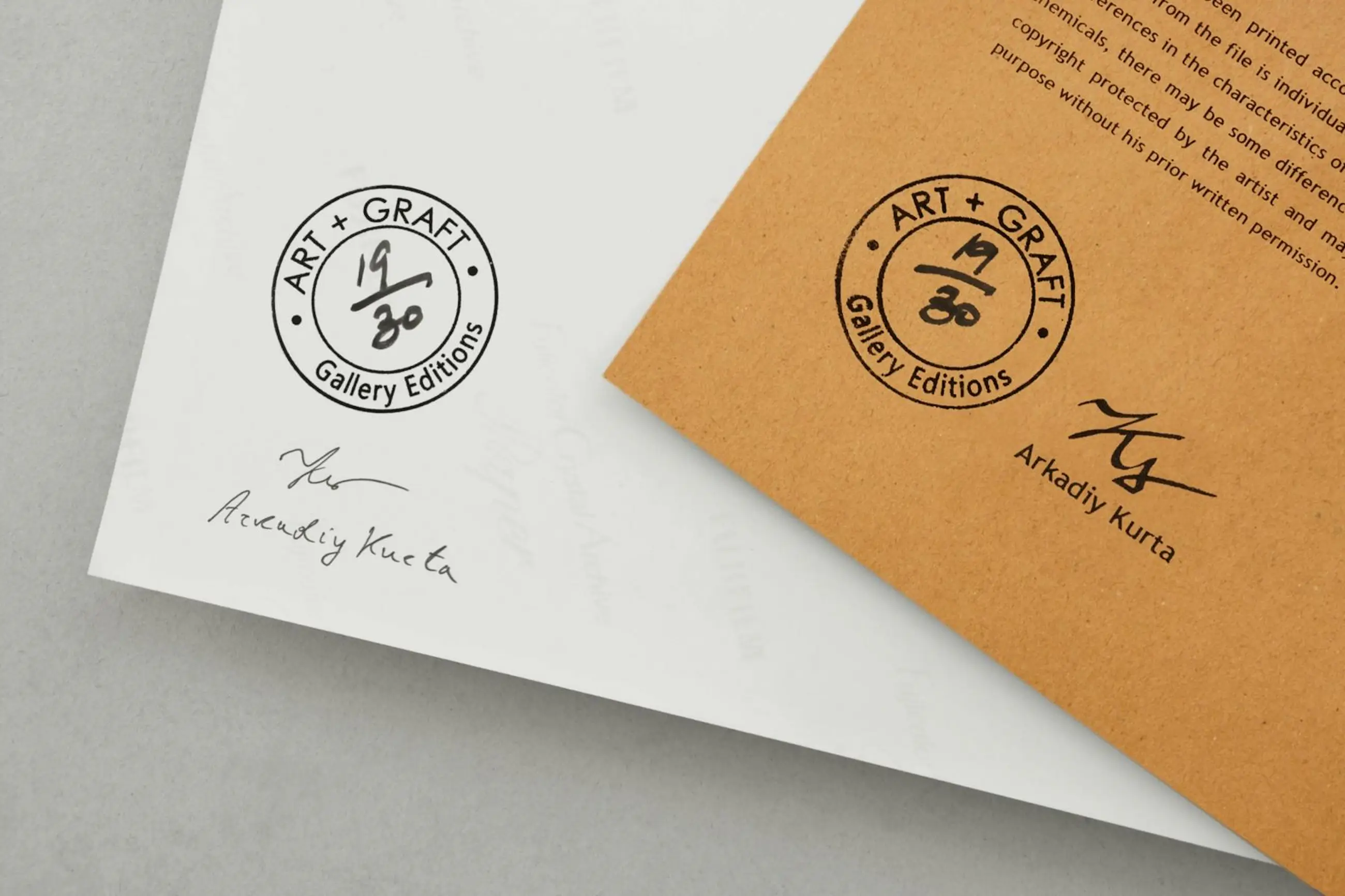 ● Handtekening van de kunstenaar op het label op de achterzijde ● Genummerde galerijstempel op de achterzijde ● Ondertekend certificaat van echtheid van de afdruk