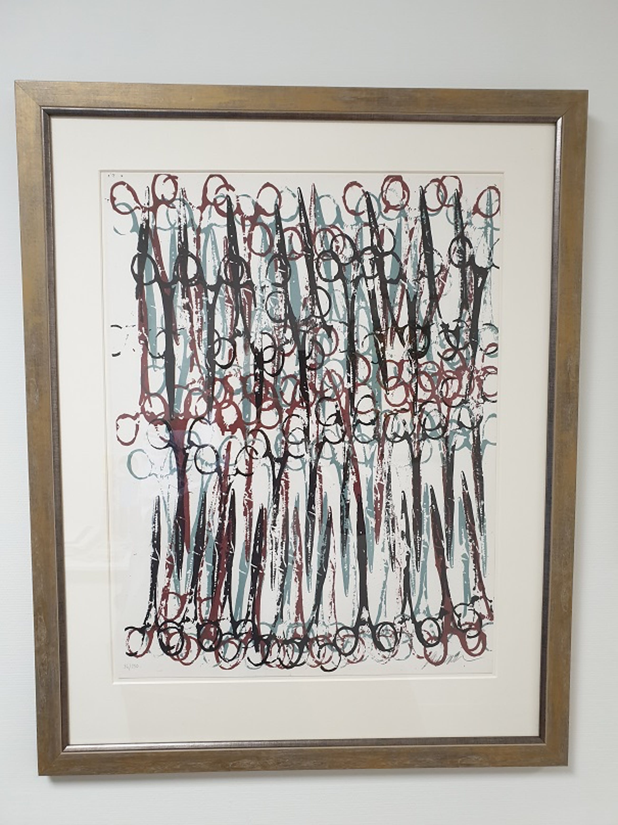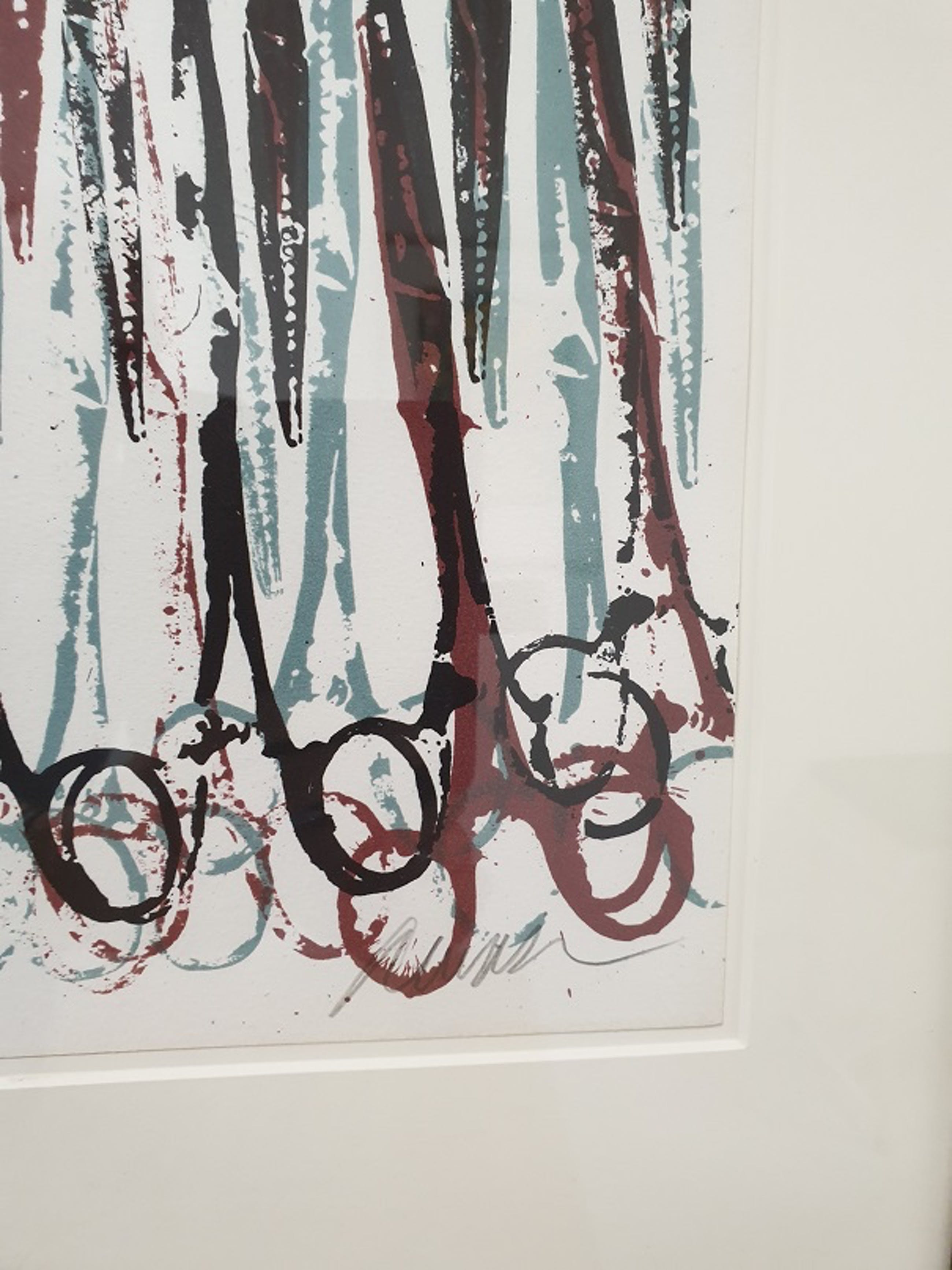 Litho van Arman uit 1977. Het werk is gedrukt op Arches papier en meet 56 x 43 cm. Met lijst 76 x 60 cm. Afgebeeld zijn medische instrumenten (serie "Doctors Special") , in dit geval ziekenhuisscharen. Genummerd 36/250. Het werk is gedocumenteerd (afgebeeld en beschreven) in de Overzichtscatalogus met al het grafische werk van Arman. Wordt aangetekend verstuurd zonder de glasplaat! Afhalen heeft de voorkeur (met glasplaat uiteraard)