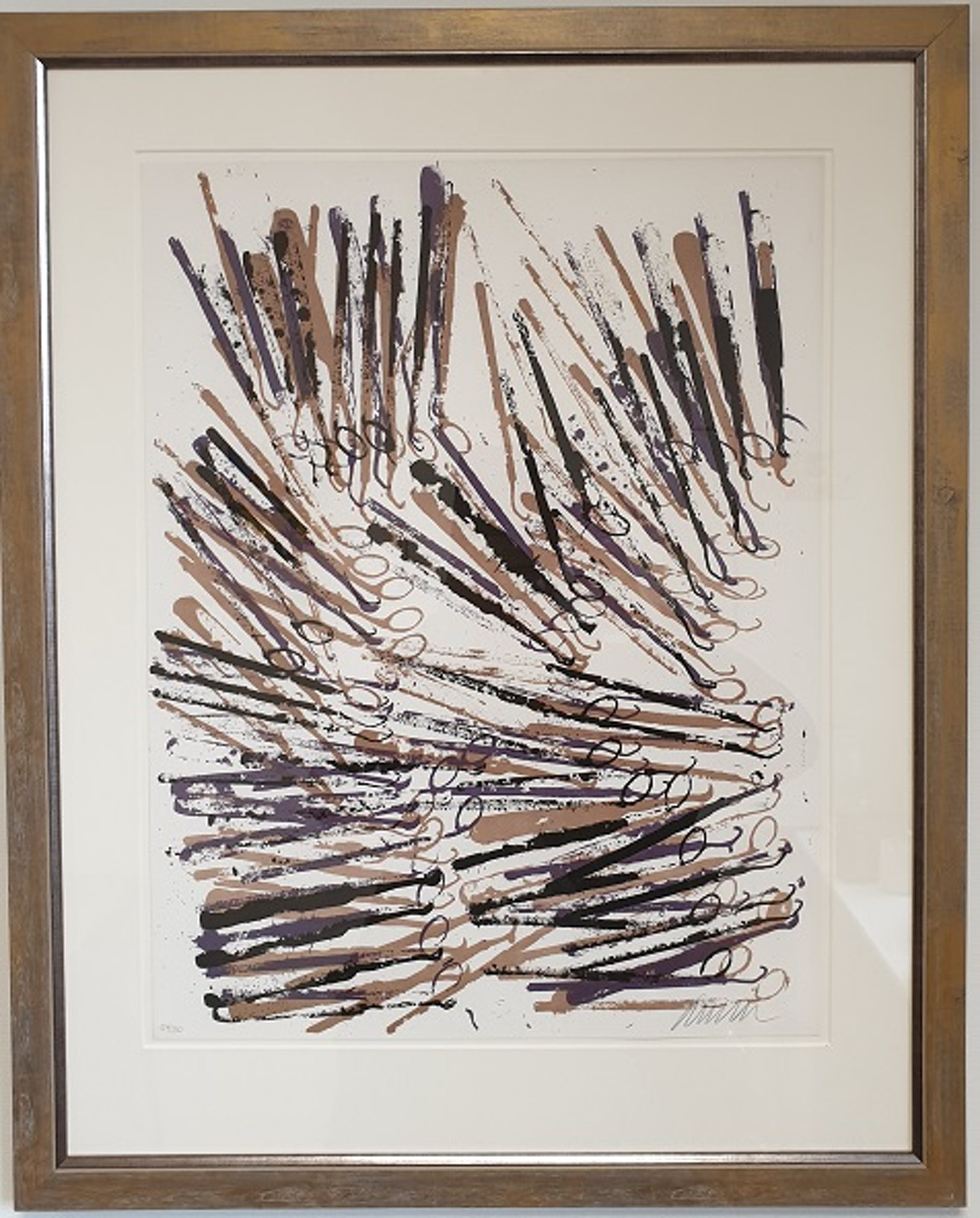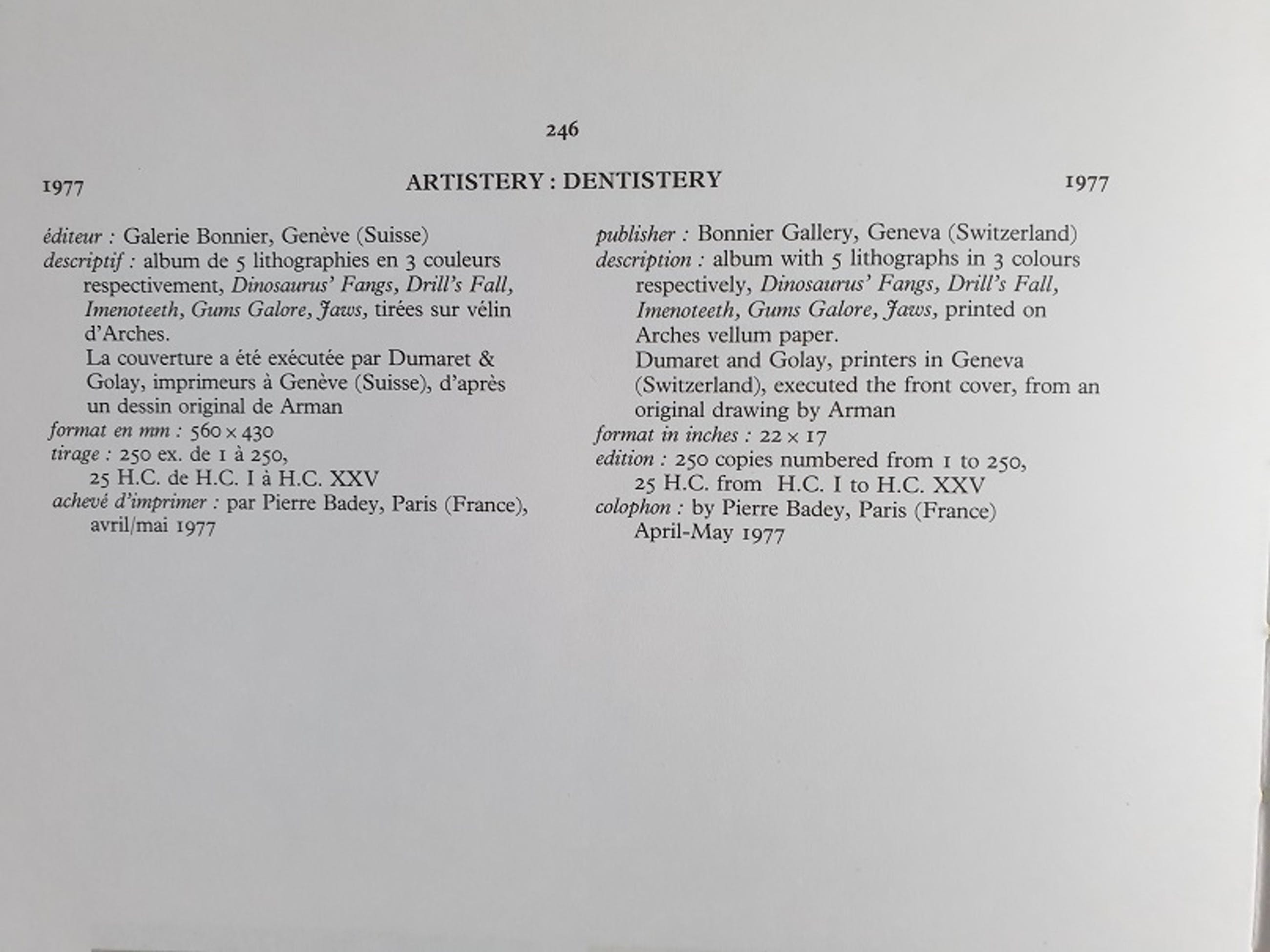 Litho van Arman uit 1977. Het werk is gedrukt op Arches papier en meet 56 x 43 cm. Met lijst 76 x 60 cm. Afgebeeld zijn Tandarts instrumenten (serie "Artistery- Dentistery") , in dit geval spiegeltje en "peuterhaak". Genummerd 124/250. Het werk is gedocumenteerd (afgebeeld en beschreven) in de Overzichtscatalogus met al het grafische werk van Arman. Wordt aangetekend verstuurd zonder de glasplaat! Afhalen heeft de voorkeur (met glasplaat uiteraard)