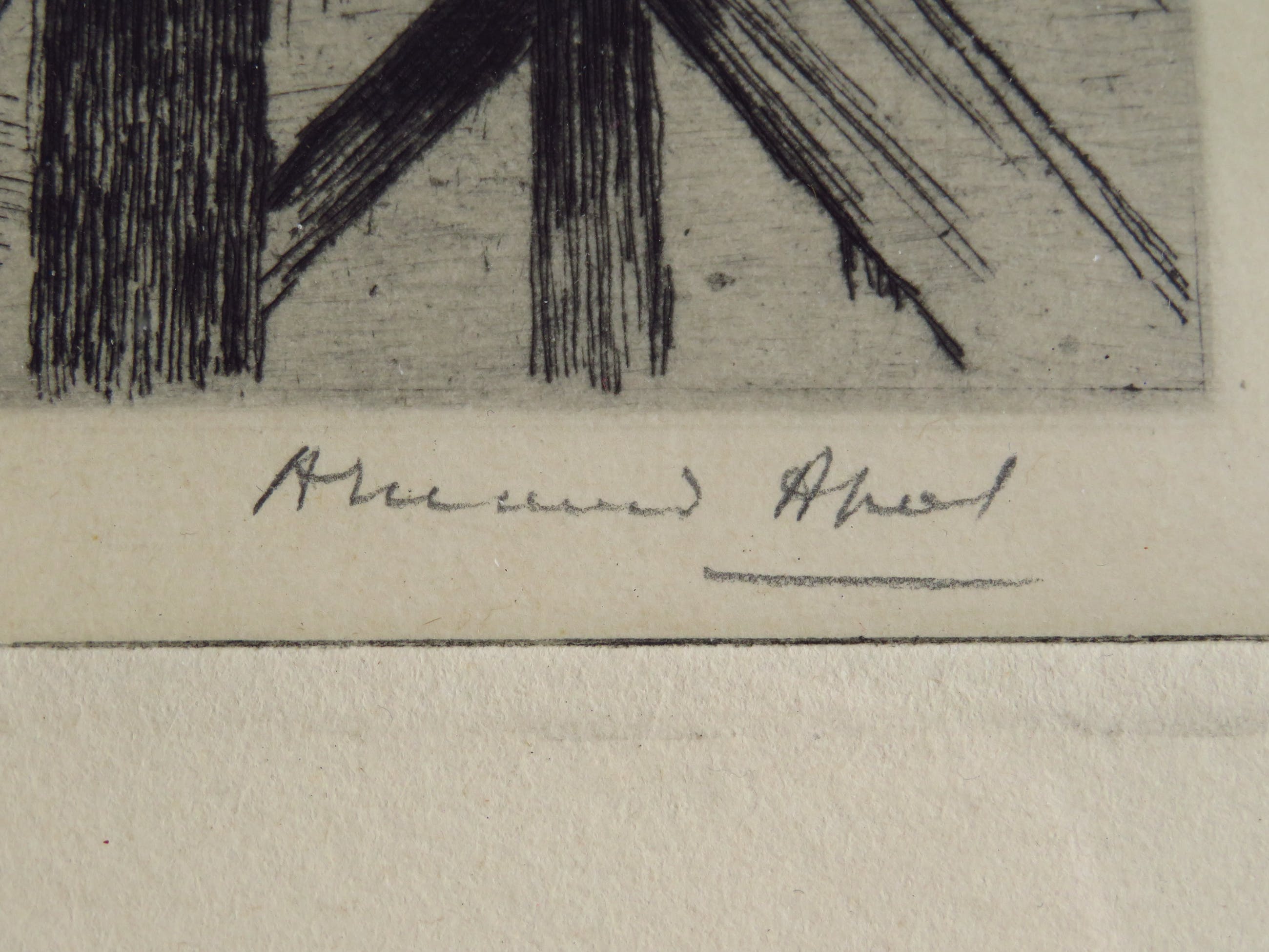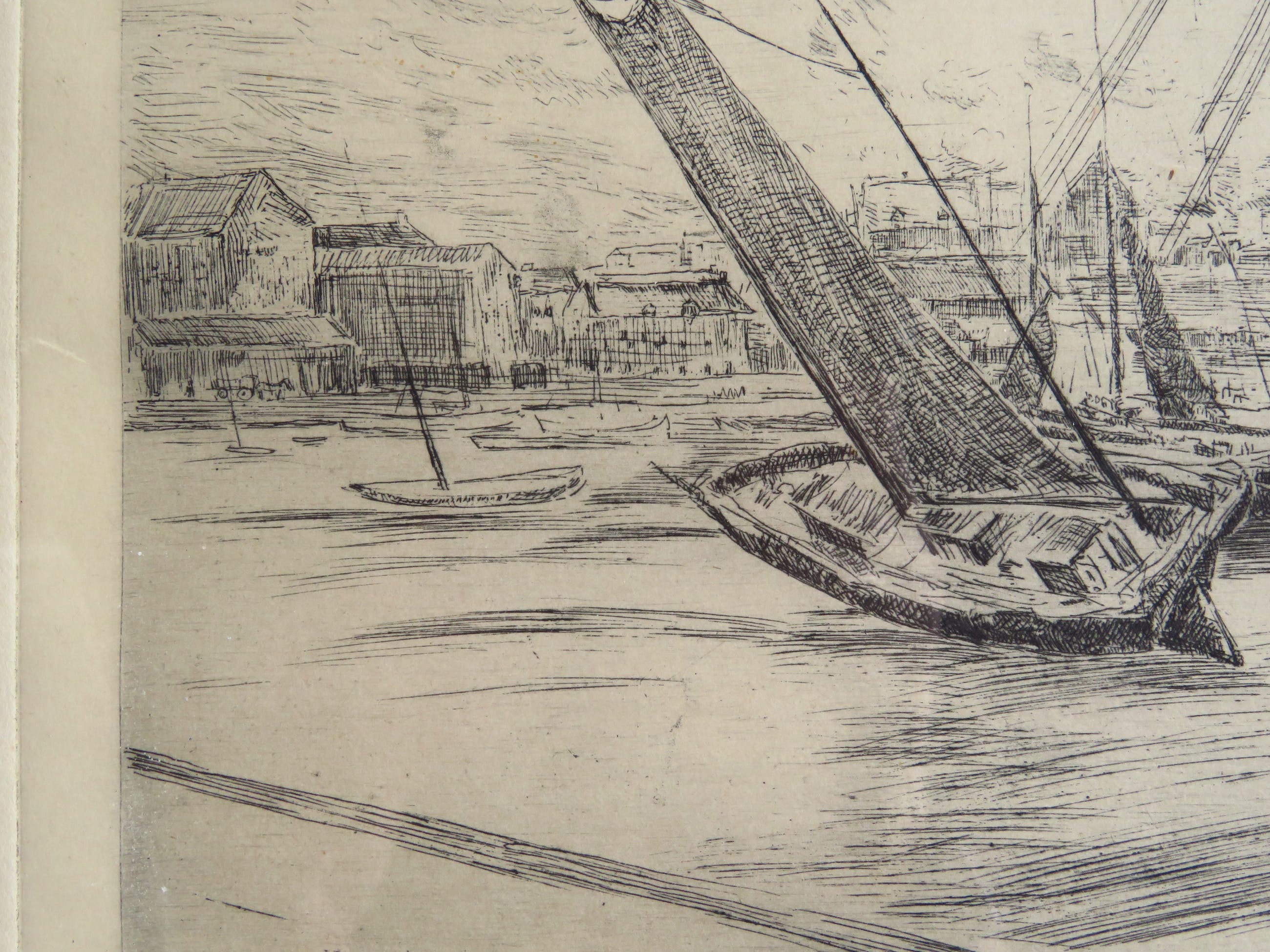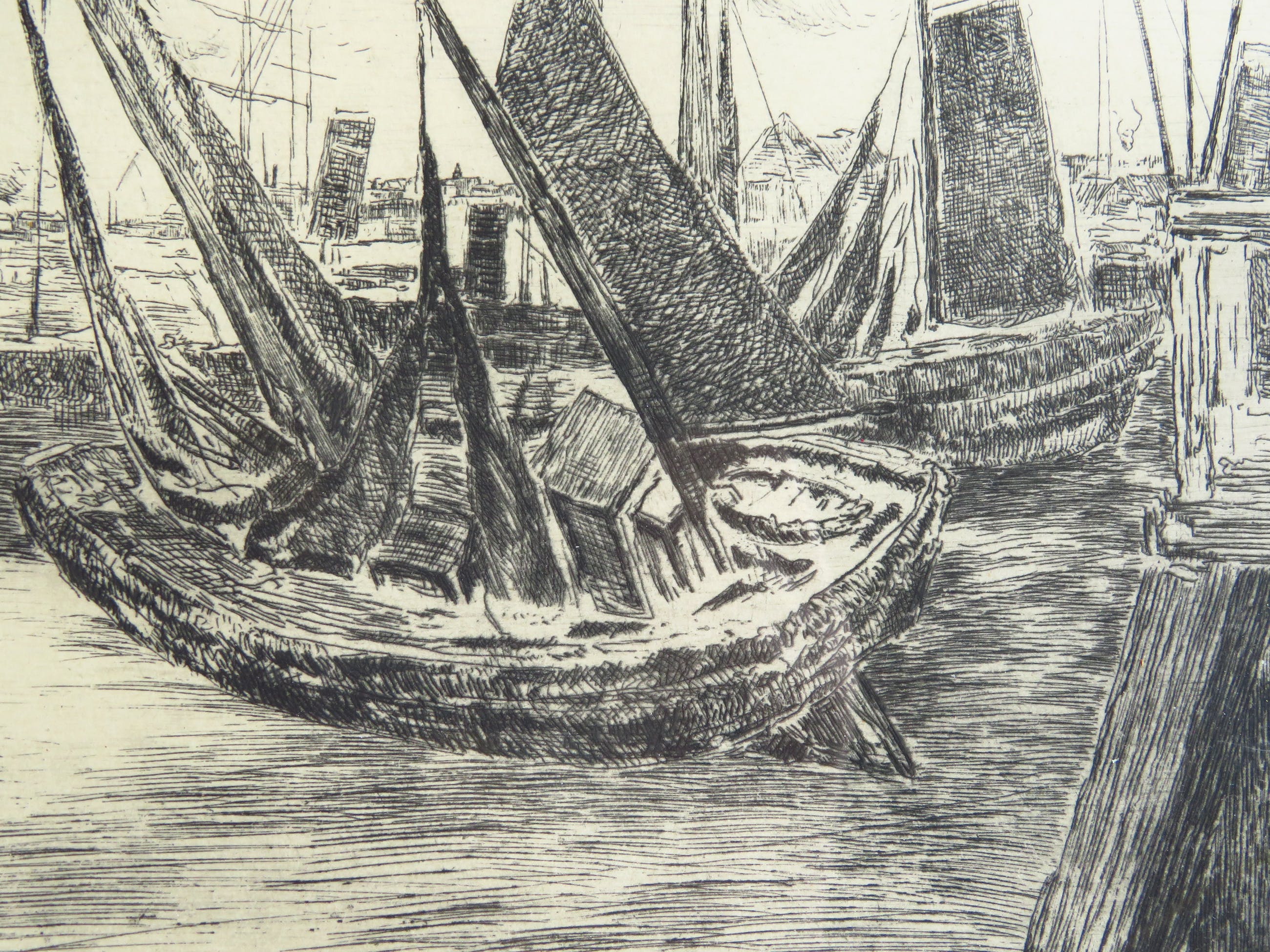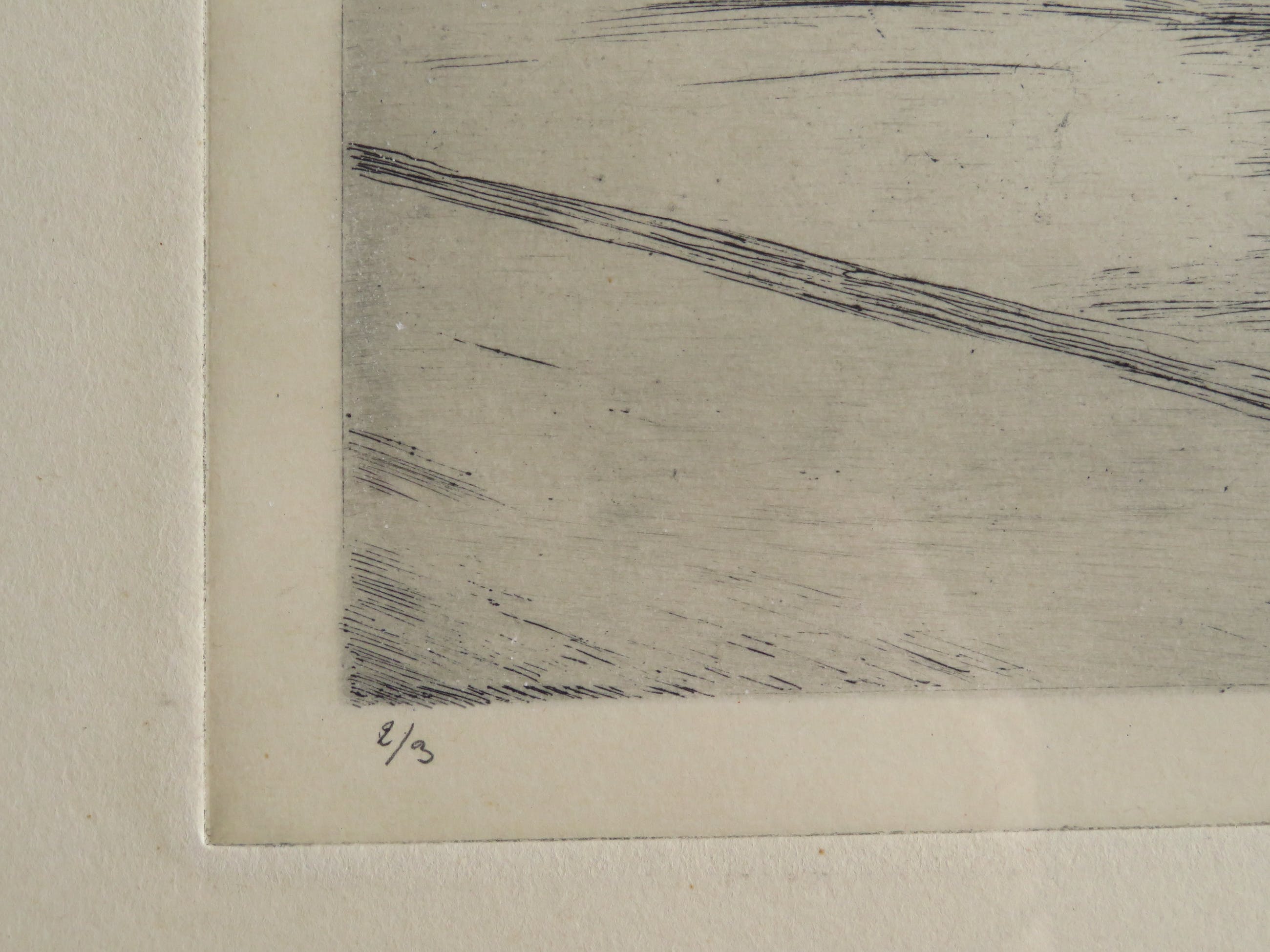 De ets is in zeer goede staat. Kleine kreuk op links in de rand (zie foto). Lijst heeft gebruikssporen.