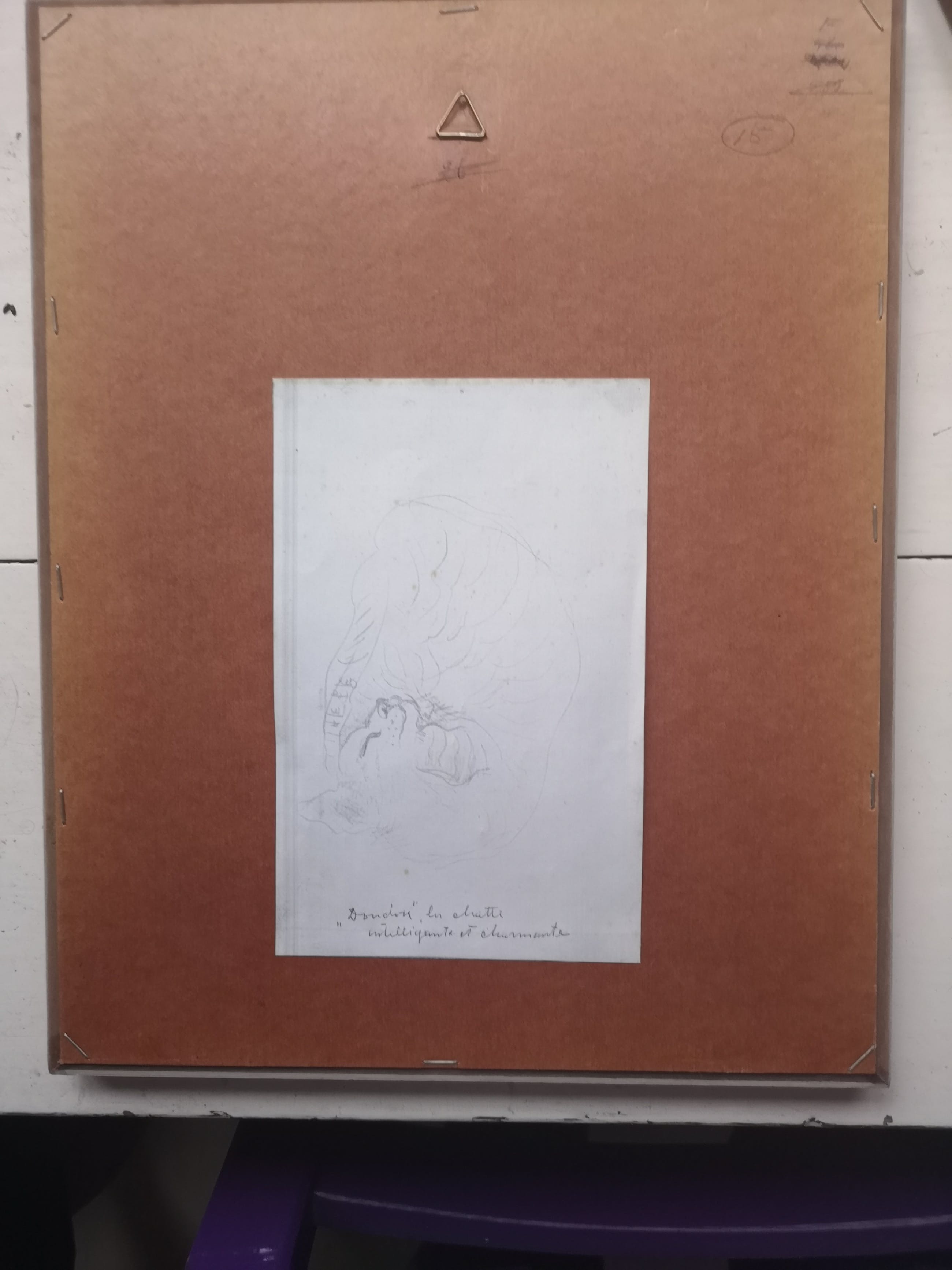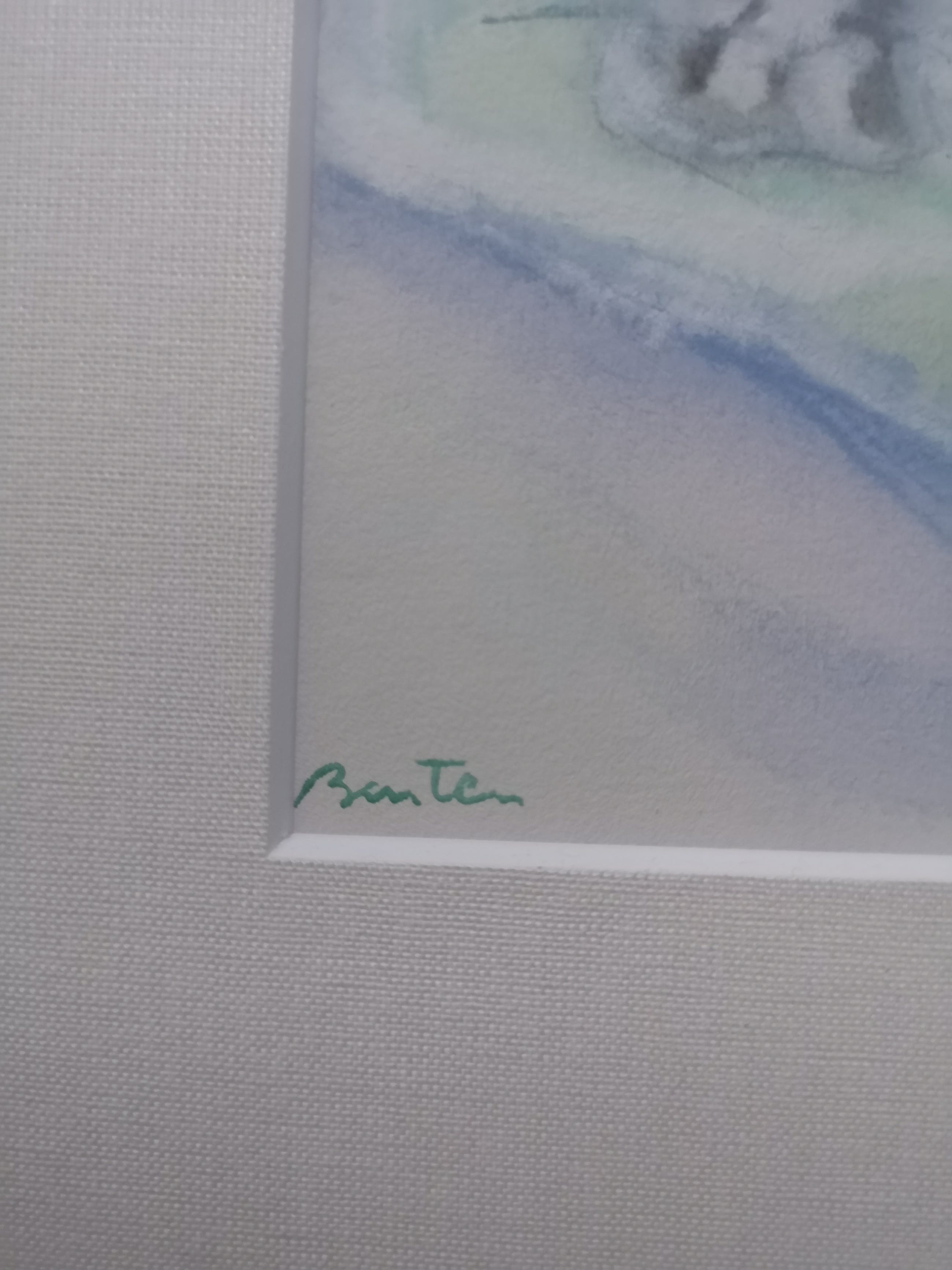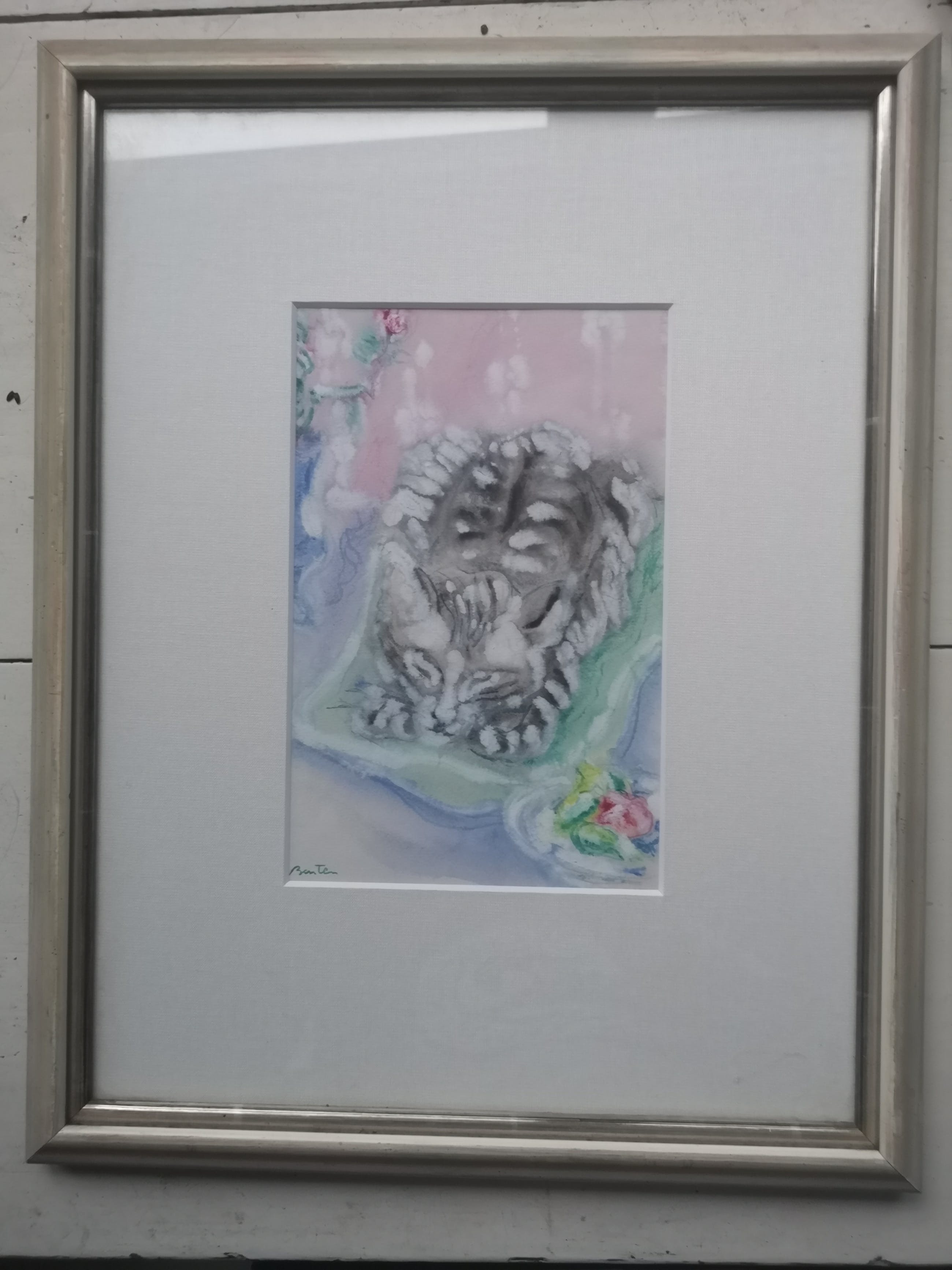 Mooie aquarel van Armand Bouten. Mooie pastelkleuren en goed ingelijst. Op de achterkant staat geschreven dat de poes intelligent en charmant is. (maar dan in het Frans)