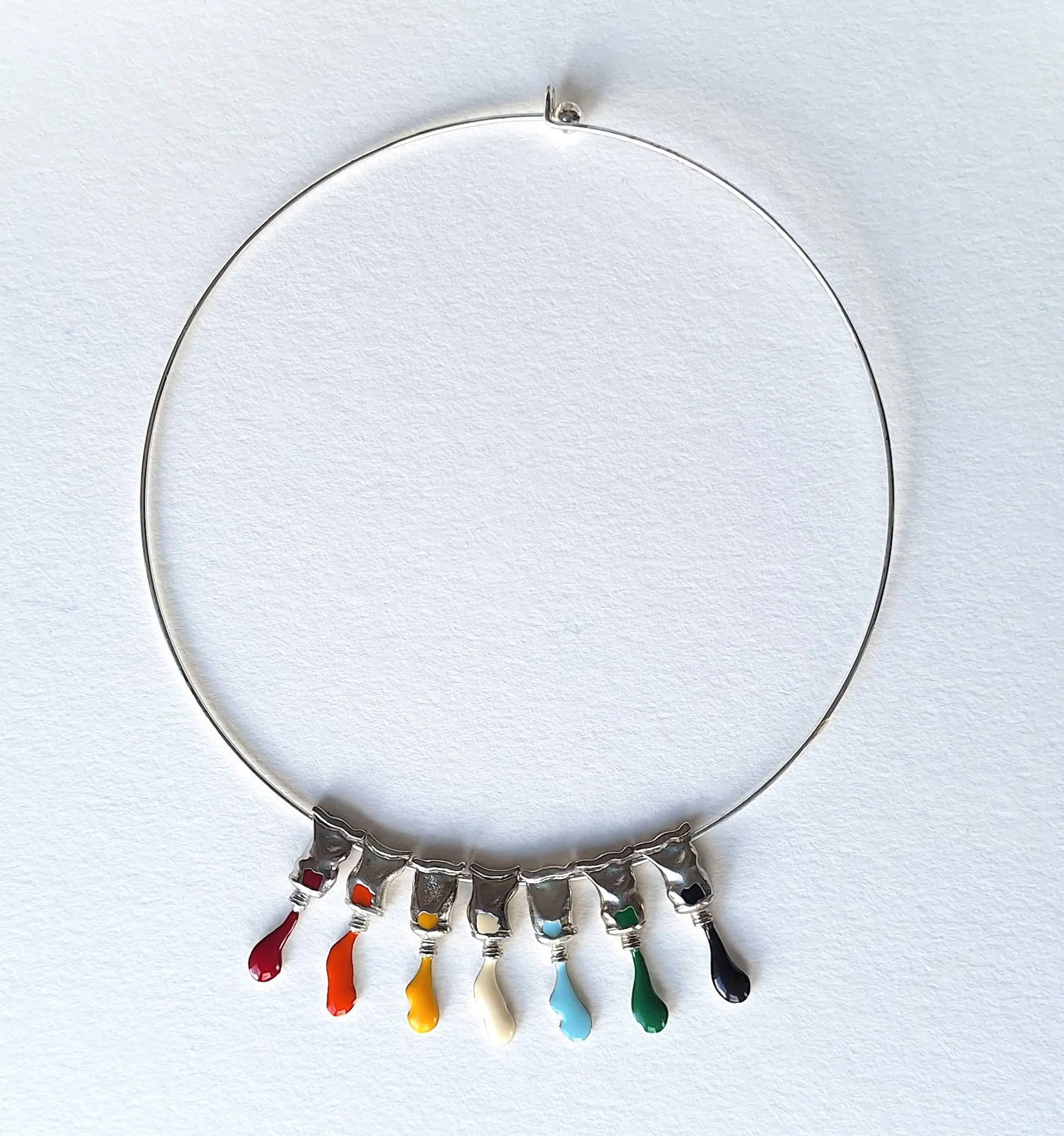 Zeven verftubetjes van verzilverd nikkelvrij tin met kleurrijk email (rood-oranje-geel-wit-lichtblauw-groen-zwart), aan de achterzijde in de druk gesigneerd en voorzien van het jaartal 2001.