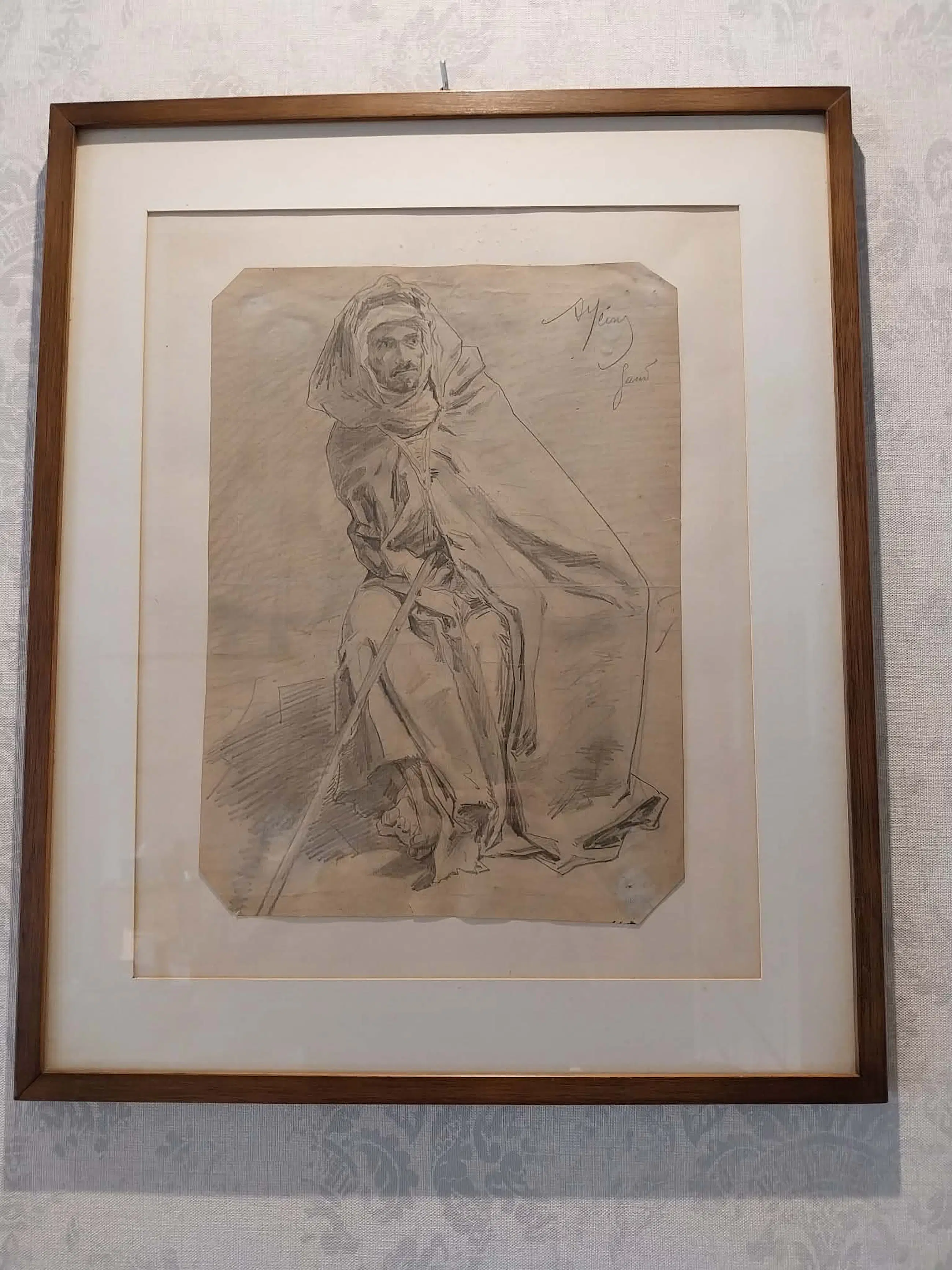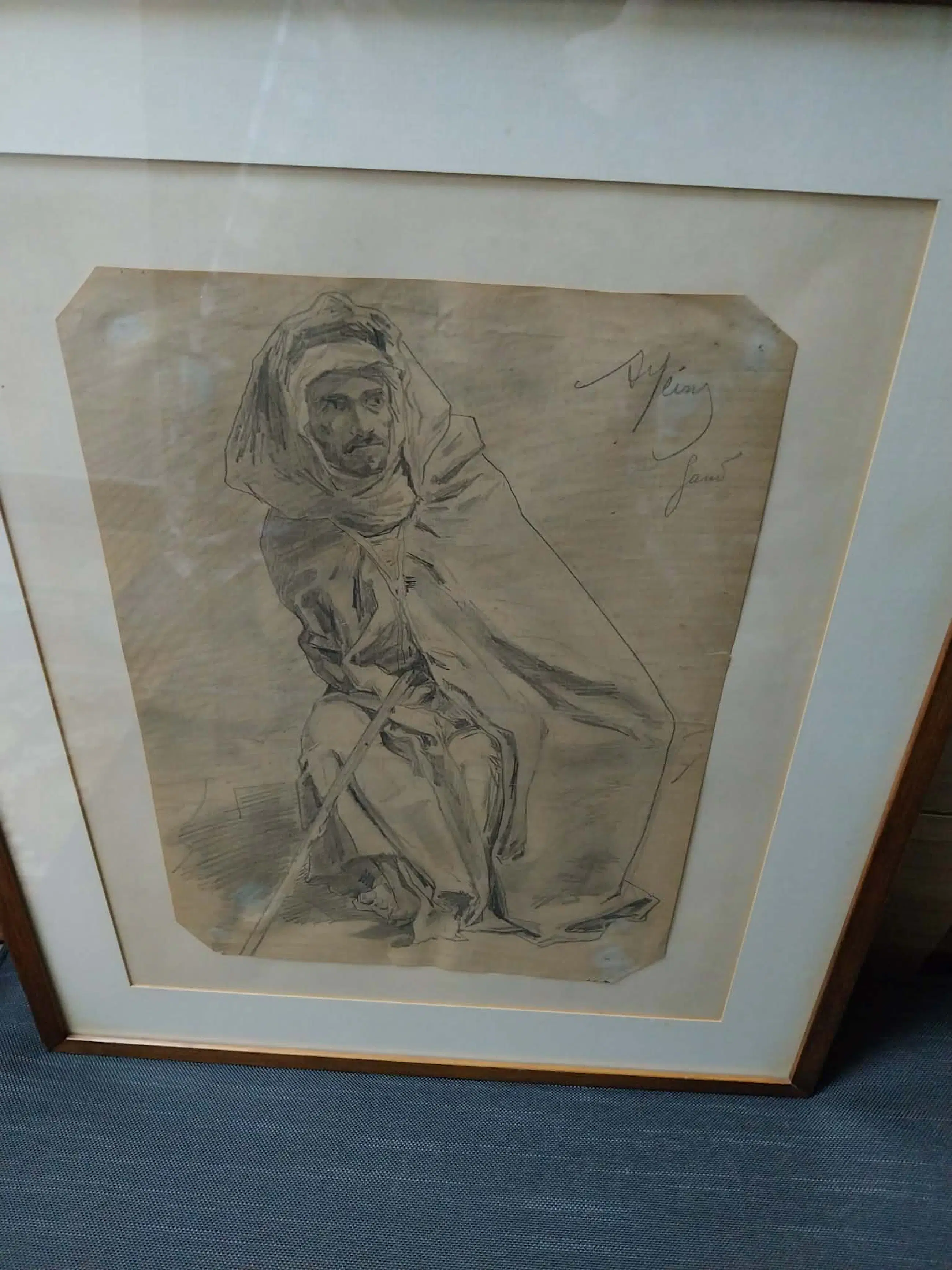 De tekening zit achter glas. (op foto is er misschien wat reflectie zichtbaar)
