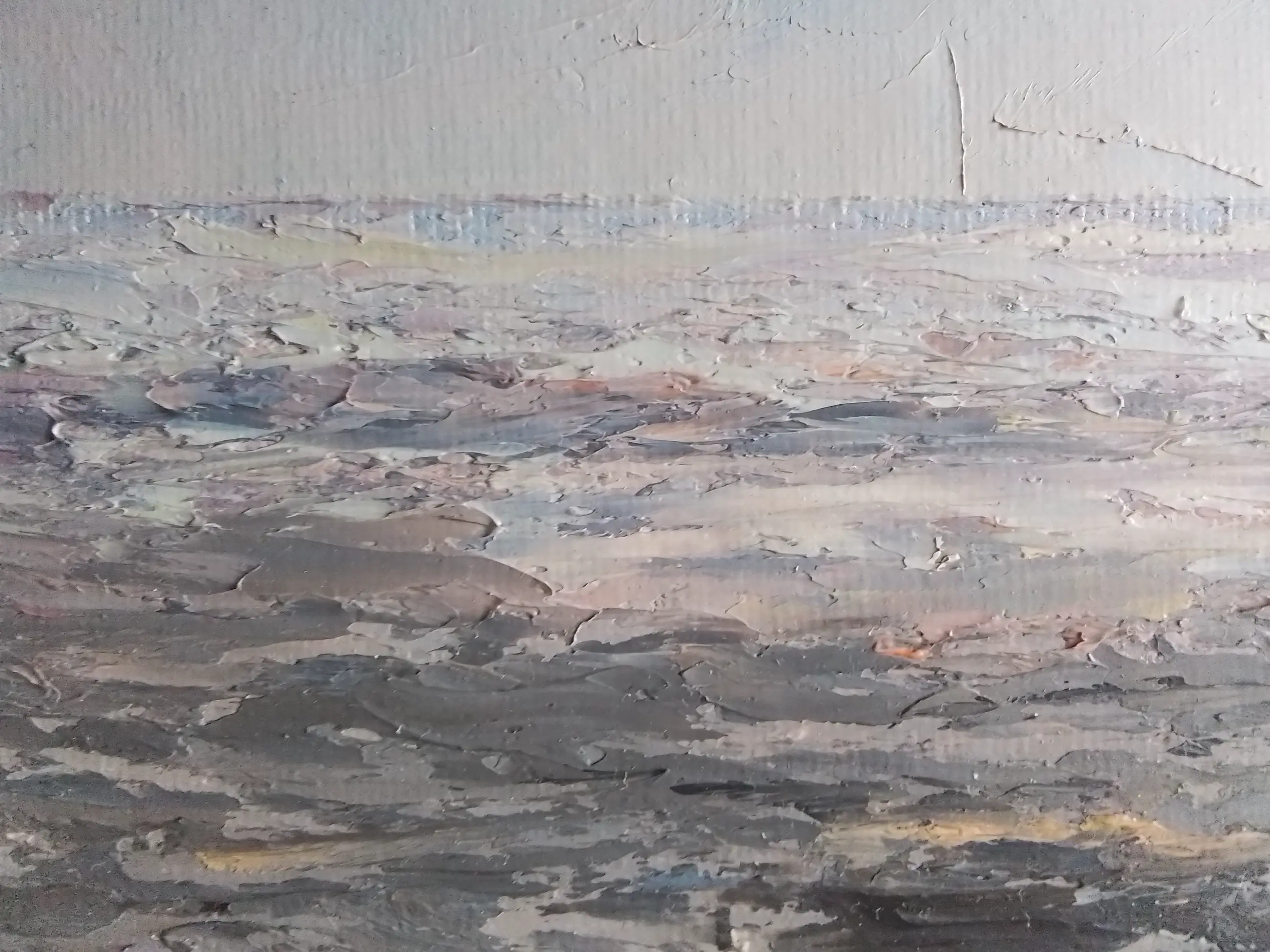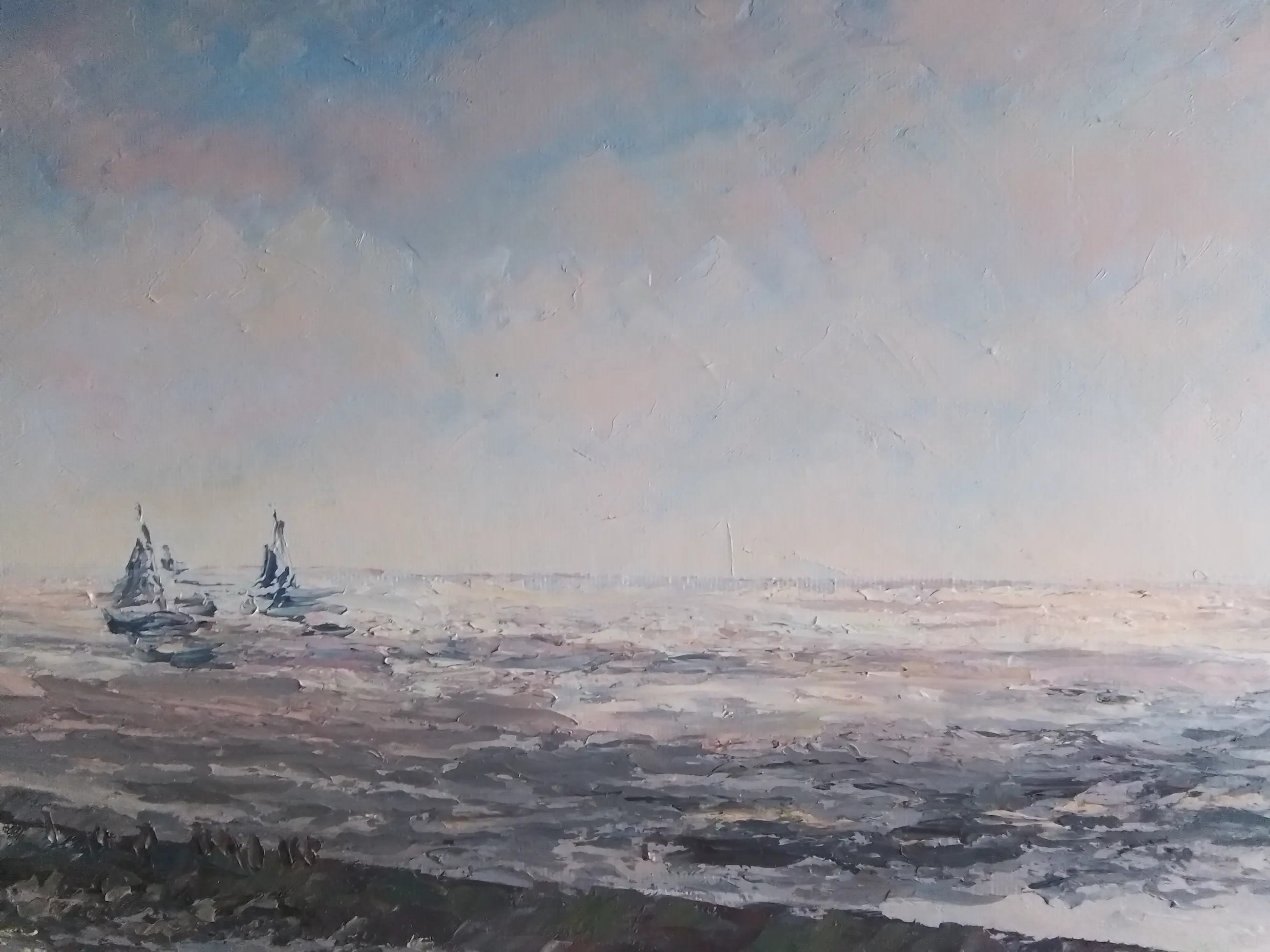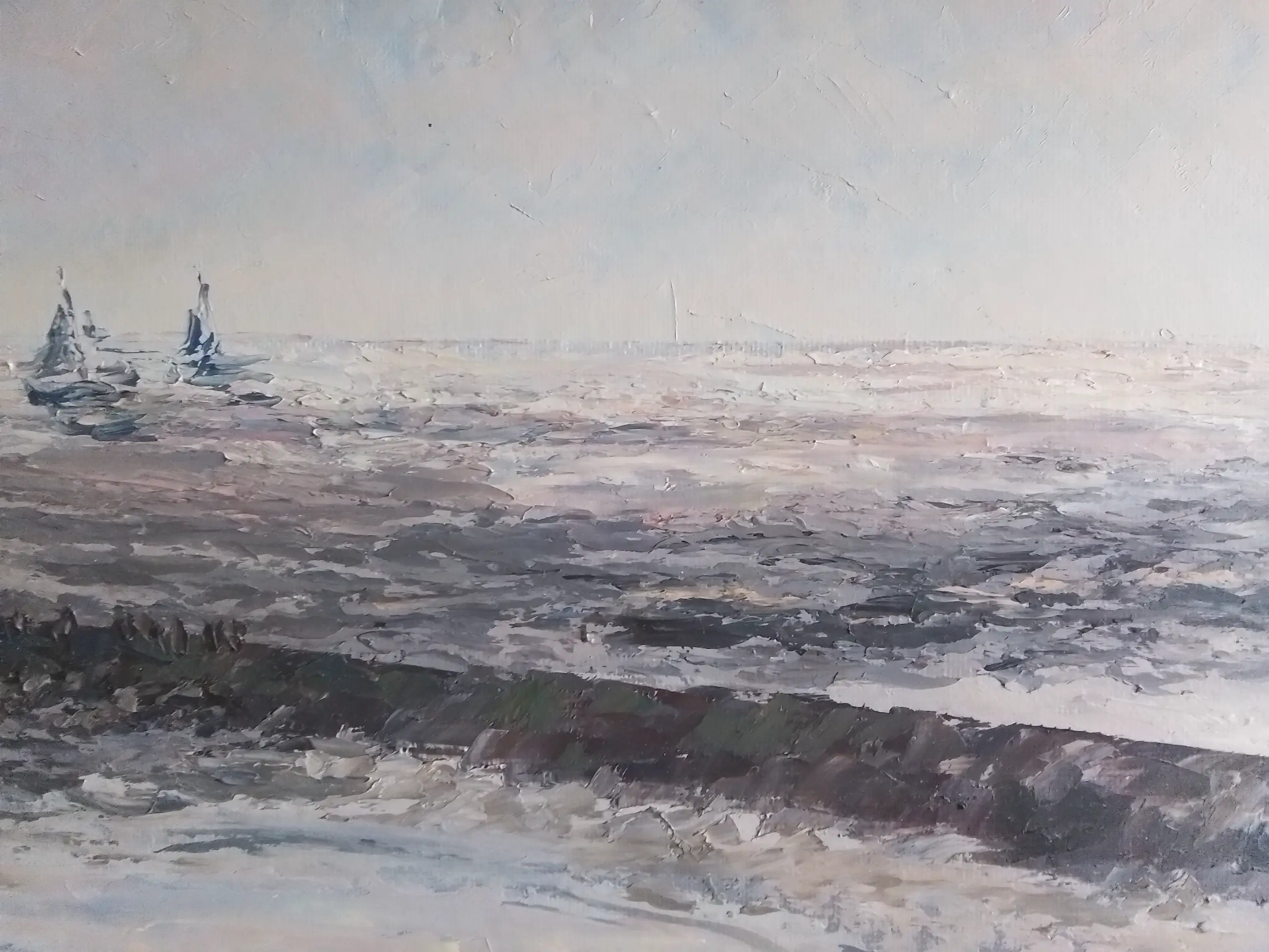 Het werk stelt een zeezicht voor met zeilbootjes in de verte,