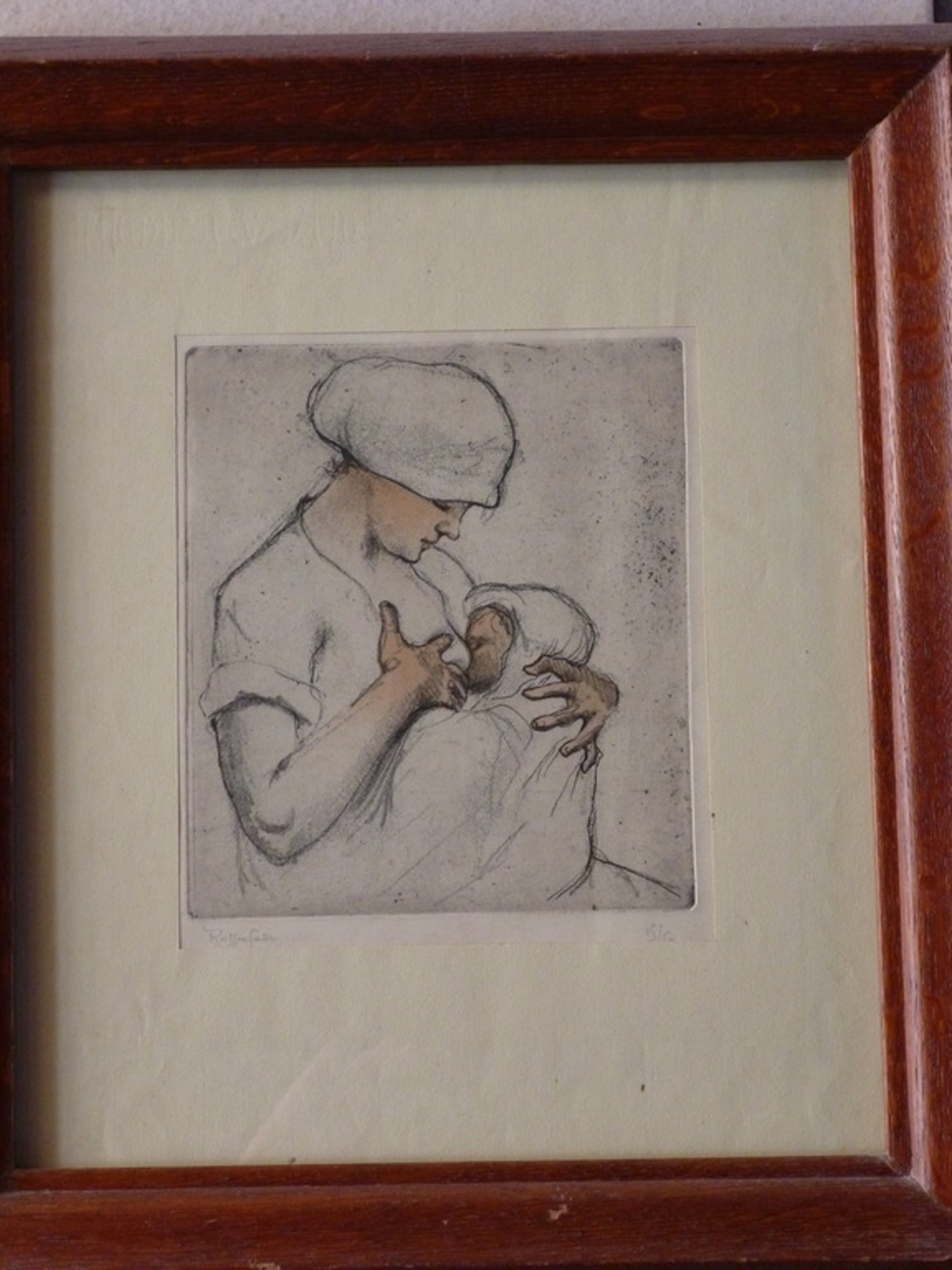 Beeldmaat 19 x 16 cm. Ingelijst.