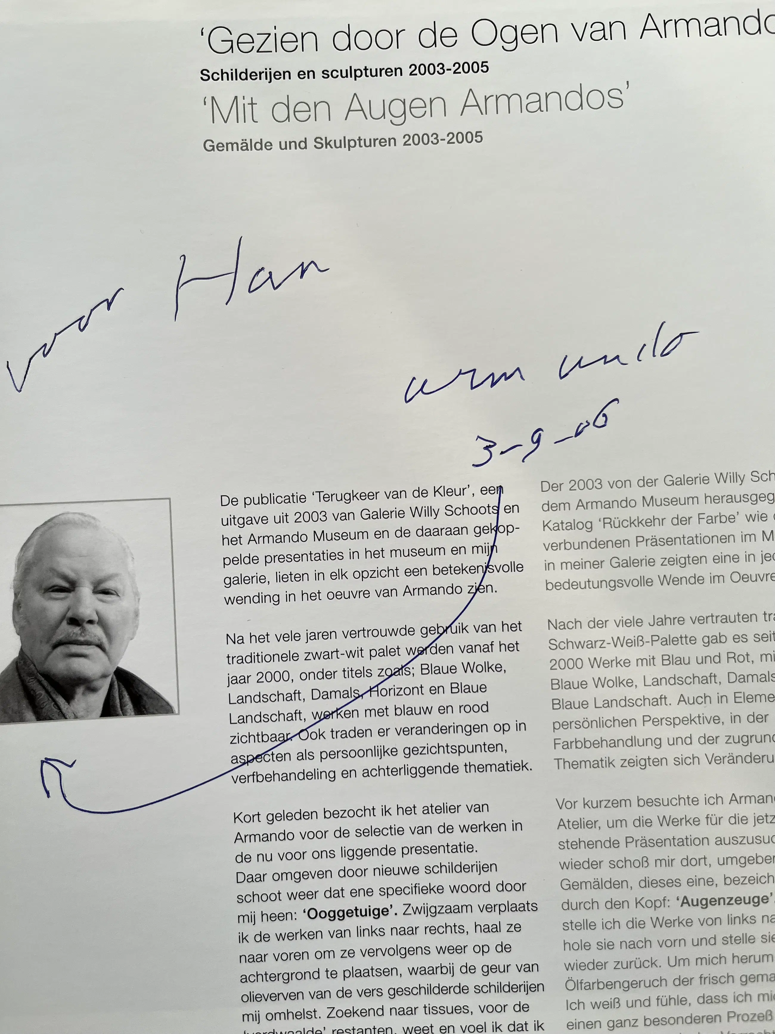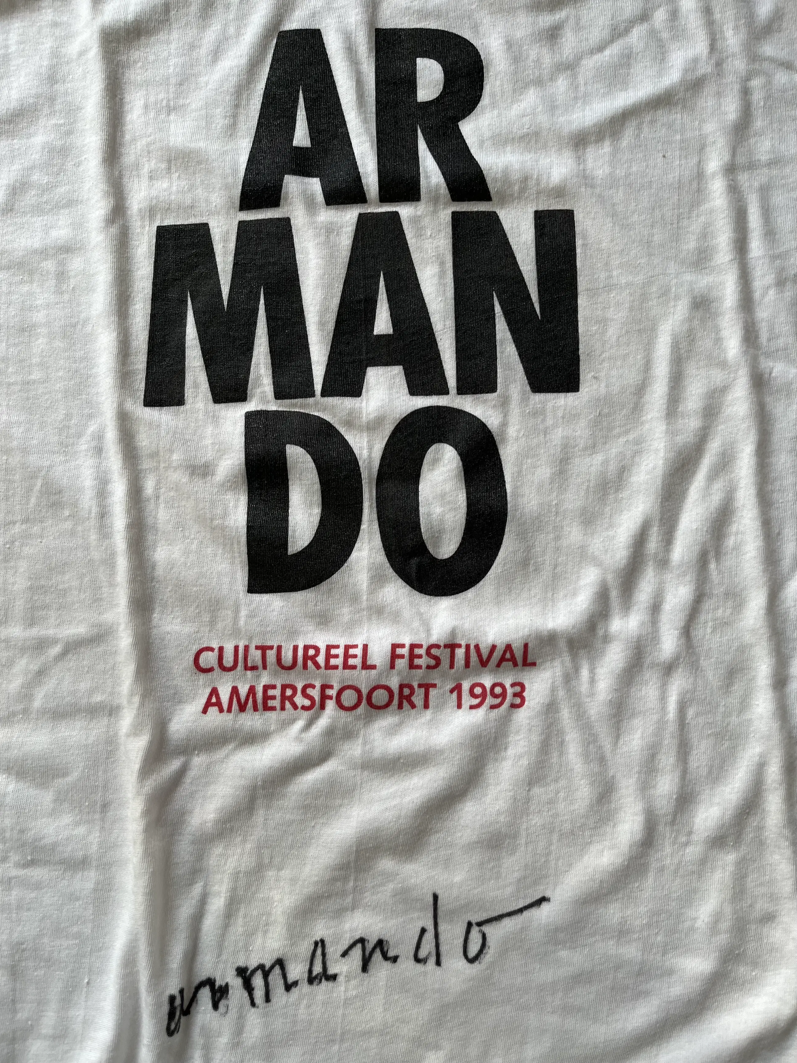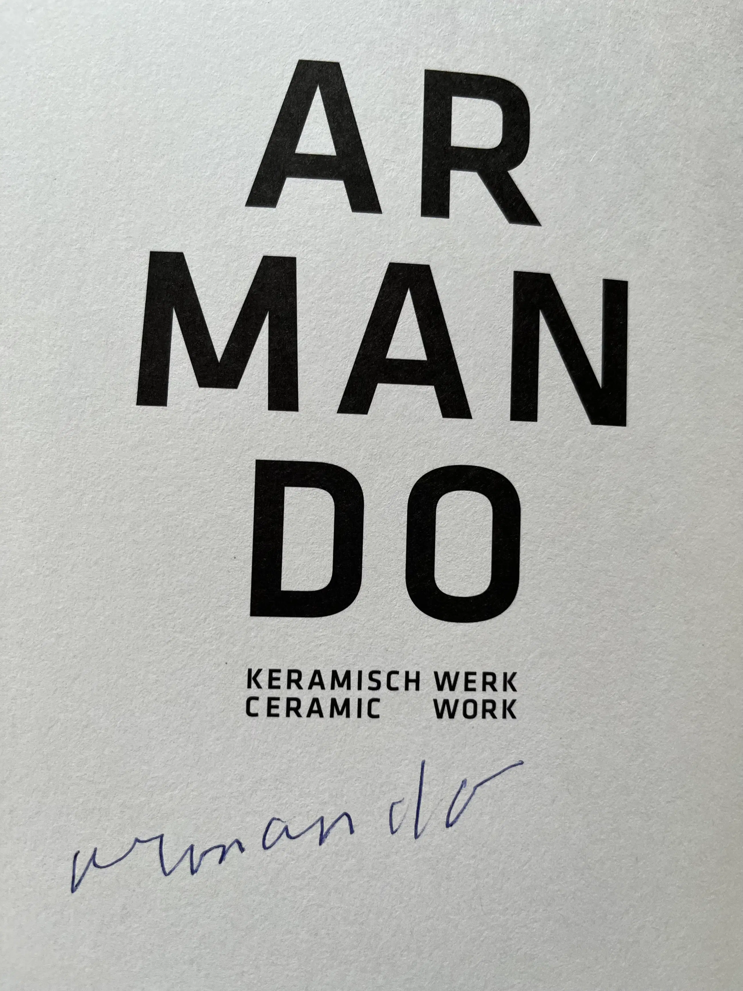 Leuke kavel met hebbedingetjes over Armando. Drie boeken, drie catalogi ( drie gesigneerd), gesigneerd T-shirt ( maat XL) en een bord ( diameter 31)