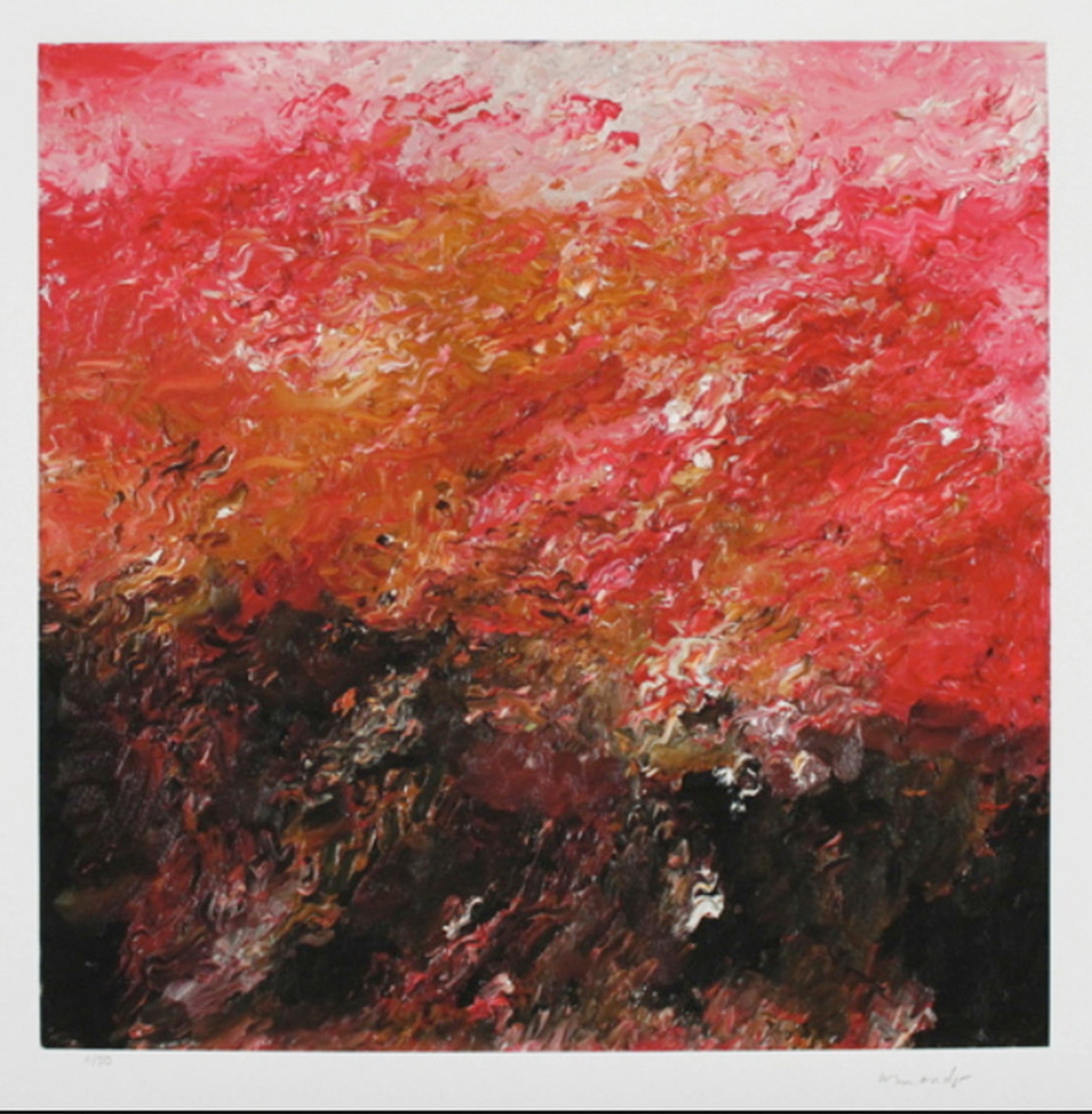 Hand gesigneerd en genummerd, uitgevoerd op handgeschept katoenpapier.