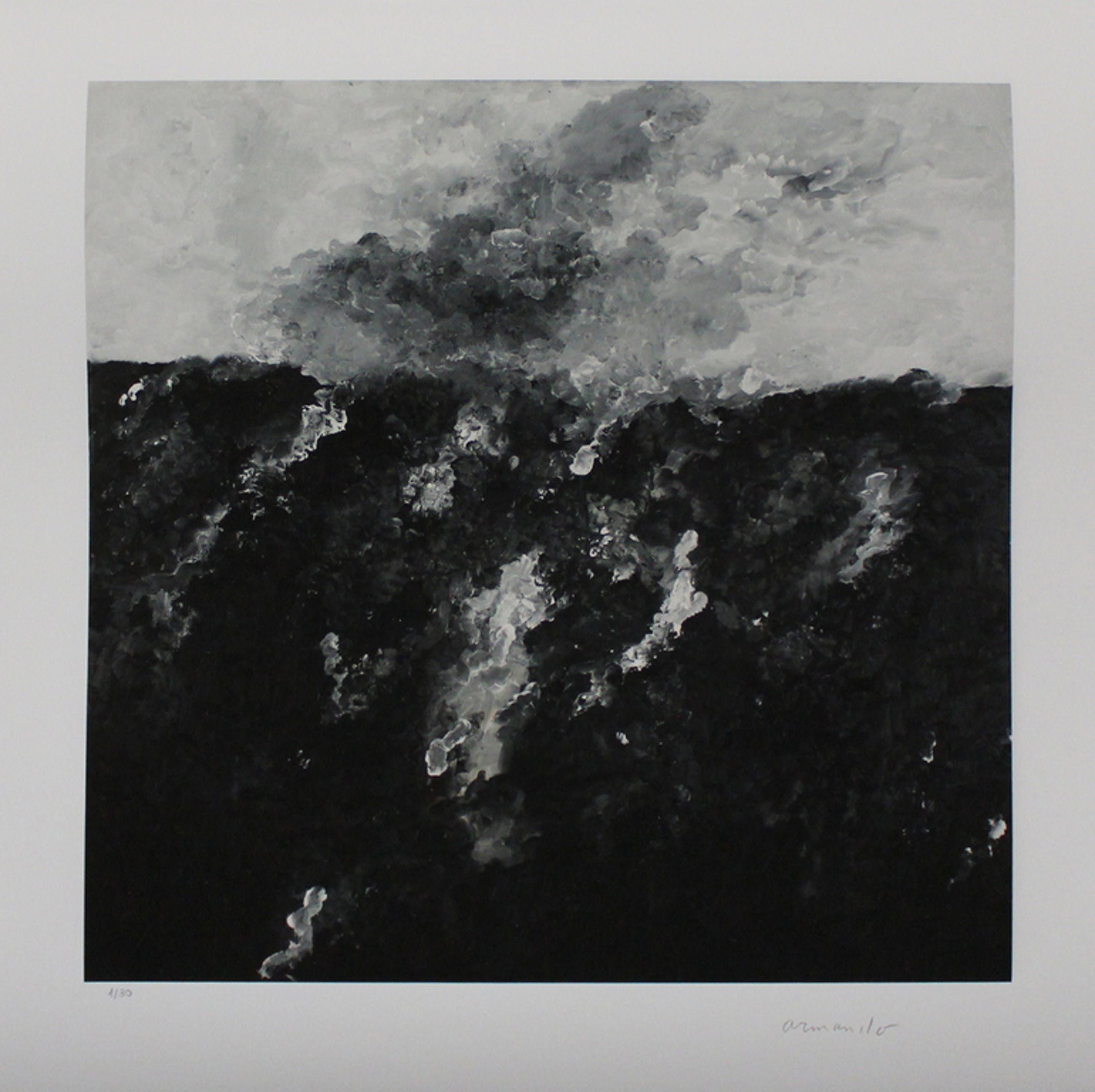 Pigmentdruk op stevig handgemaakt papier naar een recent schilderij van Armando.De druk geeft de dik opgebrachte verf prachtig weer.