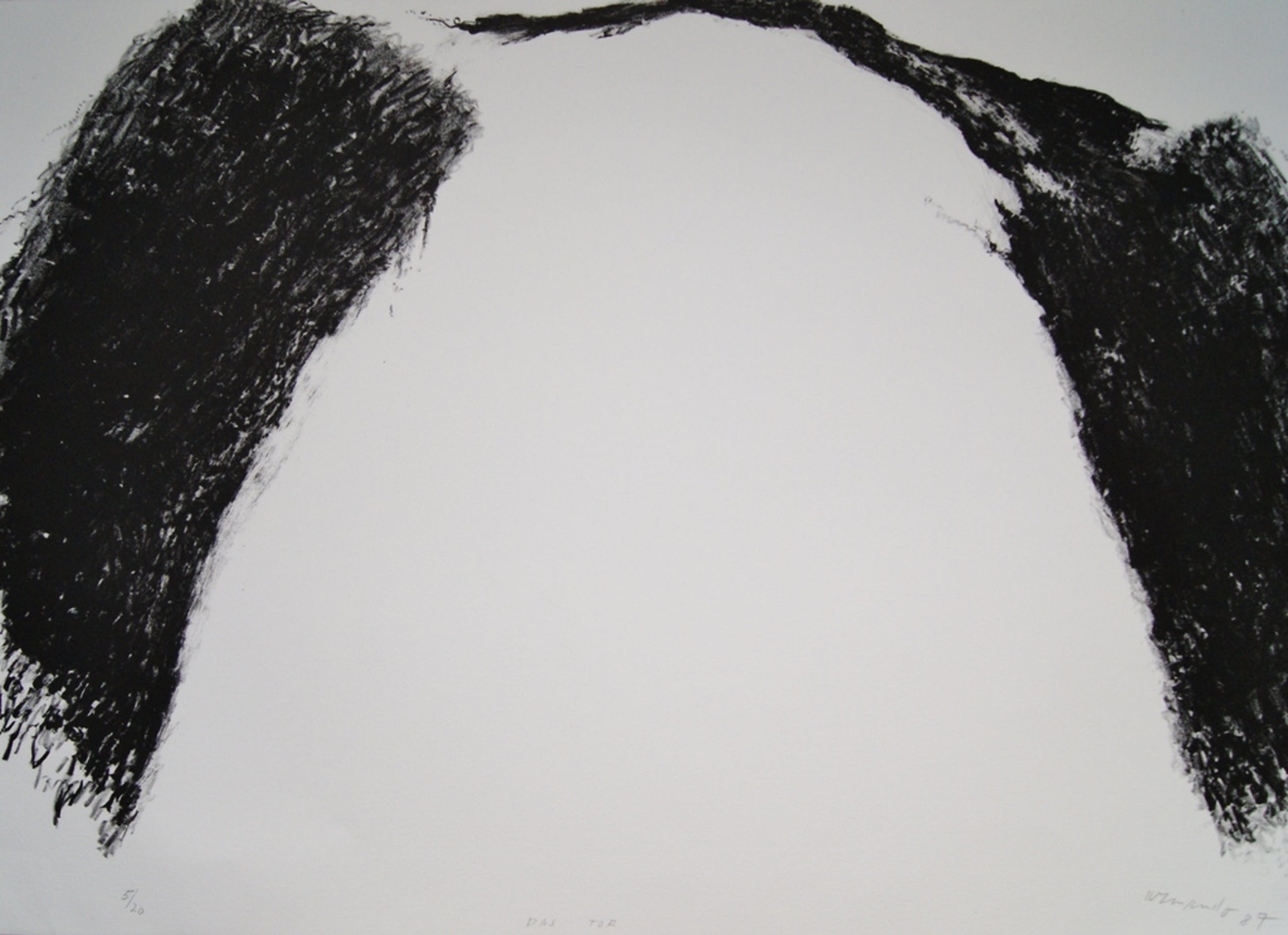 Een typerend werk van Armando litho getiteld 'Das Tor' uit 1987.