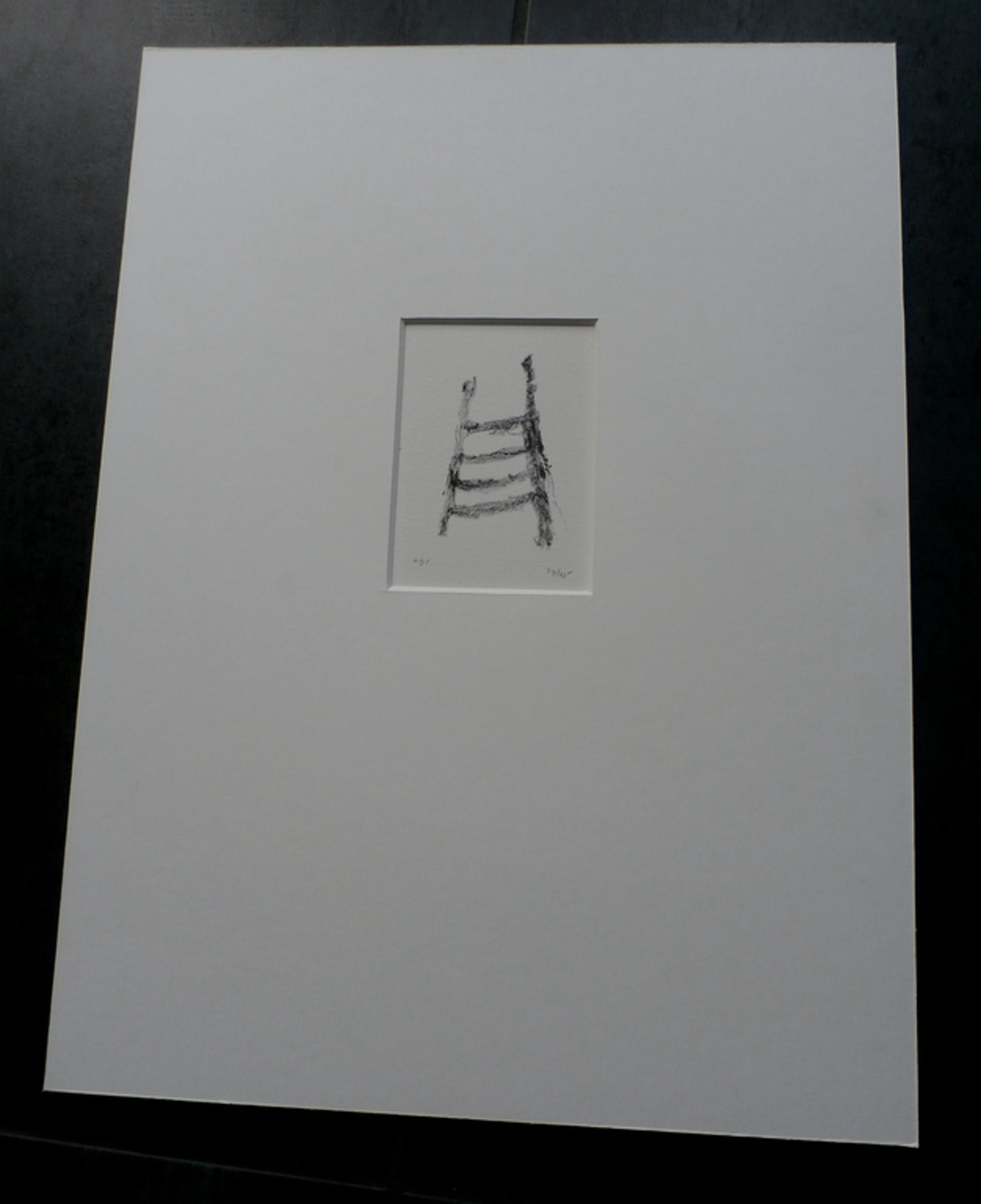 Litho van Armando. "Trapje". Nr: 24/25. Afmetingen blad h42 x b32. Afmetingen voorstelling: h10.5 x b7.5. Het werk is linksonder gesigneerd door de kunstenaar. De authenciteit van het aangeboden werk wordt voor 100% gegarandeerd. Een certificaat van echtheid kan, op aanvraag, worden meegestuurd. Conditie: in goede staat.